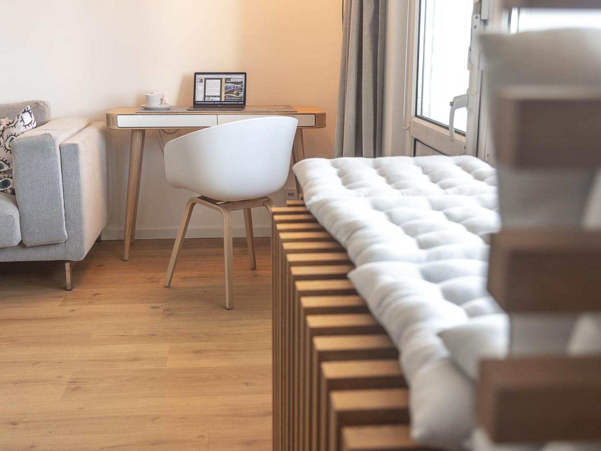 Sie finden jeweils auf 43 m2 Komfort auf höchsten Niveau mit einem großen sonnigen West-Balkon (Loggia).