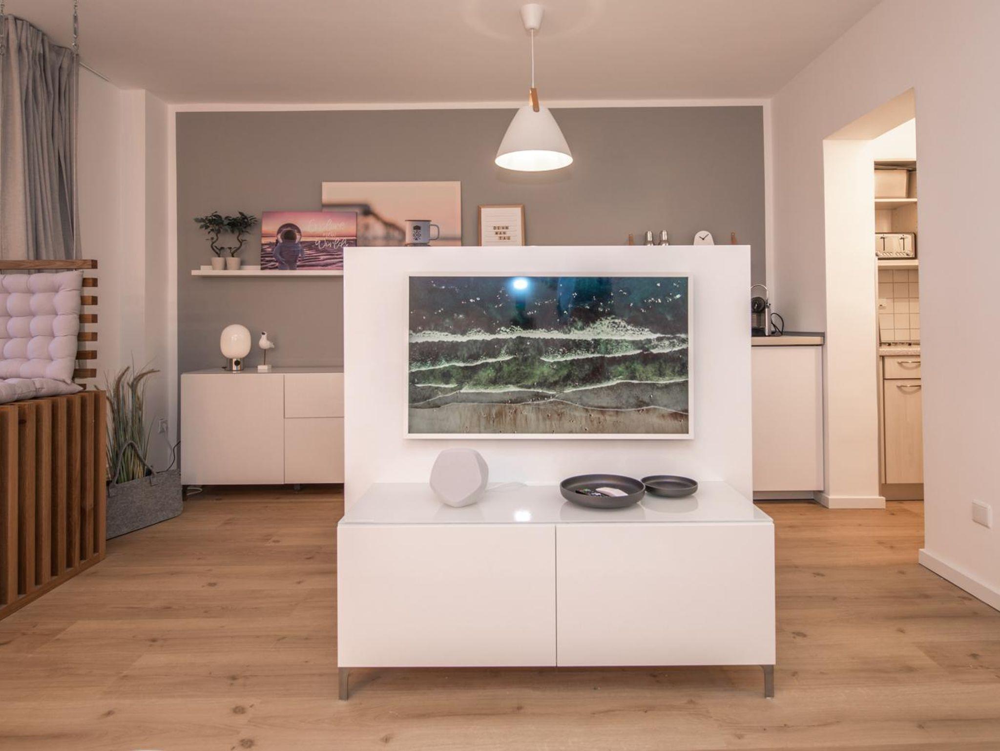 Das geräumige und hochwertig ausgestattete Wohnzimmer lädt zum Wohlfühlen ein. Die gemütliche Sofalandschaft garantiert entspannte Fernsehabende. Die Ausstattung ist modern und hochwertig. Für Fernsehabende steht ein 40“ TV , Bluetooth Sound-System zur Verfügung.