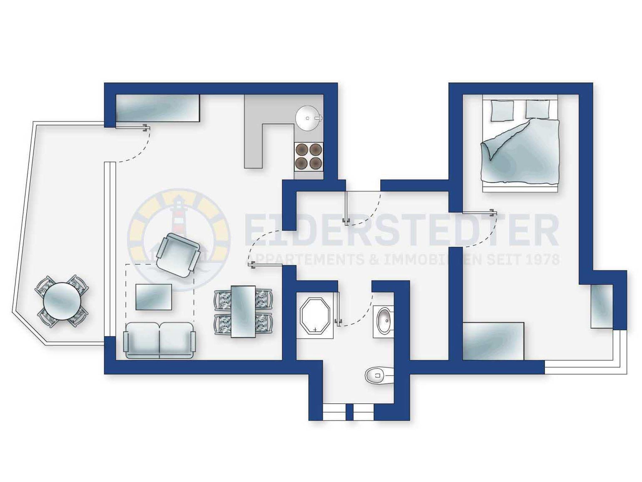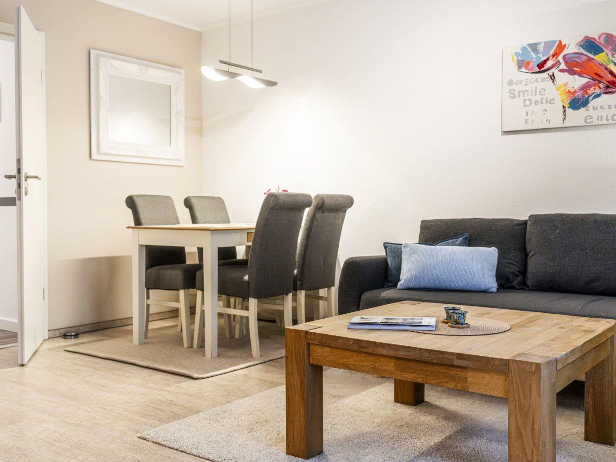 Moderne 2-Zimmer-Ferienwohnung mit Südbalkon, strandnah in St. Peter-Ording, ideal für entspannte Tage zu zweit.