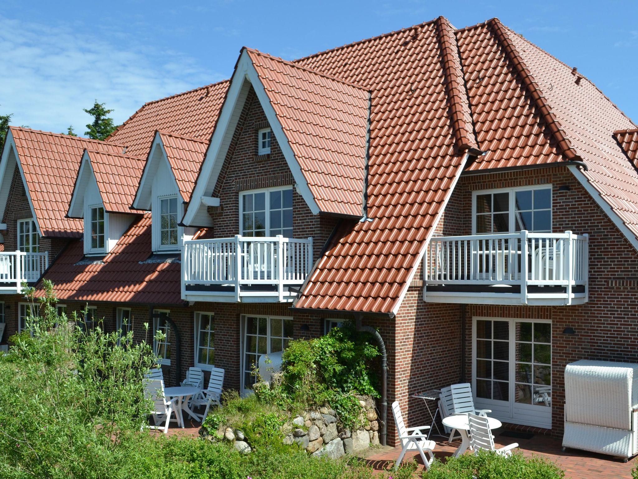 Eingangsbereich, Eingangsdiele mit Garderobe, großzügiger Wohn-Essbereich mit direktem Zugang auf einen Balkon mit Gartenmöbeln, zusätzlich im Dünengelände eine große, durch Friesenwälle und Gehölze abgeschirmte Terrasse mit Gartenmöbeln und einem Strandkorb. Zwei Schlafzimmer mit Doppelbetten, zwei Duschbäder/WC. Separate Küche. Im Untergeschoss befindet sich eine Gemeinschaftssauna (Ruheraum, verschiedene Duschen, Fußbäder), Fitnessraum, Tischtennis. Im Außenbereich: ein Spielplatz für die Kleinsten, Stellplatz, Fahrradständer.