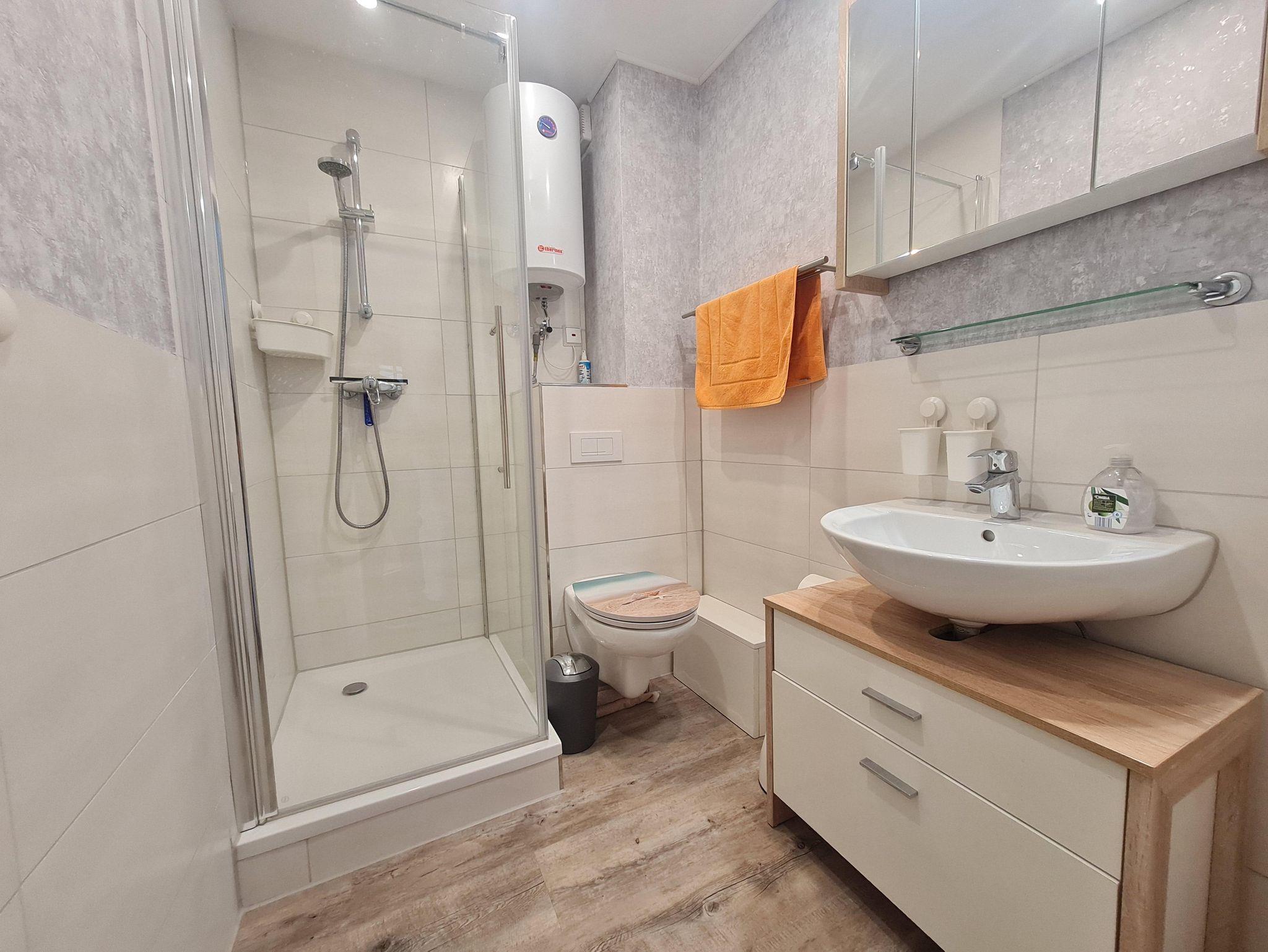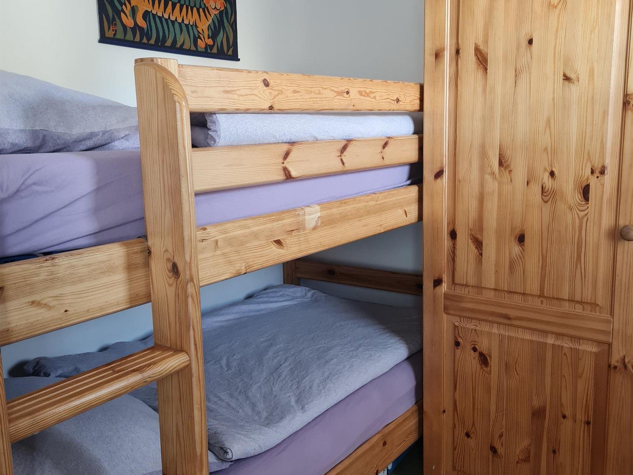 sowie einem Duschbad mit WC. Ein kleiner separater Schlafraum mit Etagenbett und Kleiderschrank ist vorhanden.