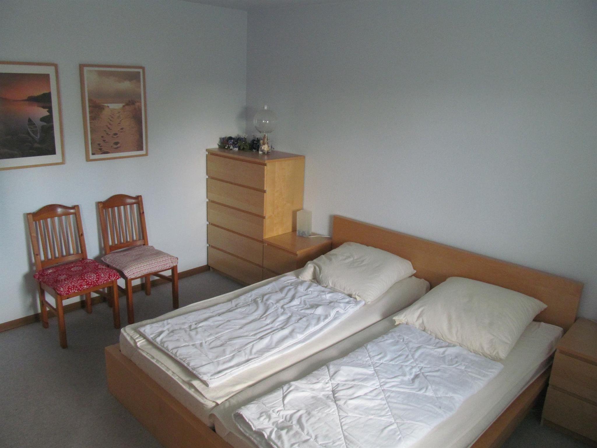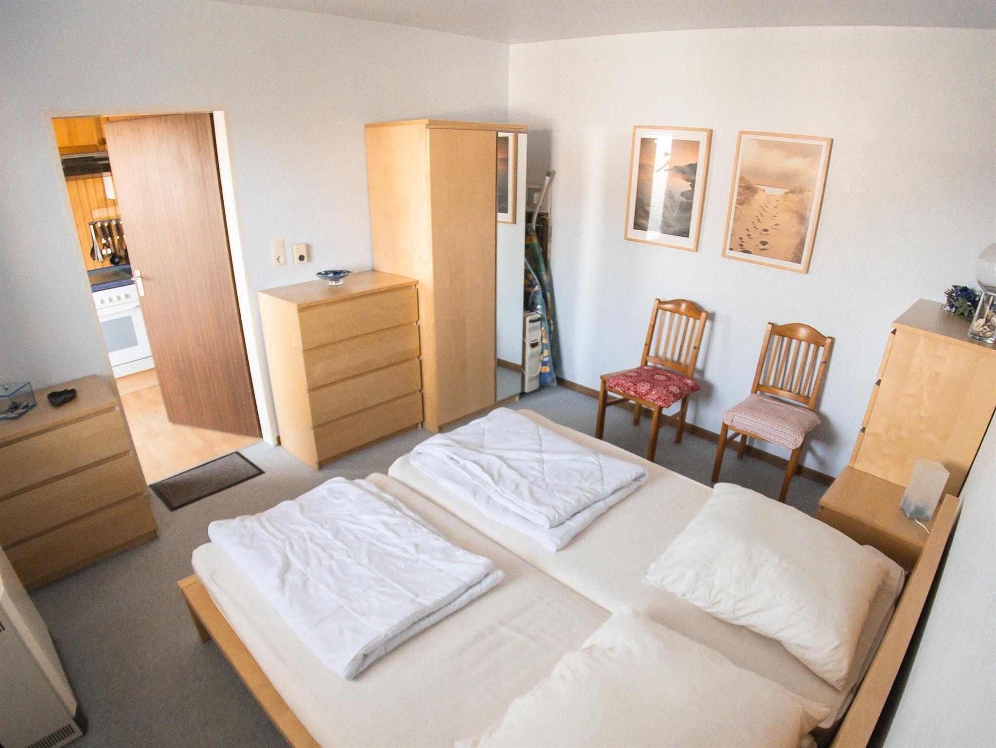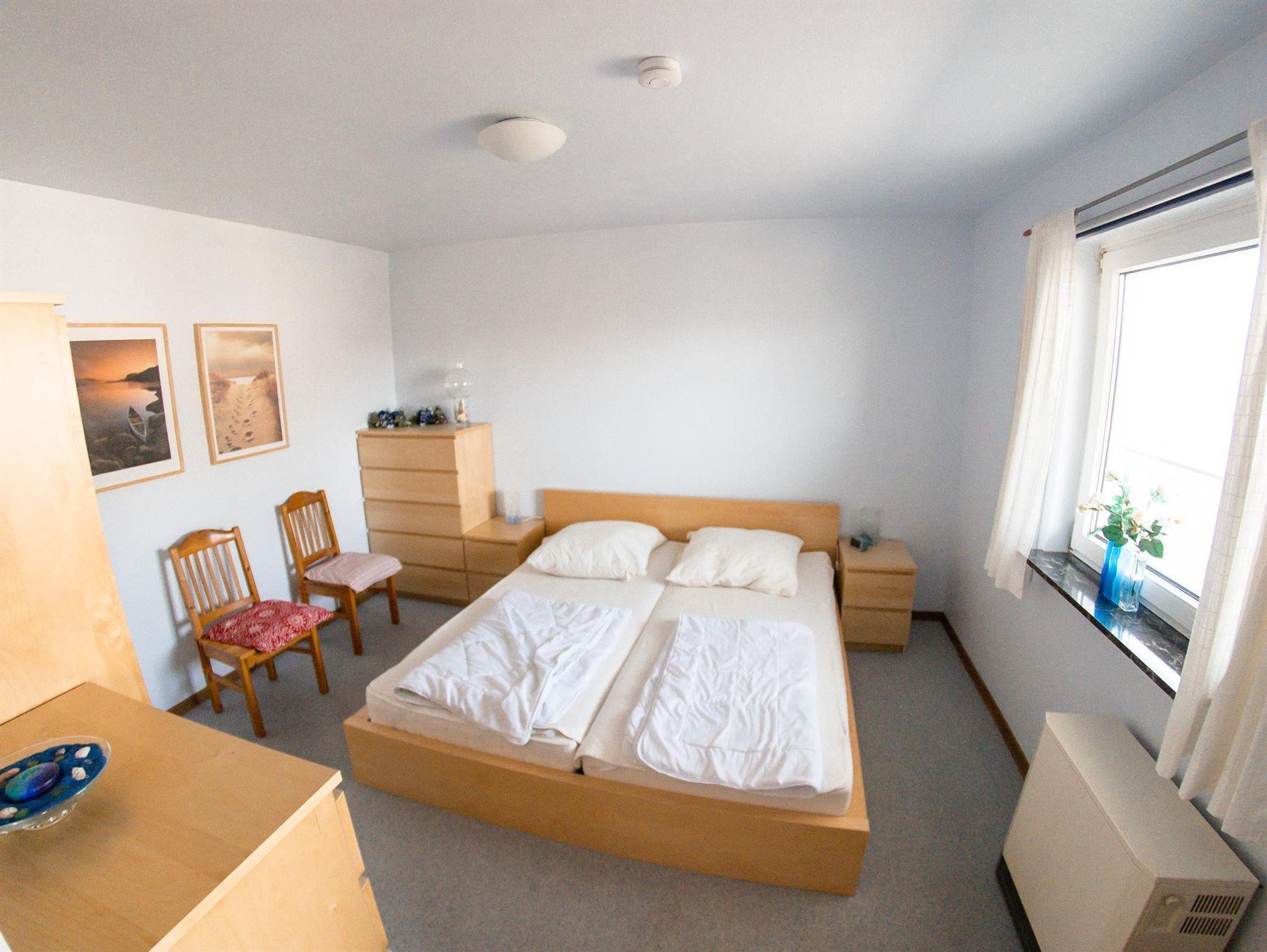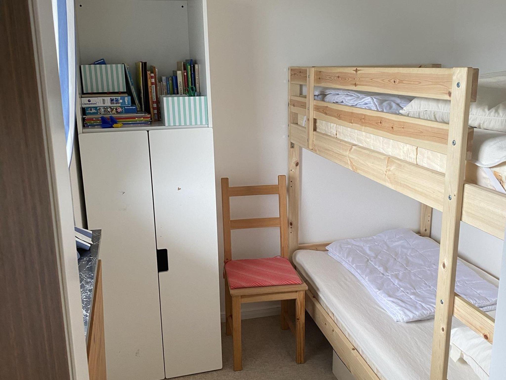 Das Hauptschlafzimmer verfügt über ein gemütliches Doppelbett (2x 90x200 cm) und ausreichend Stauraum. Direkt gegenüber befindet sich das liebevoll eingerichtete Kinderzimmer mit Etagenbett (2x 90x200 cm), zahlreichen Büchern sowie Spielmöglichkeiten für die Kleinen.