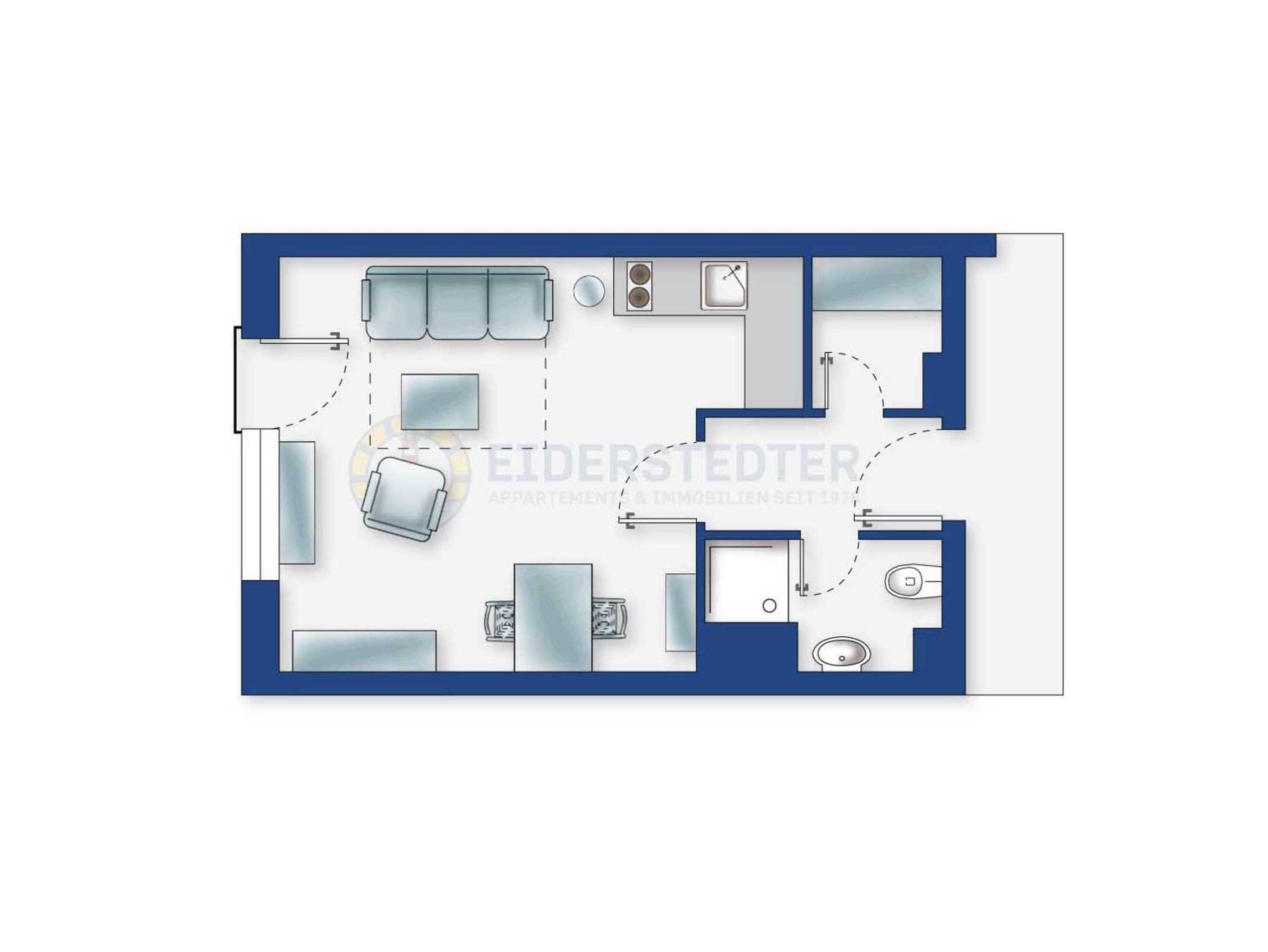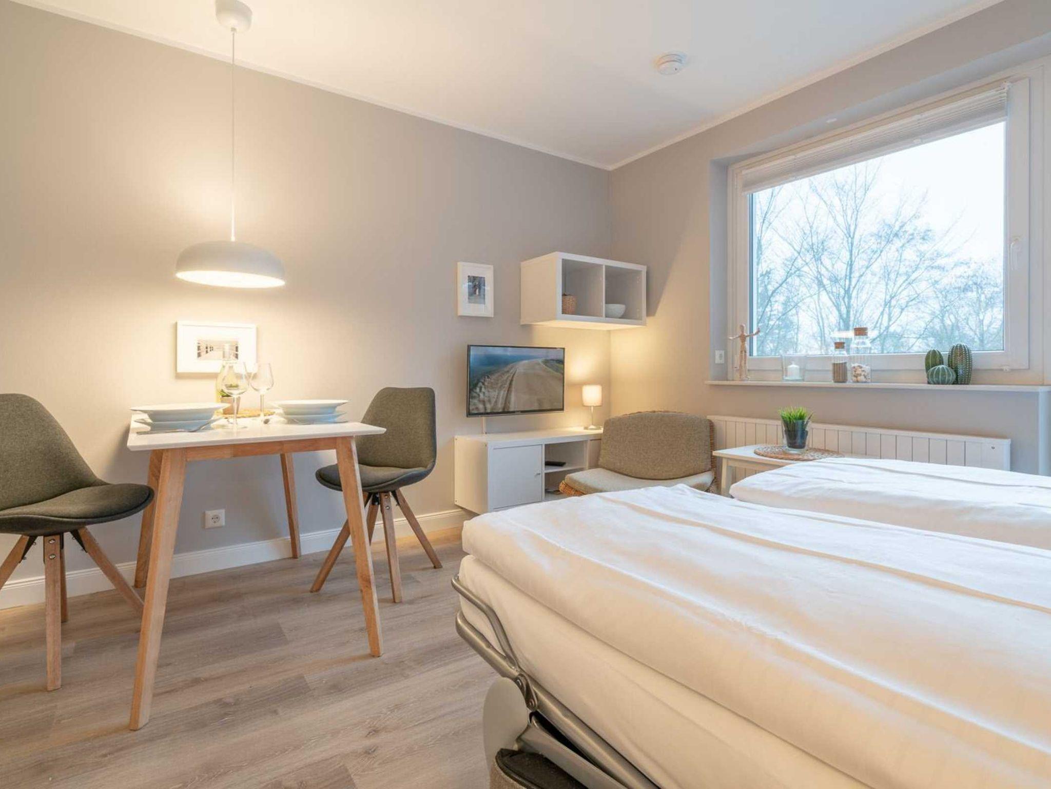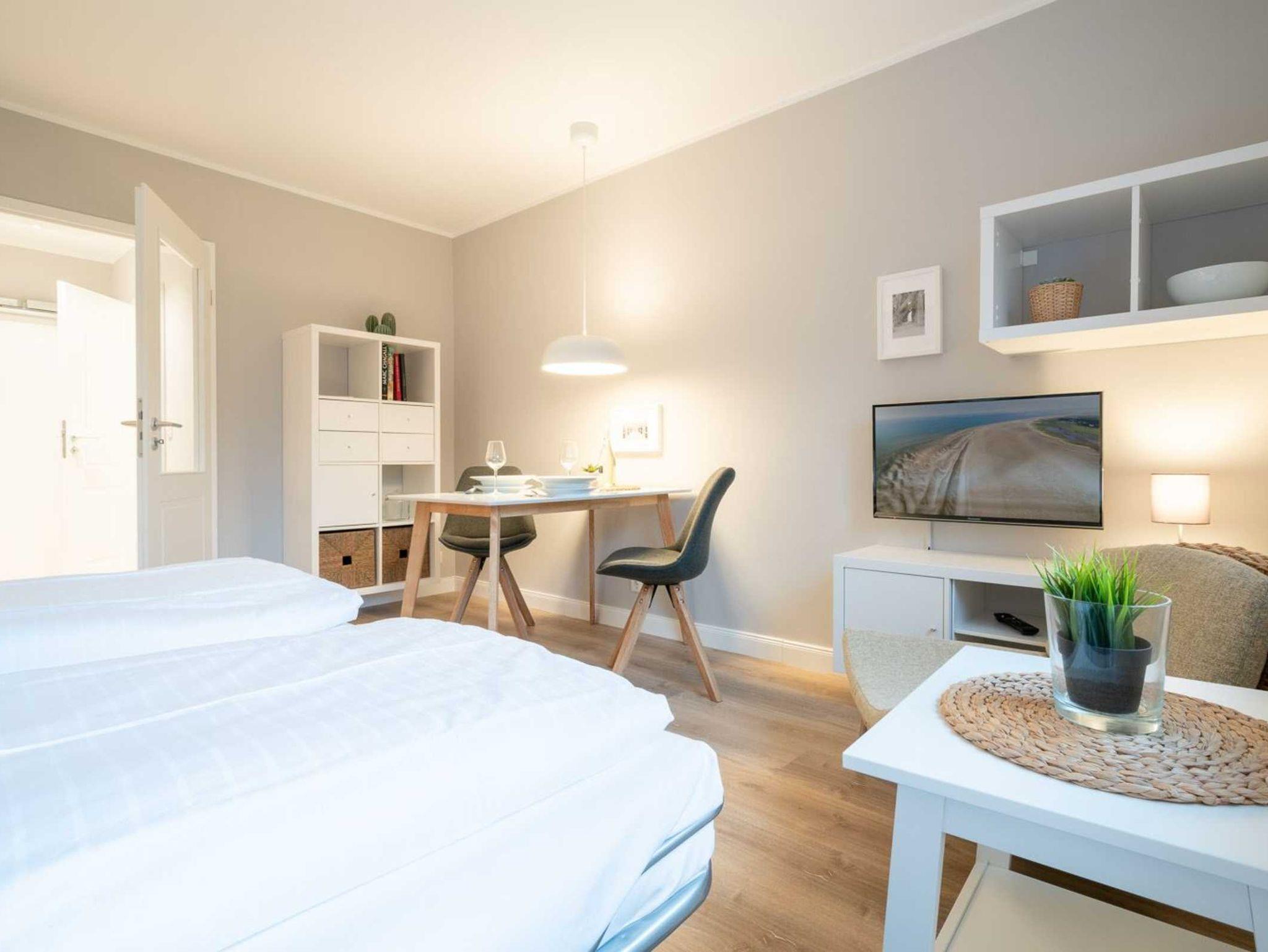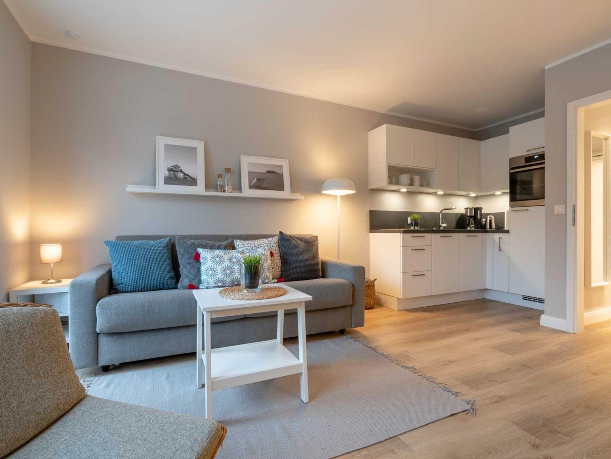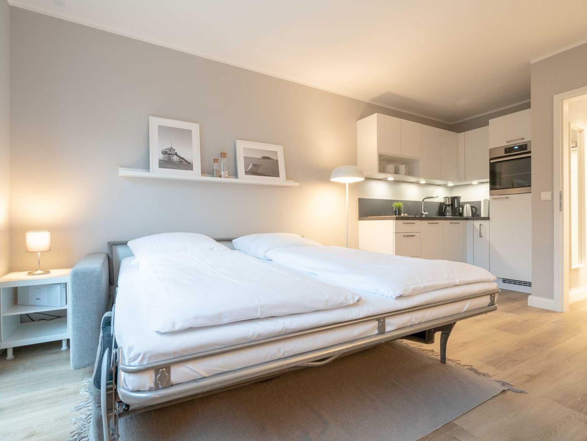 Modernes Studio-Appartement mit Deichblick, Sauna und Strandnähe in St. Peter-Ording für erholsame Nordseeferien.