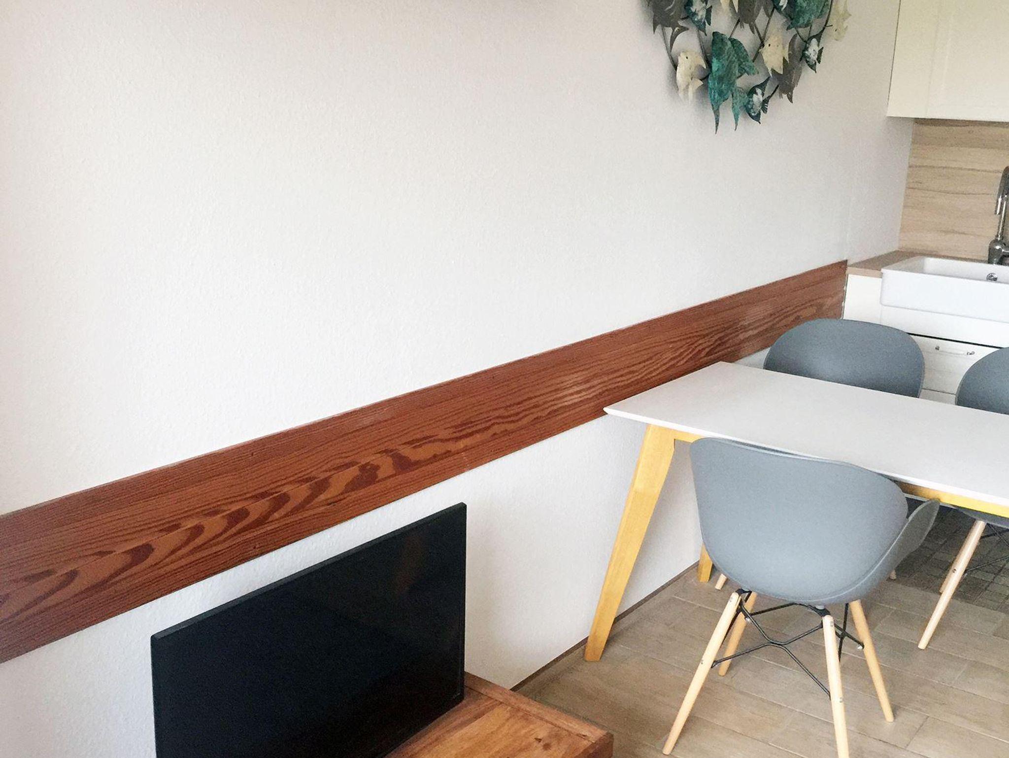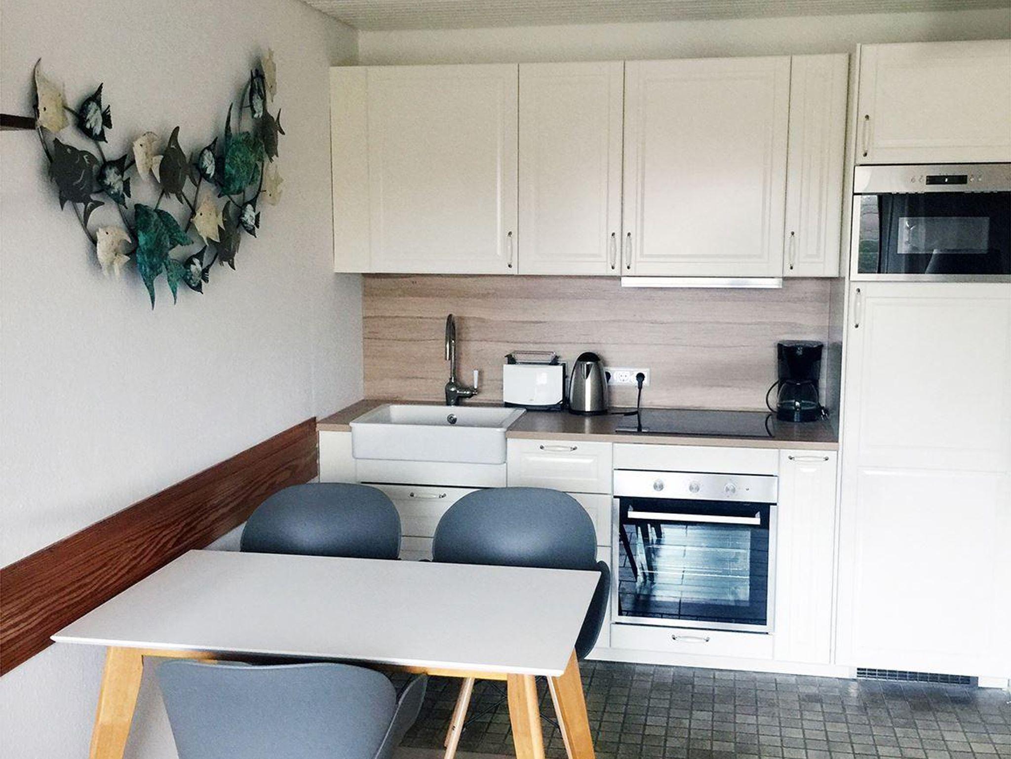 Stilvolle gemütliche Nichtraucherwohnung in Strandnähe. Zwischen Wald und Strand wohnen Sie auf exklusiv gemütlichen 42 qm für maximal 3 Personen. Das Schlafzimmer ist ausgestattet mit einem Doppelbett , einem Schrank und 2 Leselampen. In der Küche befinden sich Einbauküche mit Ceranfeld, Backofen, Dunstabzugshaube, Kühlschrank mit Gefrierfach, Mikrowelle, Kaffeemaschine, Staubsauger, Toaster, Wasserkocher, Geschirr, Kochtöpfe.