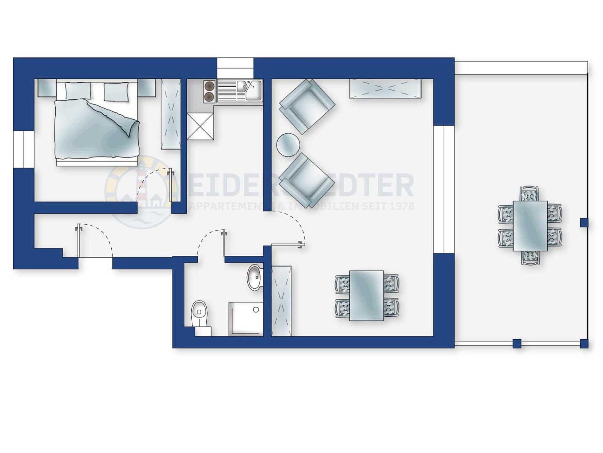Moderne 2-Zimmer-Ferienwohnung mit Garten und Terrasse in ruhiger Lage von St. Peter-Ording.