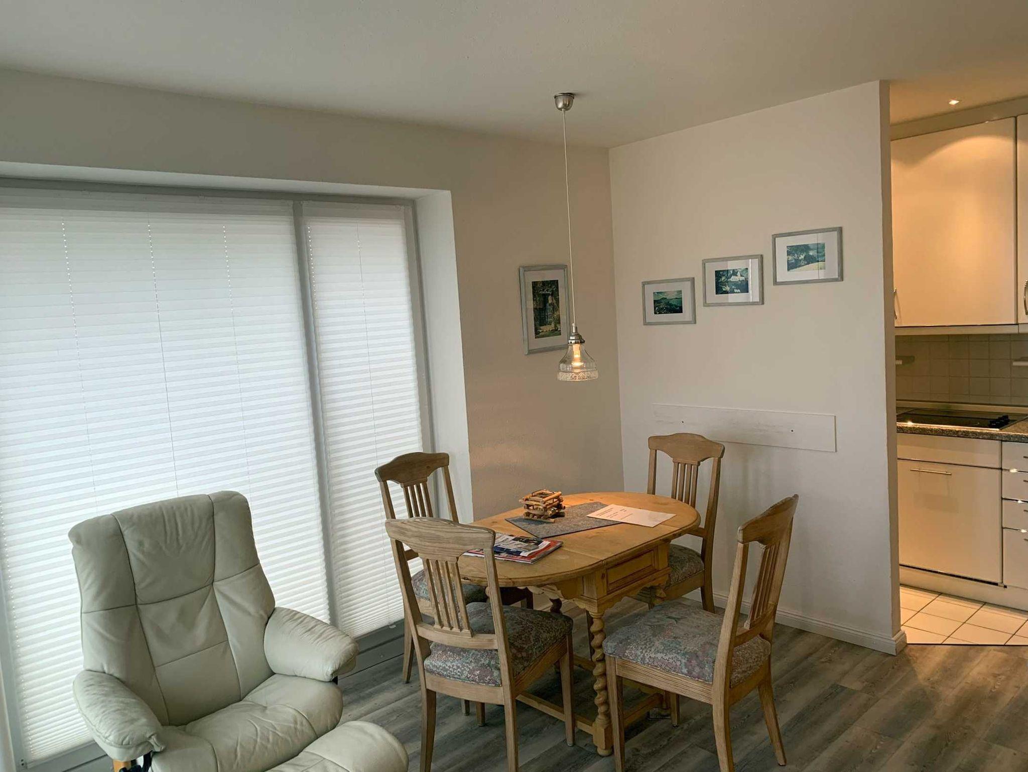 Die gemütliche Ferienwohnung Hauke Haien in St. Peter-Bad bietet Ruhe, Strandkorb auf dem Balkon und zentralen Komfort.