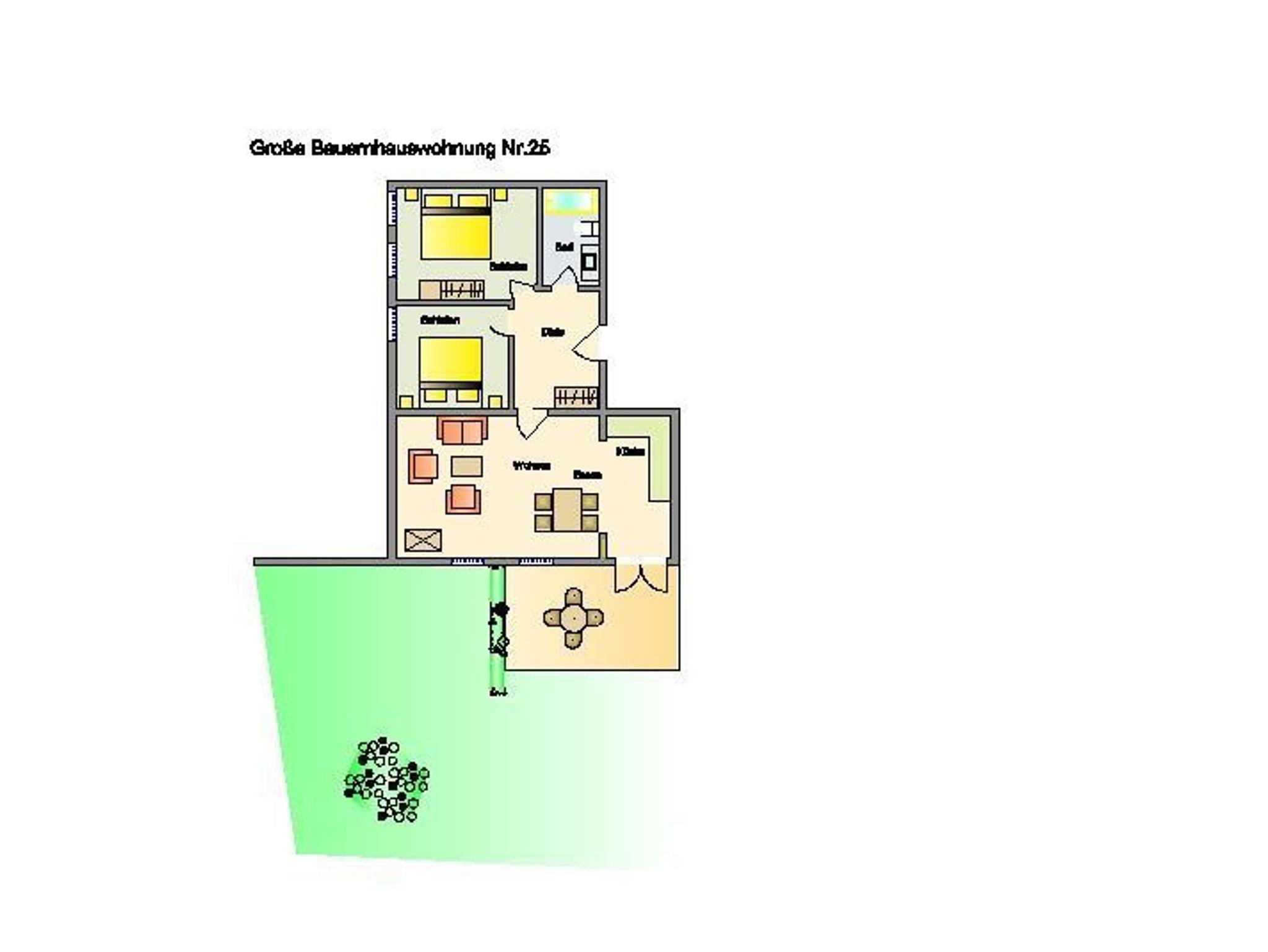 Modernisierte und renovierte Ferienwohnung unter Reet, in den Schlafräumen sind noch die alten Holzfußböden erhalten, der restliche Bereich wurde gefliest, sichtbare Deckenbalken und Füllungstüren geben der Wohnung den besonderen Charme. Vom Wohn-Essraum mit integrierter Wohnküche haben Sie direkten Zugang zur Südterrasse mit Strandkorb und Gartenmöbeln und natürlich zur großen Spiel-und Liegewiese. 2 Schlafzimmer mit Doppelbett (2 Matratzen 90x200cm), Wannenbad mit WC. Diele mit Garderobe. Parkplatz.