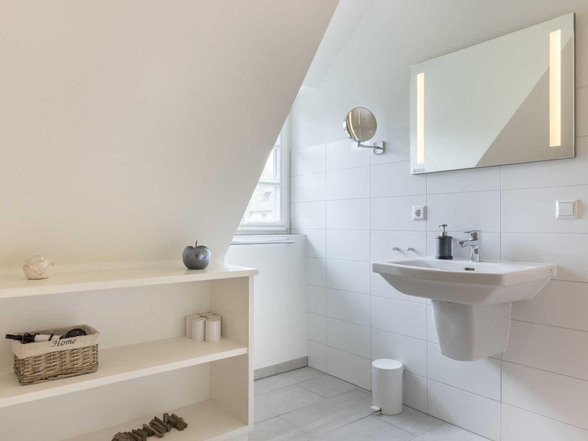 2. Badezimmer mit Dusche (niedriger Eintritt: ca. 15 cm), WC, Föhn und Tageslicht.