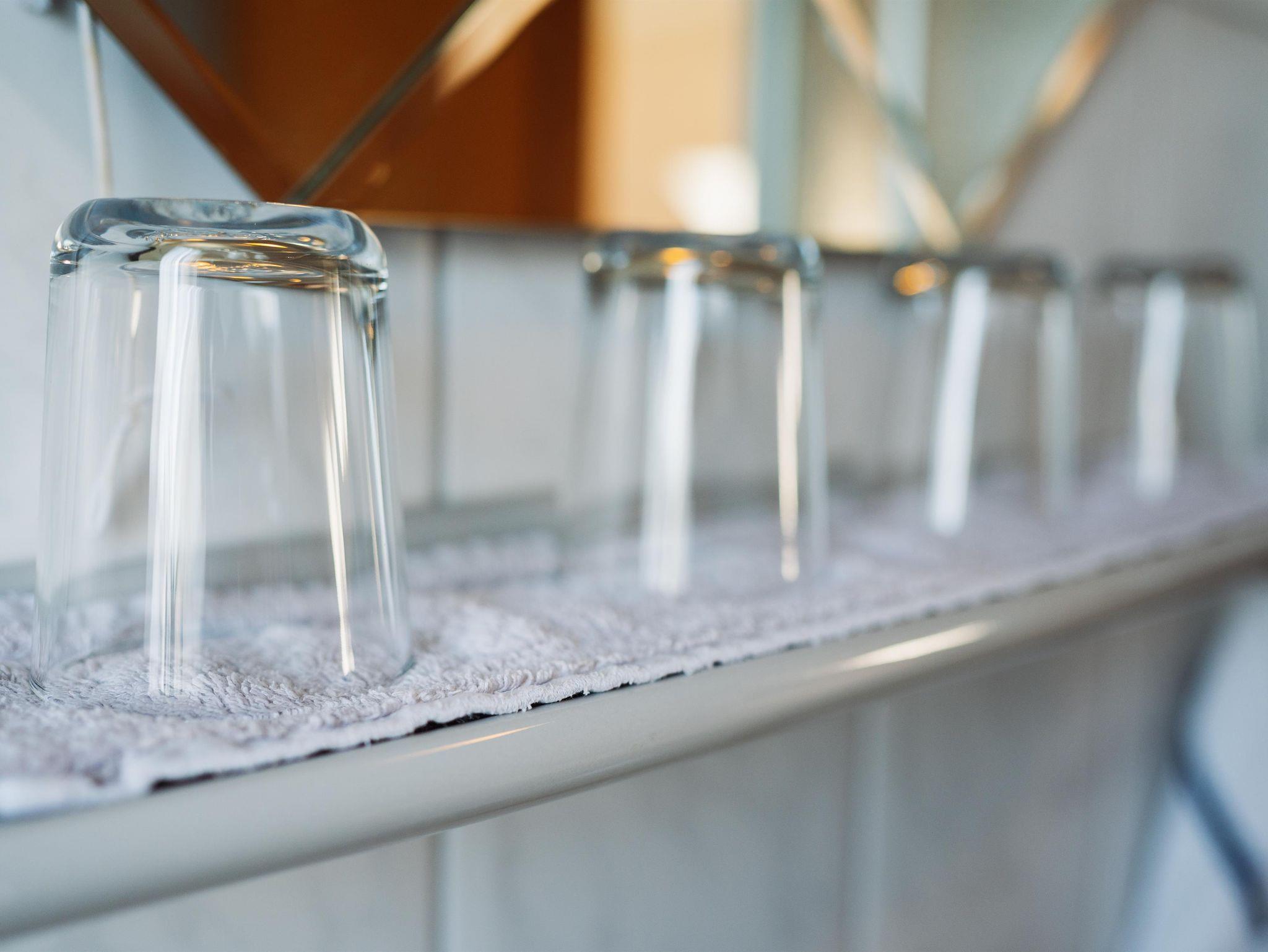Neben Kaffeemaschine, Eierkocher, Toaster, Töpfen und Geschirr ist auch ein Geschirrspüler vorhanden.