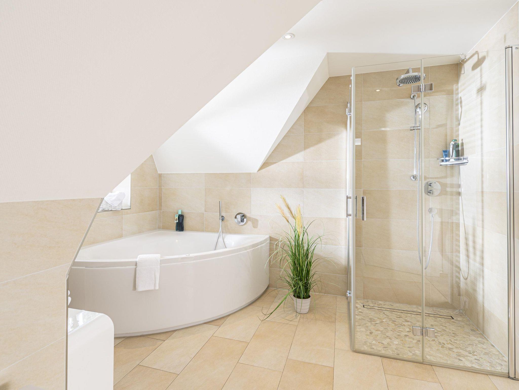 Im Obergeschoss befindet sich eine kleine Schreibecke, 2 Schlafzimmer. Eines hat ein Doppelbett, das andere zwei Einzelbetten, welche sich aber problemlos zusammenschieben lassen. Ausreichend Stauraum bieten die Einbauschränke. Jedes Schlafzimmer verfügt über einen Fernseher. Zudem finden Sie hier ein Wannenbad / WC mit separater Dusche. Entspannen können Sie in der großen Eckbadewanne, durch den Farblichtwechselmodus (Lichttherapie) erwartet Sie ein besonderer Komfort.