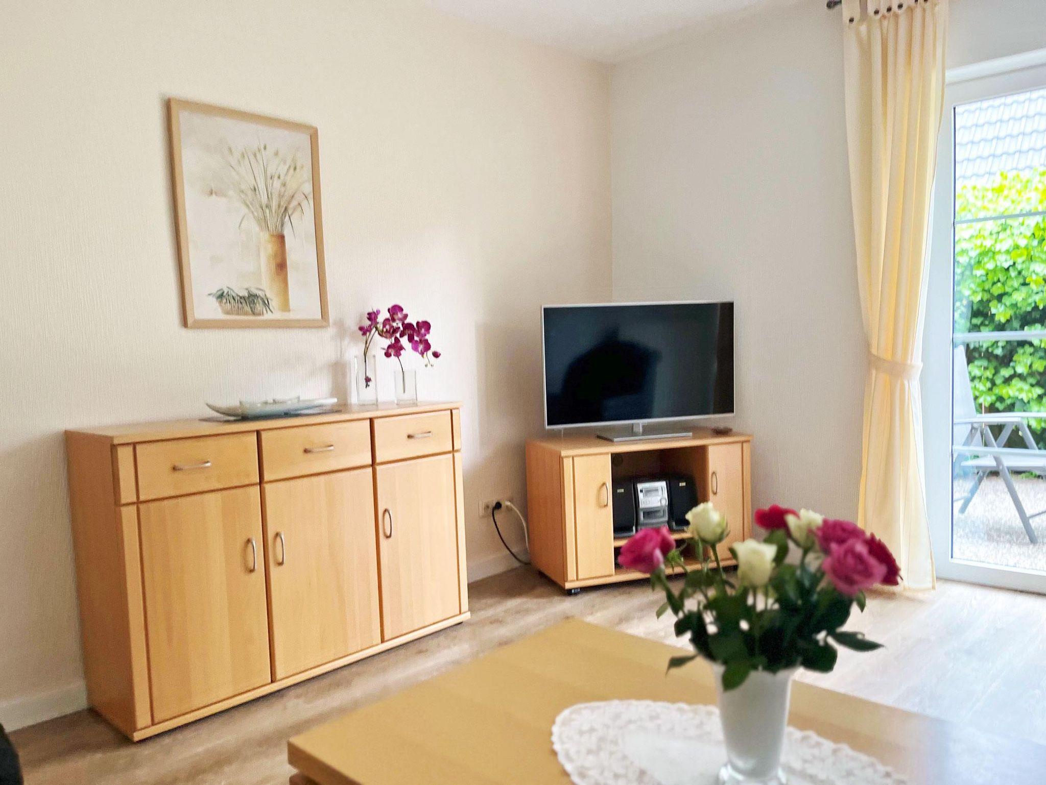 Die dritte Wohnung mit Südterrasse hat im Erdgeschoss ein Wohnzimmer mit Essecke, LCD-TV, Radio,Nichtraucherwohnung.