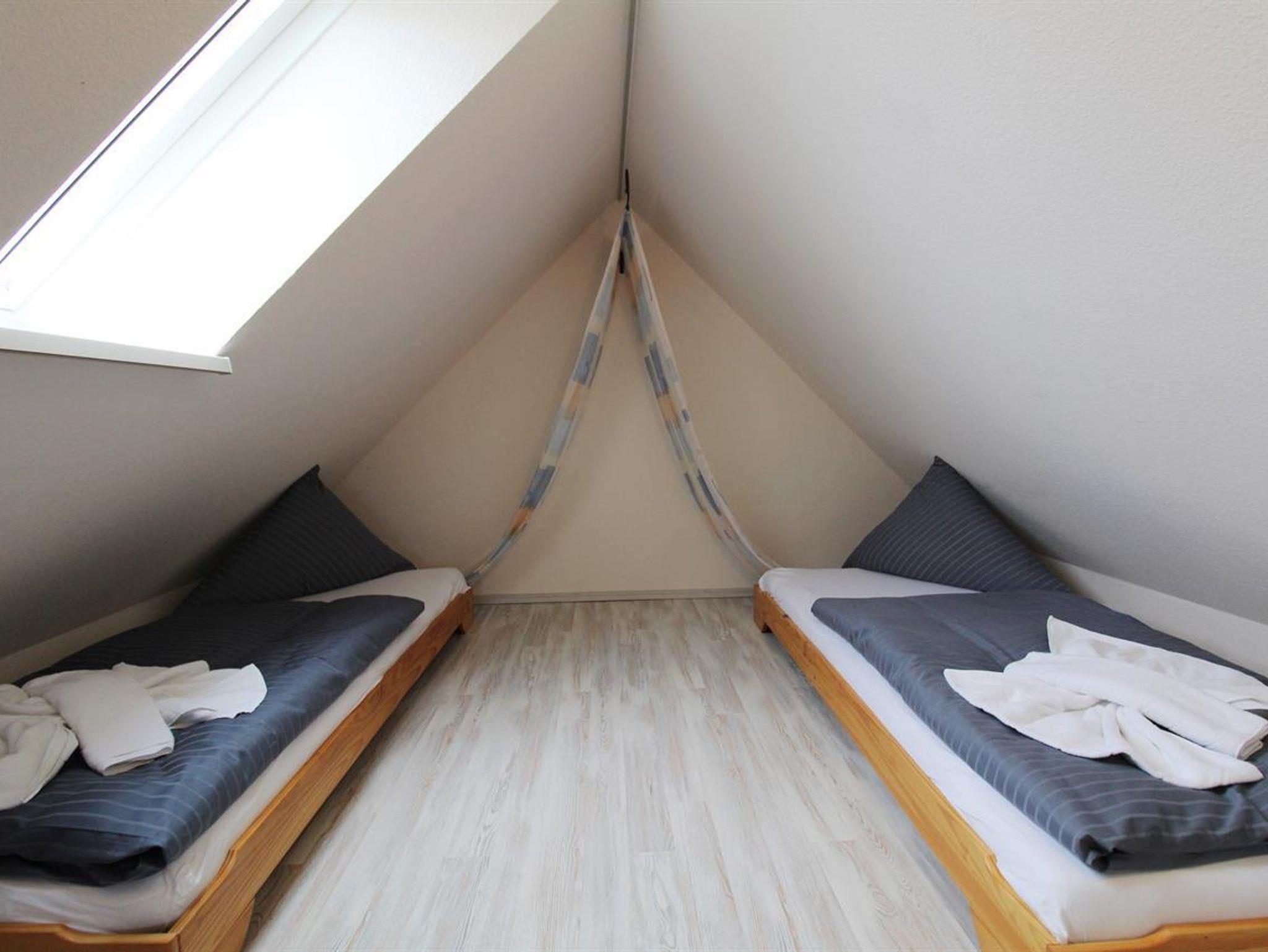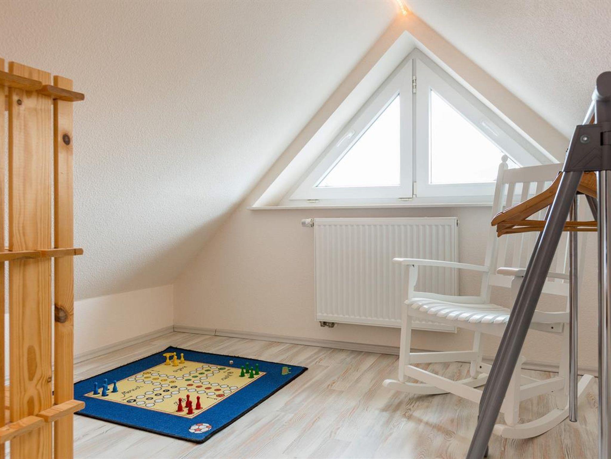 • Ein weiteres Schlafzimmer mit 2 Einzelbetten (je 90x200cm) im Spitzboden(erreichbar über Raumspartreppe) mit Schaukelstuhl und Spielecke.