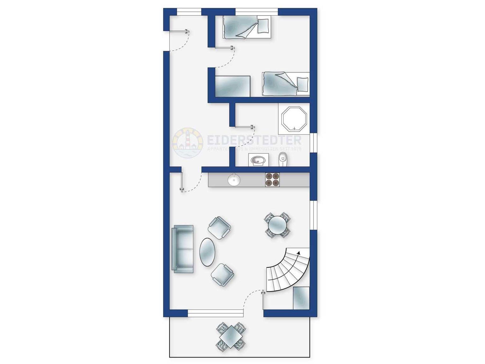 Gemütliche 2-Zimmer-Ferienwohnung in St. Peter-Ording mit Südbalkon und strandnaher Lage für entspannte Urlaubstage.