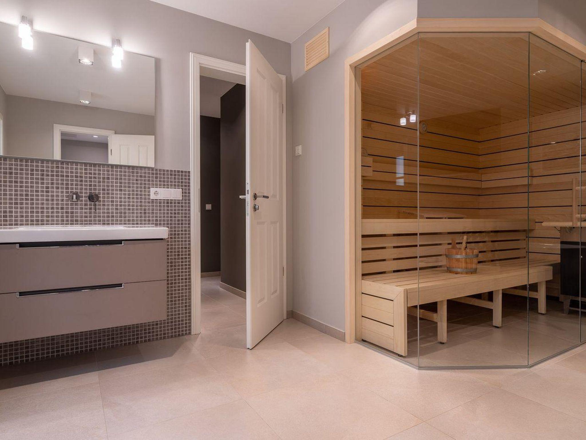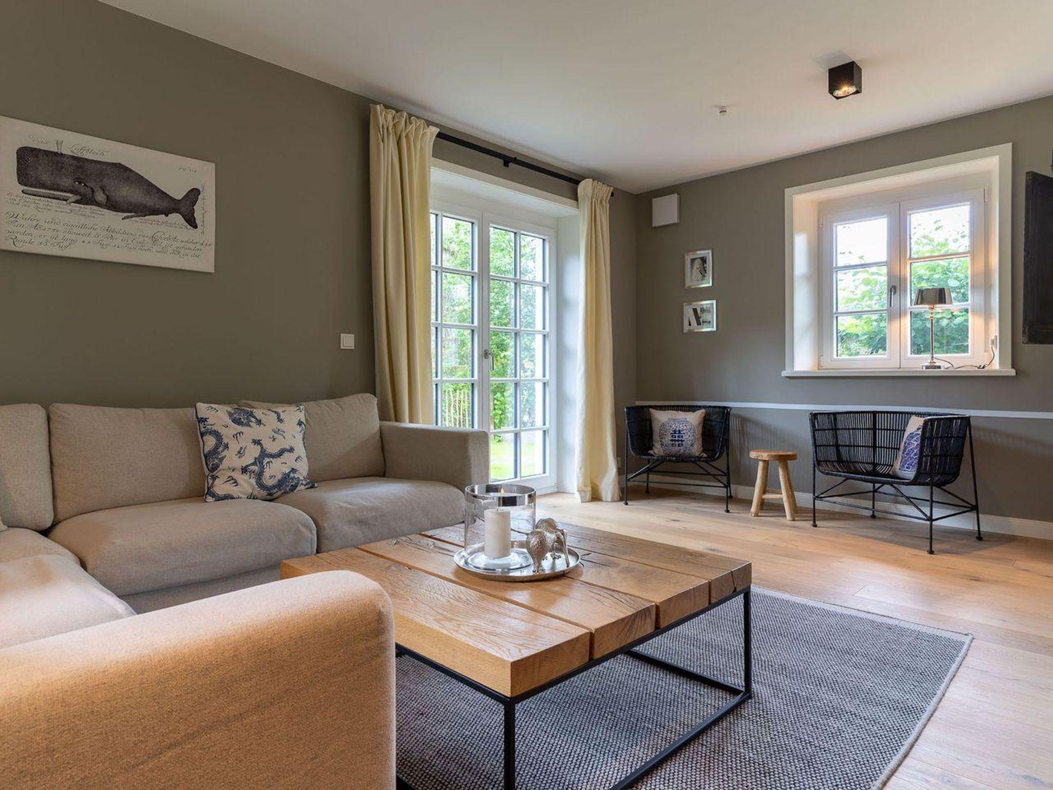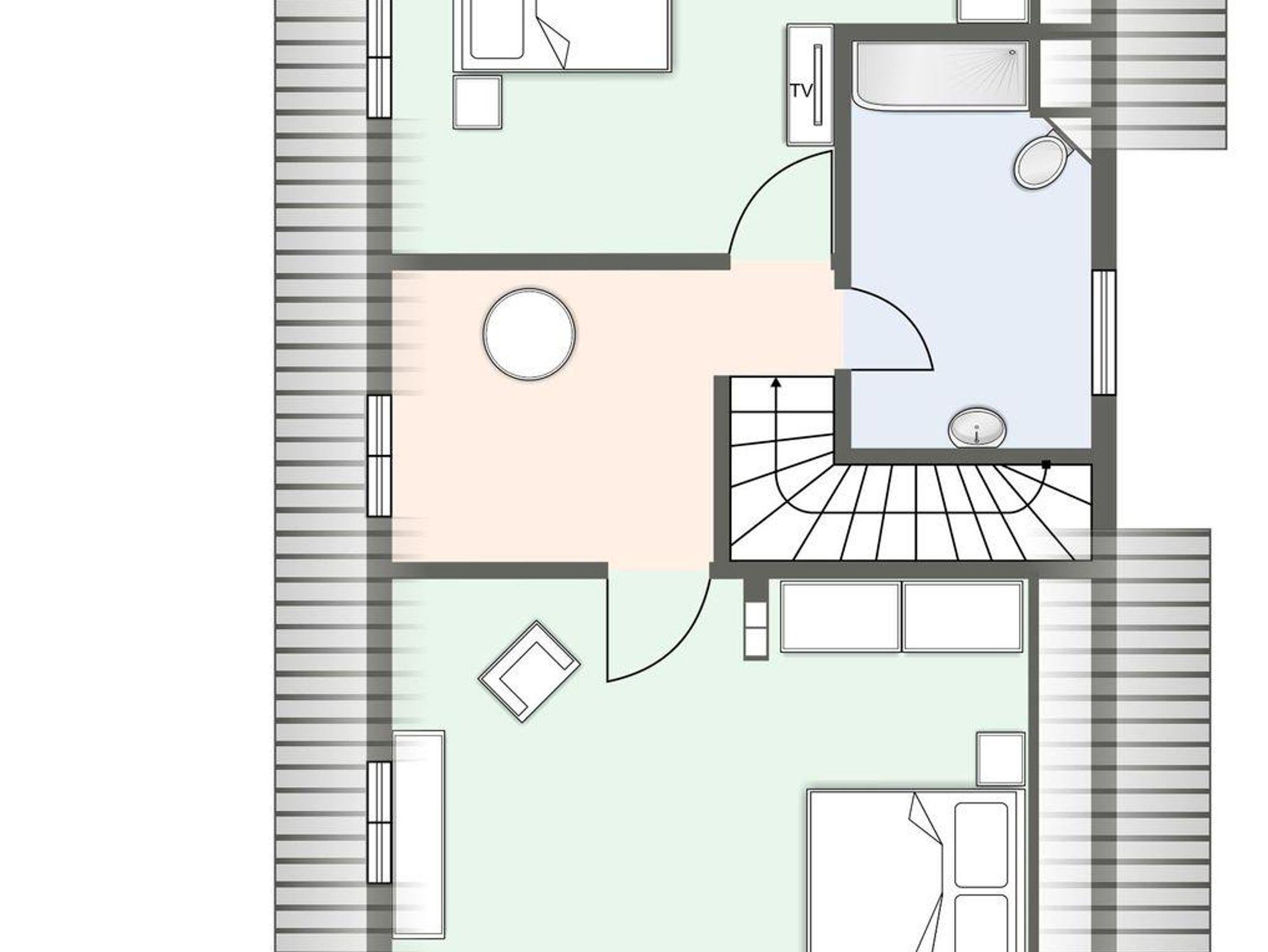 Im Erdgeschoss erwartet Sie ein lichtdurchflutetes Wohnzimmer mit Gaskamin und TV, eine offene Küche sowie ein integriertes gemütlichen Esszimmer. In diesem Bereich - wie auch in den Schlafzimmern - ist das Haus mit Eichenparkett ausgestattet. Die Küche verfügt über hochwertige Elektrogeräte und genügend Platz zum gemeinsamen Kochen. An den Wohnbereich schließt sich ein Flur sowie ein Gäste-WC an. Über eine Holztreppe gelangt man in das Obergeschoss. Die zwei Schlafzimmer, jeweils mit einem Doppelbett ausgestattet, sind bis unter das Dach geöffnet. Dies gibt den Räumen viel Luft und abends durch die indirekte Beleuchtung eine besondere Gemütlichkeit. Die Schlafzimmer sind ebenfalls mit TV ausgestattet. Kleiderschränke und Kommode gewähren Ihnen viel Stauraum. Darüber hinaus befindet sich im Obergeschoss ein geräumiges Badezimmer mit Raindance-Dusche. Das volle Wohlfühlprogramm erwartet Sie im Untergeschoss, das sowohl durch natürliches Tageslicht, als auch durch eine Strandbilder-Beleuchtung illuminiert wird. Sie gelangen direkt in den großzügigen Entspannungsbereich mit Sauna, freistehender Badewanne, großer Raindance-Dusche und TV. Auf dieser Ebene befindet sich das dritte Schlafzimmer, das auch mit einem Doppelbett, Kleiderschrank und TV ausgestattet ist.