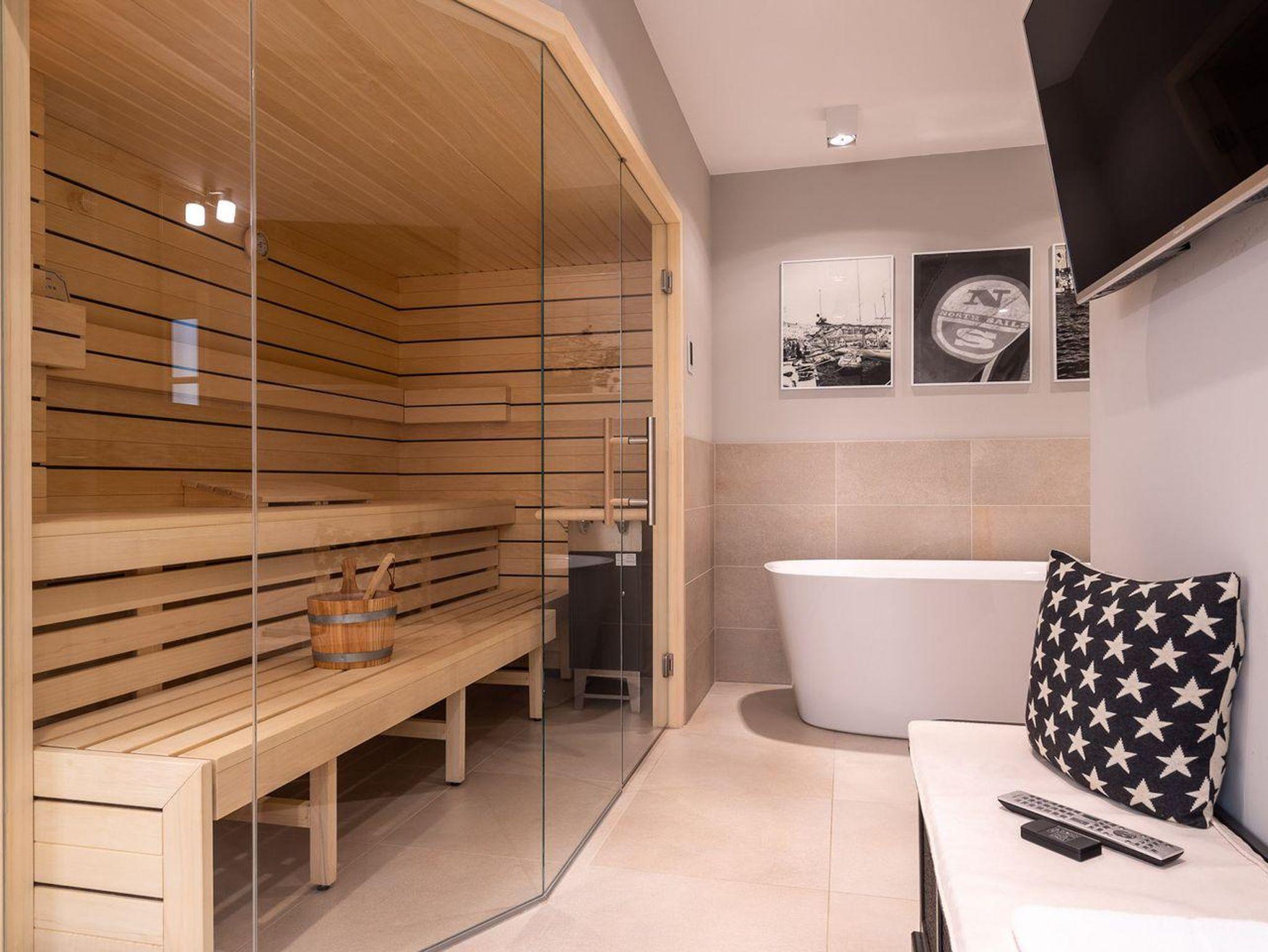 Stilvolles Boathouse mit Sauna und großzügigen Terrassen in St. Peter-Ording für erholsamen Urlaub.