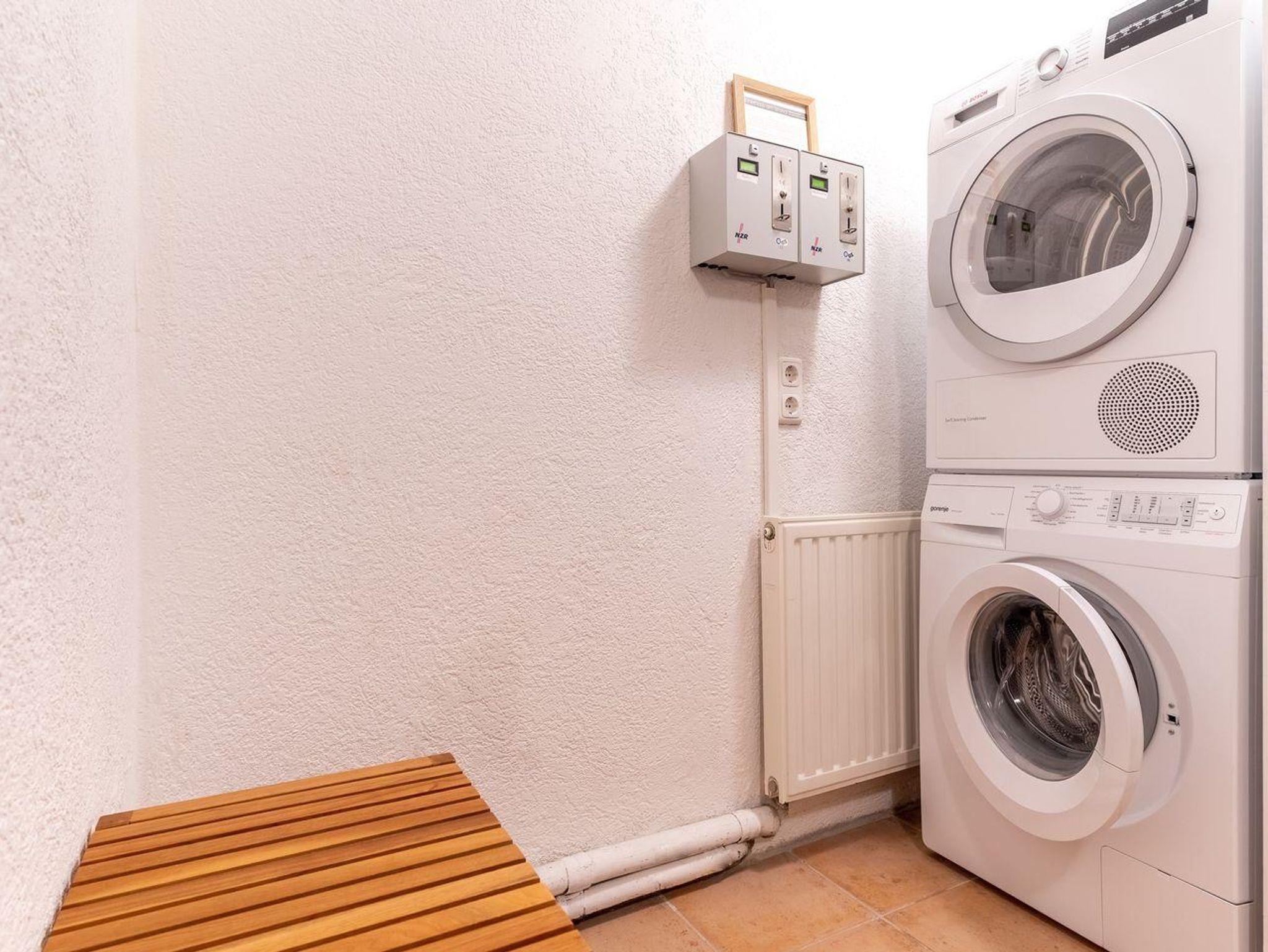 Zur Verfügung steht ein separater Waschraum mit Waschmaschine und Trockner.