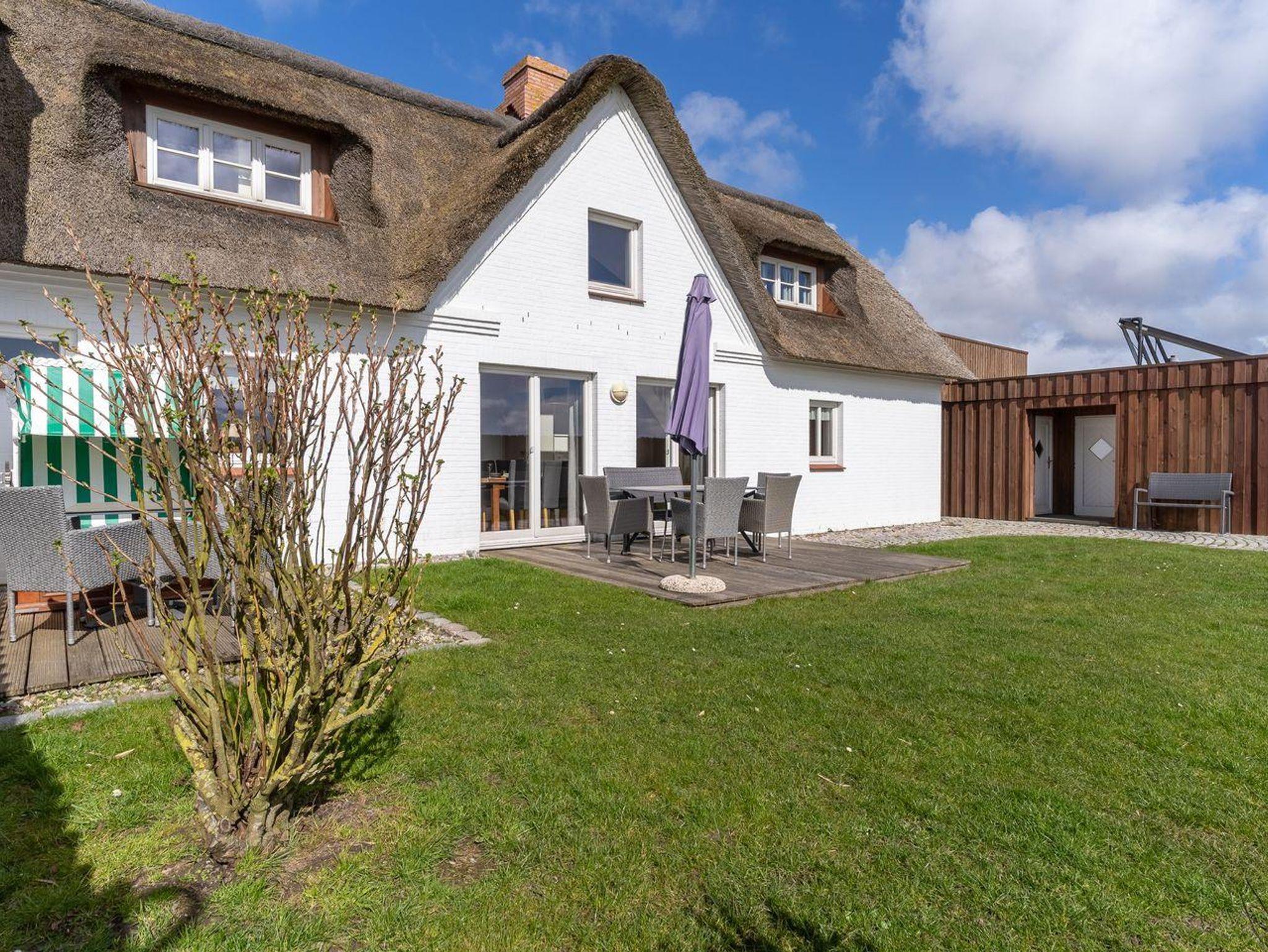 Reetdachhaus Friesenhaus in St. Peter-Ording bietet direkte Strandlage, Sauna und großen Garten für entspannte Urlaubstage.