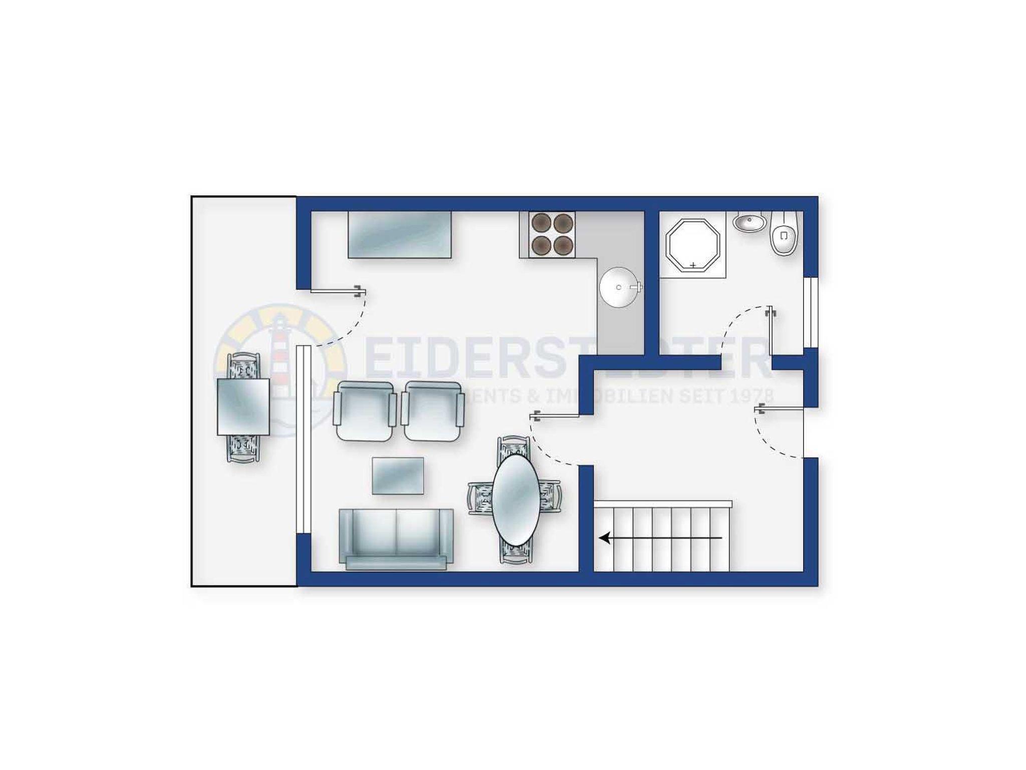 Moderner Endhausteil Beim Leuchtturm im Haus Böhler Eck mit 3 Zimmern und ca. 48 qm auf 2 Ebenen (EG, OG) für bis 4 Personen. Ruhige Lage im Ortsteil Böhl in St. Peter-Ording. Mit sonniger Südwestterrasse für entspannte Momente auch zu Hause im Urlaub.
