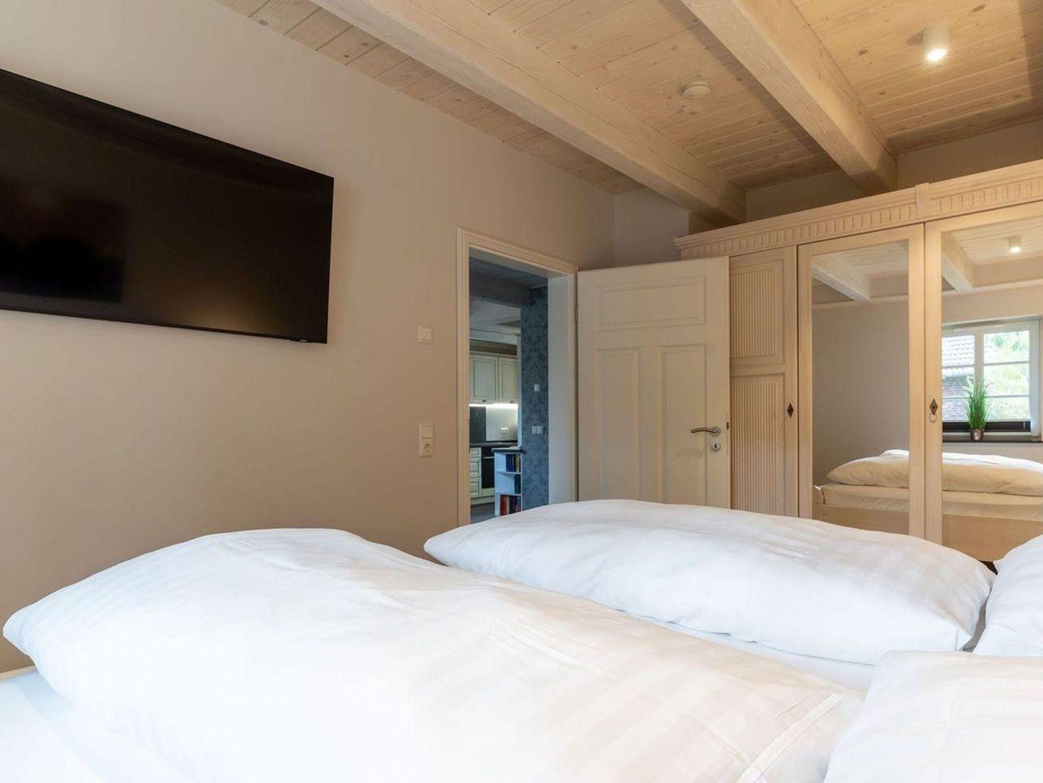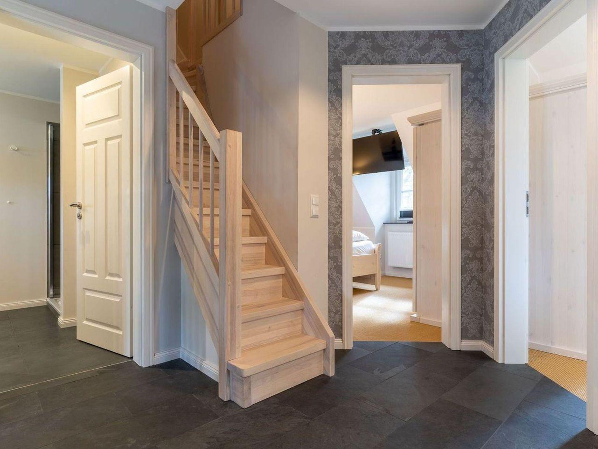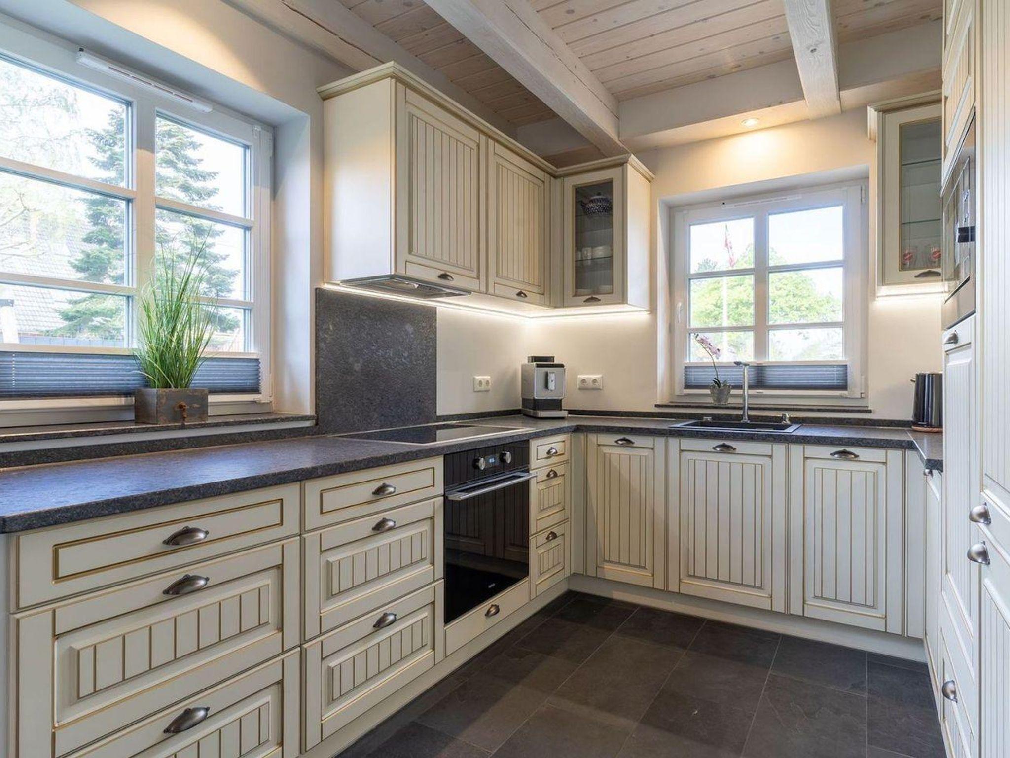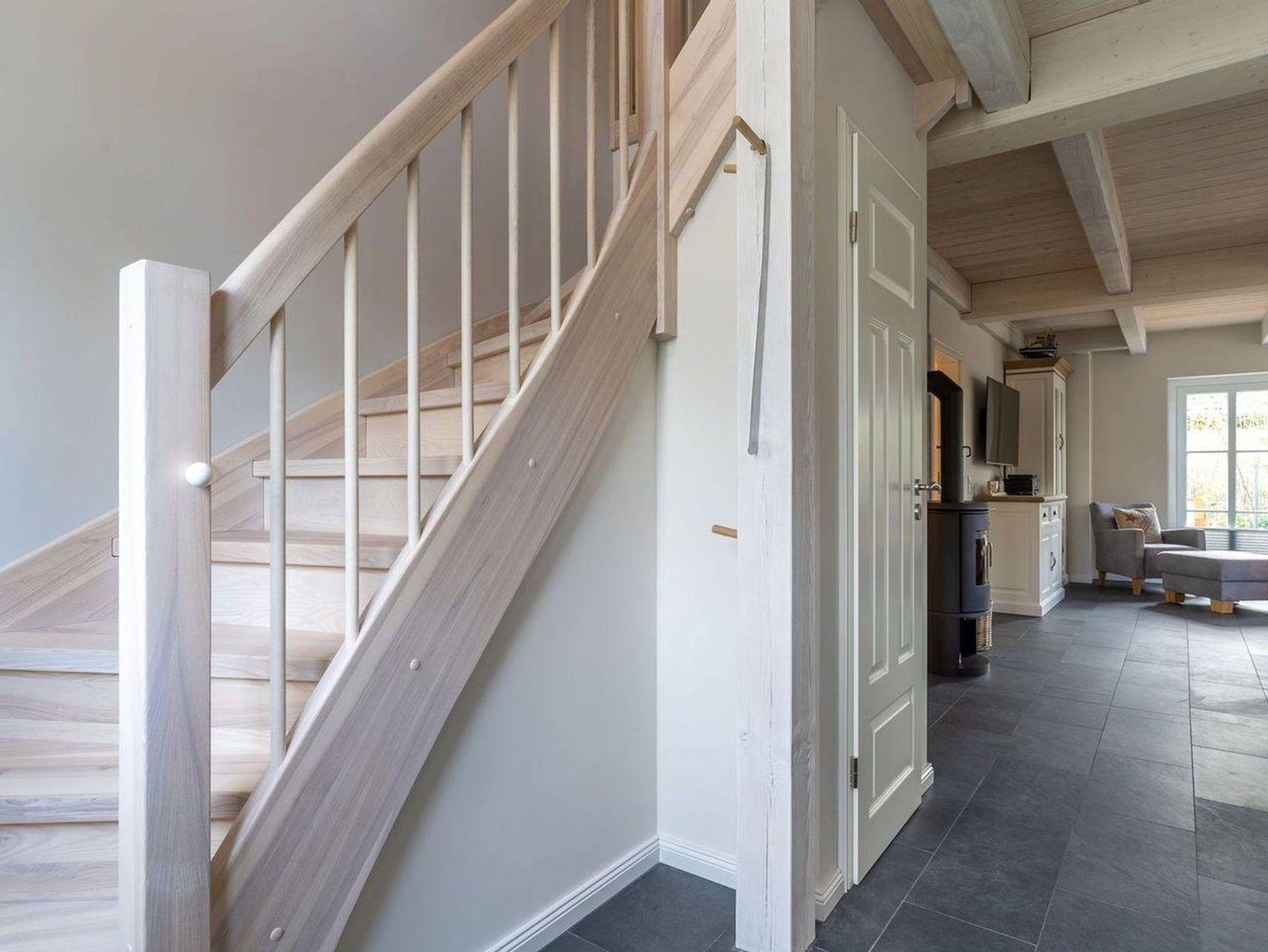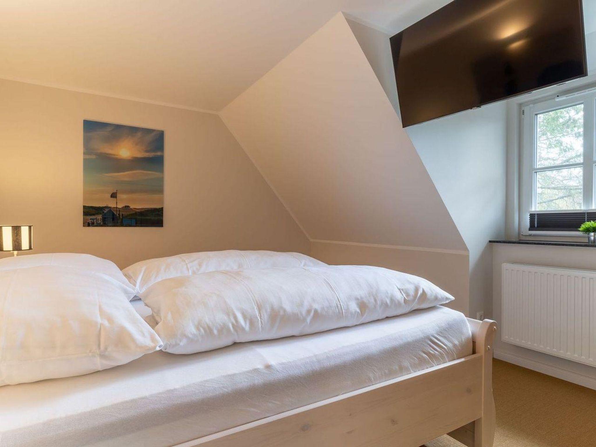 Das luxuriöse Reetdachhaus-Hälfte ist ca. 140 m² groß und bietet Platz für 6 Personen.Im Erdgeschoss befindet sich der lichtdurchflutete Wohnraum mit TV, Kamin, einer offenen Küche sowie einem stilvollen Essbereich.Die Küche ist ausgestattet mit Backofen und Geschirrspüler, sowie einem Esperto-Caffè-Automat, Toaster, Wasserkocher und den üblichen Küchenutensilien.An den Wohnbereich schließen sich ein Flur, ein Duschbad und ein Doppelschlafzimmer an.Das Erdgeschoss ist rollstuhlfreundlich.Über eine Holztreppe gelangt man in das Obergeschoss. Die beiden Schlafzimmer - jeweils mit einem Doppelbett - sorgen für ruhevolle Erholung.Im ersten Stock befindet sich ausserdem ein weiteres Duschbad sowie eine Sauna.