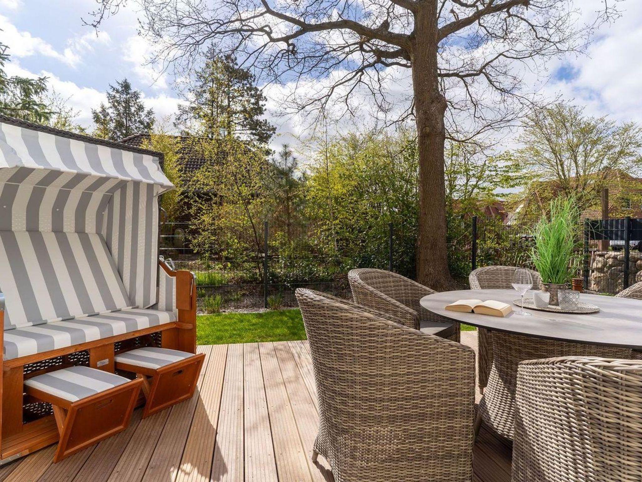 Auf der großen Terrasse steht ein Strandkorb und ein großer runder Tisch mit Gartenstühlen zur Verfügung.Der Garten ist komplett eingezäunt.Es stehen 4 Fahrräder für Sie zur Verfügung.Dieses wunderschöne Haus lässt keine Wünsche offen und verzaubert Sie sofort in Urlaubsatmosphäre.