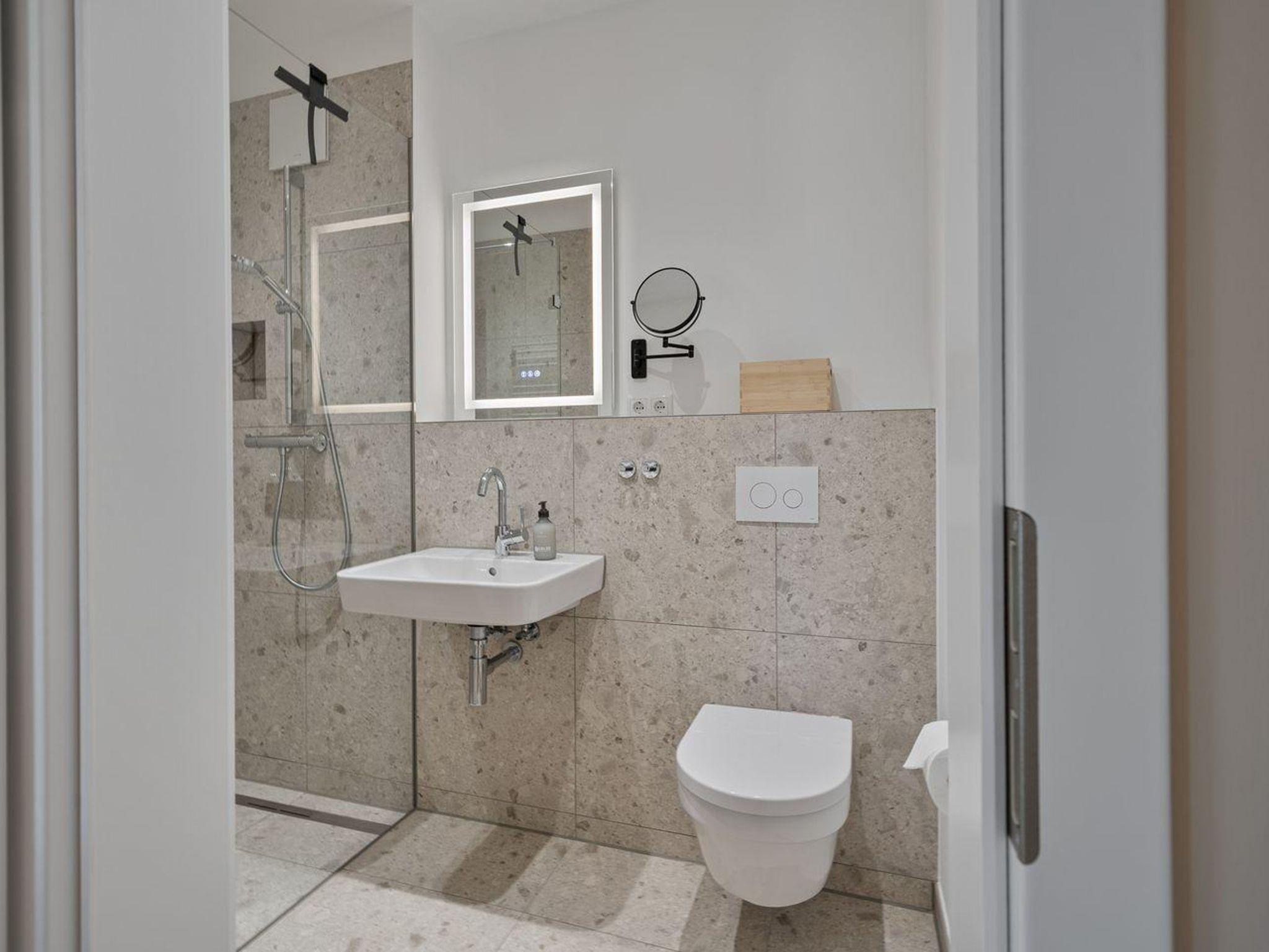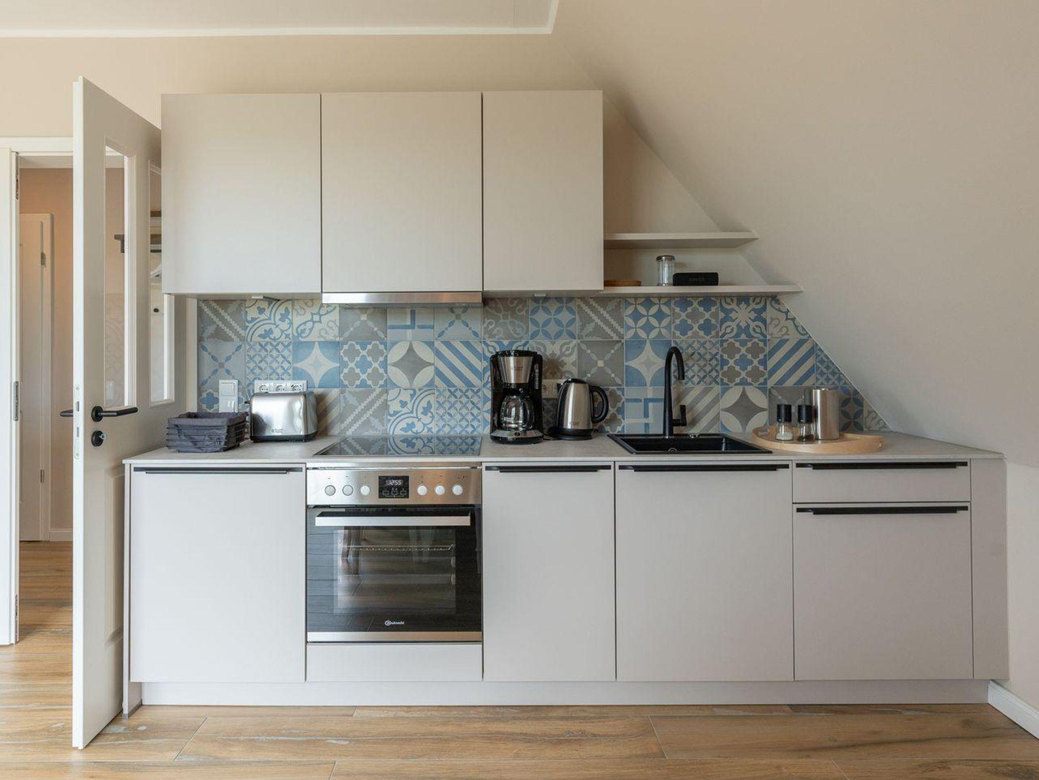 Der helle Wohnbereich der Wohnung ist mit einem Schlafsofa, einem Couchtisch und einem Esstisch mit 4 Stühlen ausgestattet. Im Garten befindet sich eine eigene Terrasse für die Wohnung Över`n DIek. Hier steht ein kleiner Tisch mit 2 Stühlen für Sie bereit. Die Küchenzeile bietet ein Cerankochfeld, Geschirr, Kaffeemaschine, Kühlschrank, Toaster, Wasserkocher und Backfunktion. Das Schlafzimmer verfügt über ein Doppelbett und einen Fernseher. Ebenso gehören ein Flur mit Garderobe sowie ein Badezimmer mit Dusche, Waschbecken und WC zur Ausstattung. Zur Unterhaltung gibt es einen Internet-TV Flachbildschirm und kostenloses WLAN. Ein Parkplatz für Ihr Auto befindet sich auf dem Grundstück.