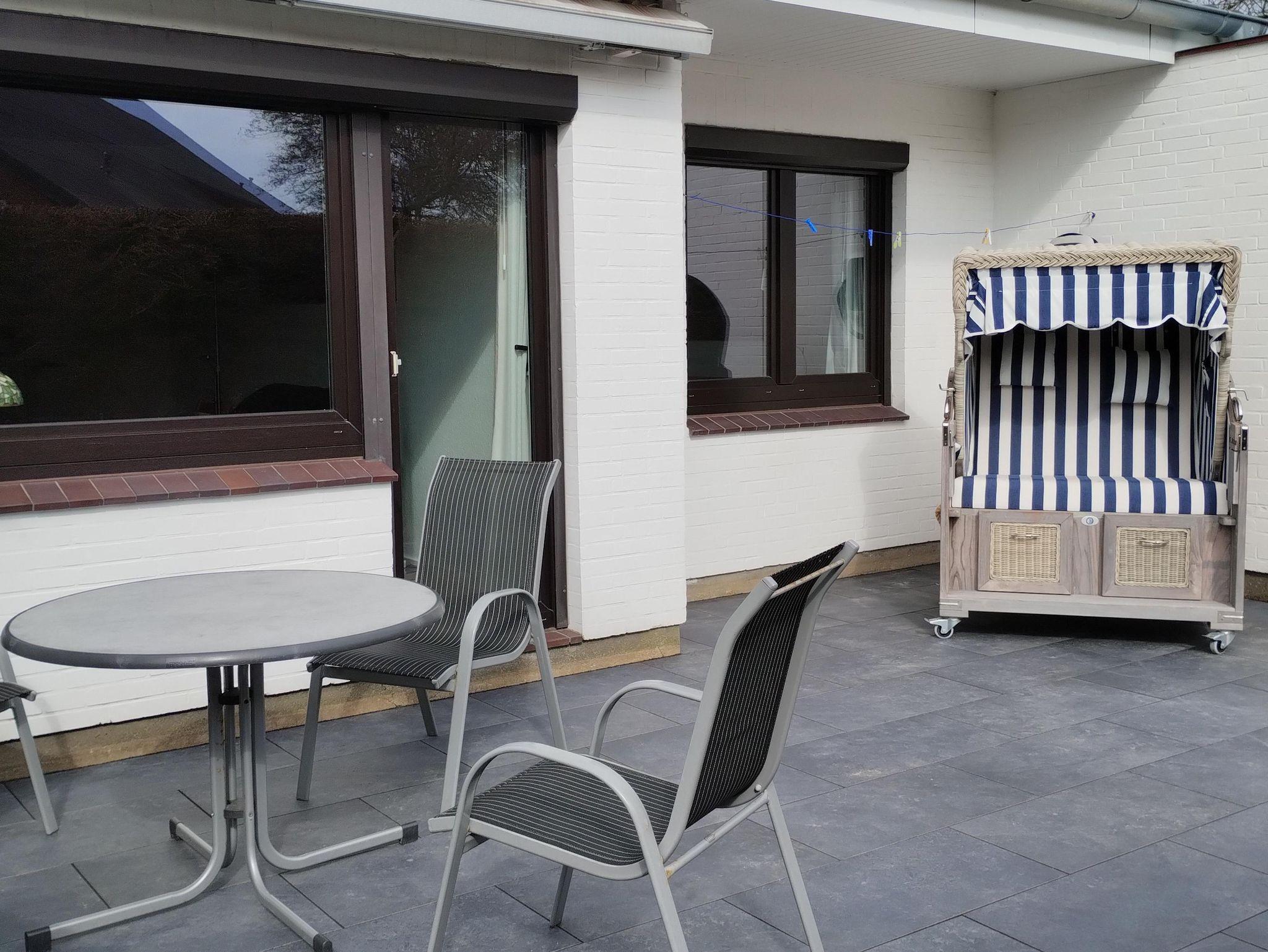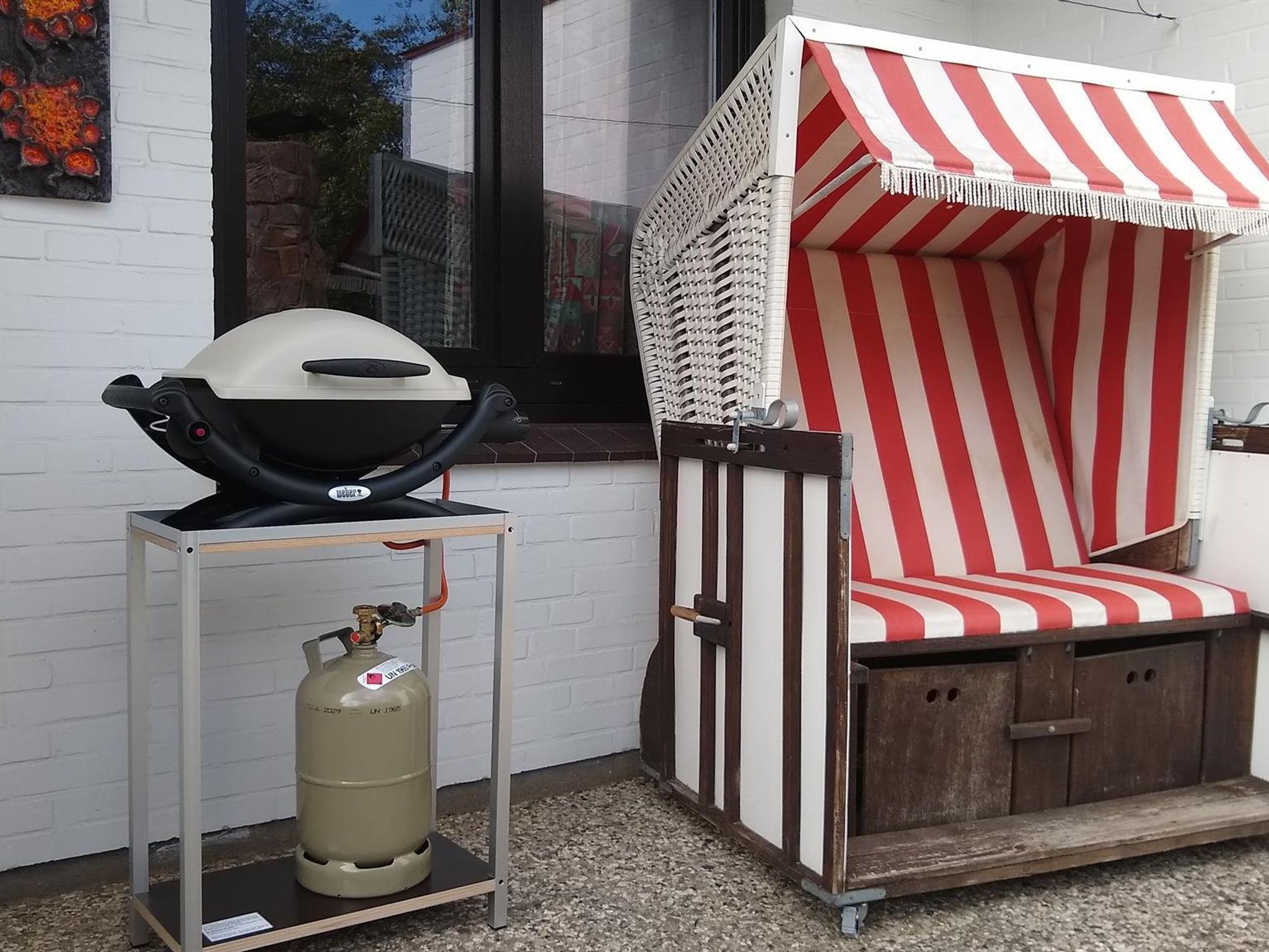 Zum Relaxen lädt eine große Terrasse in Südostausrichtung ein, mit Markise, Strandkorb und Gartenkamin. Es sind Sonnenliegen vorhanden und auf dem Weber-Gasgrill können Sie genüsslich Steaks und andere Köstlichkeiten zubereiten.