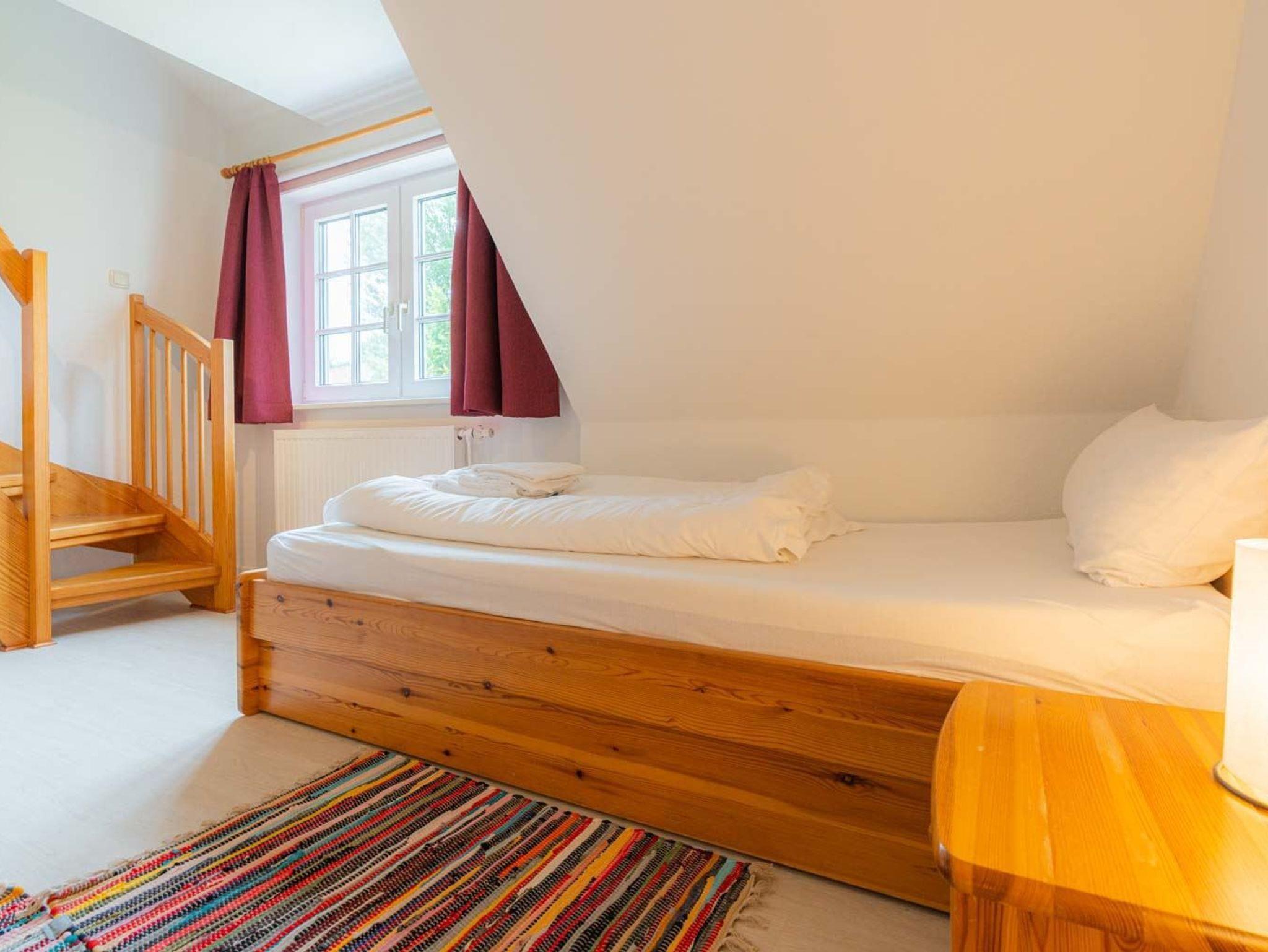 3. Schlafzimmer mit 1 Einzelbett (90x200cm), Sideboard, kleinem Schreibtisch, Stuhl und Sessel. Zugang über eine steile Treppe aus dem 2. Schlafzimmer.