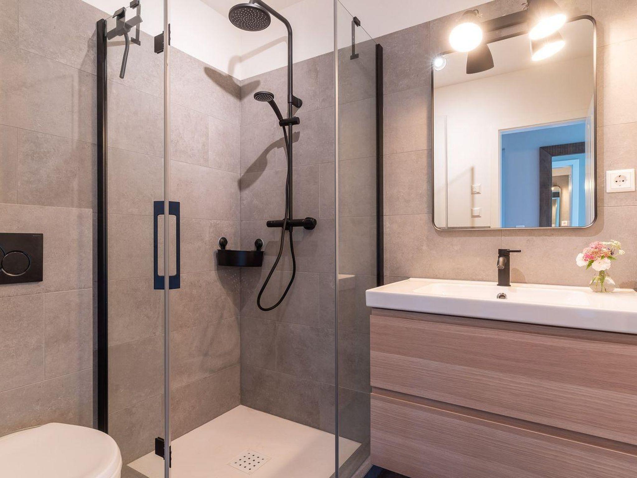 Vom Wohnzimmer gelangen Sie auf eine gemütliche, sonnige Südost Terrasse mit stylischen Gartenmöbeln. An dem Wohnflur mit Garderobe schließt sich ein Duschbad an.