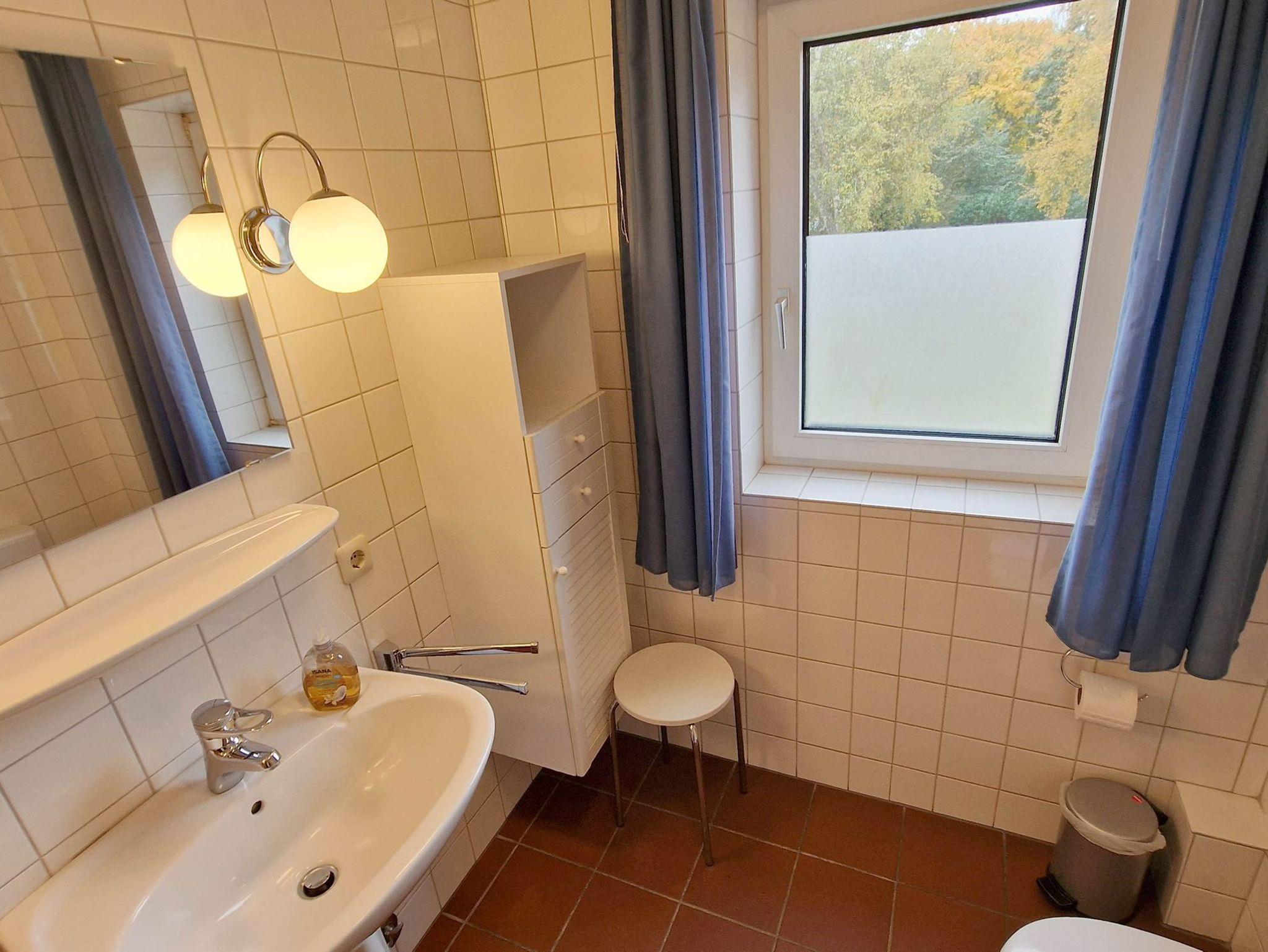 Entspannen Sie im modernen Badezimmer, das Ihnen den perfekten Start in den Tag ermöglicht.