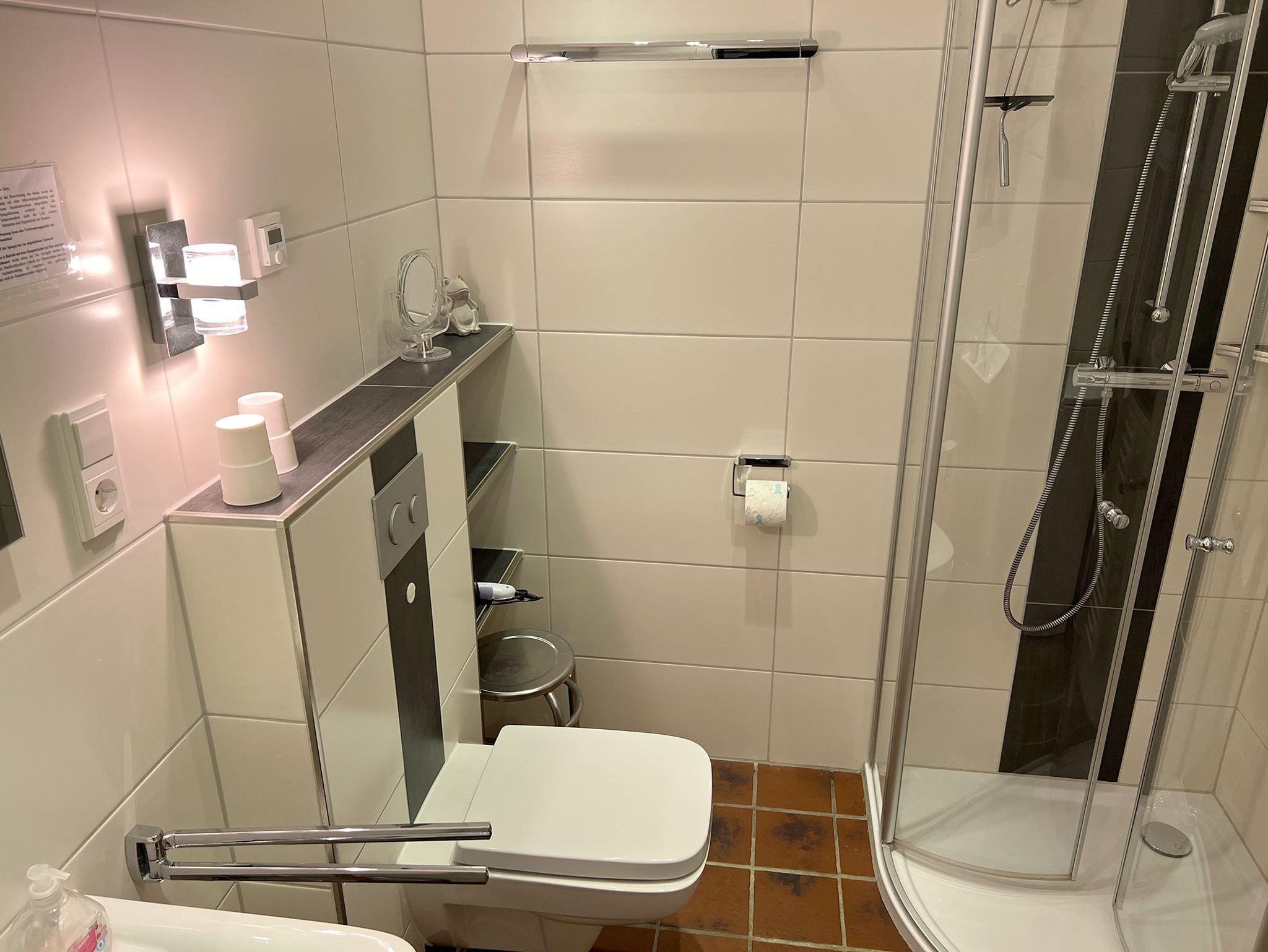 Komfortable Badezimmer: Ein Bad mit Waschmaschine und ein weiteres im Obergeschoss bei den Schlafzimmern.