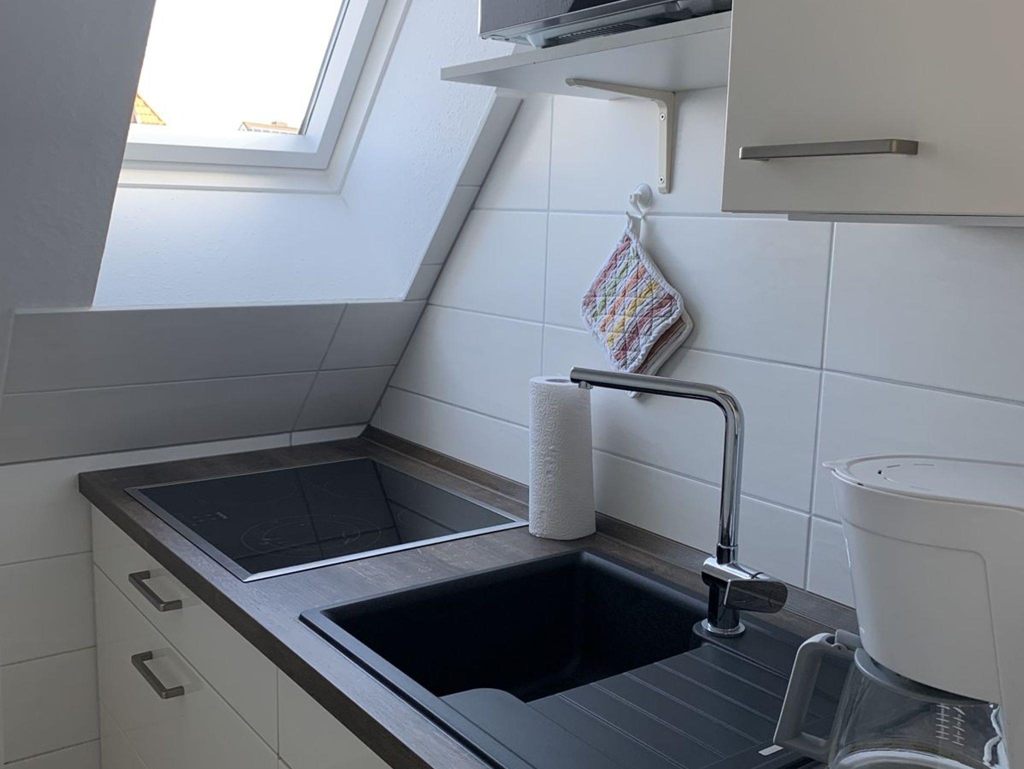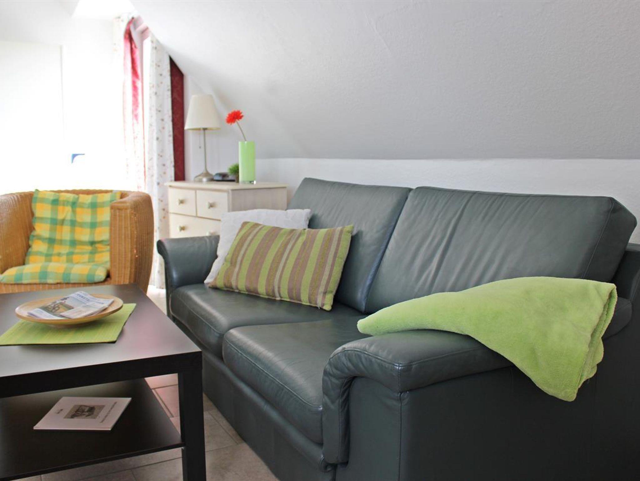 Die Ferienwohnung 3 liegt im Obergeschoss und verfügt über einen modernen, gemütlichen Wohnbereich mit Ausgang zum kleinen Südbalkon. Sie ist u.a. mit einer Sitzgruppe, Couchgarnitur, Flat-TV und ein Schrankdoppelbett ausgestattet. Ein kleiner separater Schlafraum mit 2 einzelnen Springboxbetten, eine separate Küchenzeile, sowie ein Duschbad sind vorhanden.