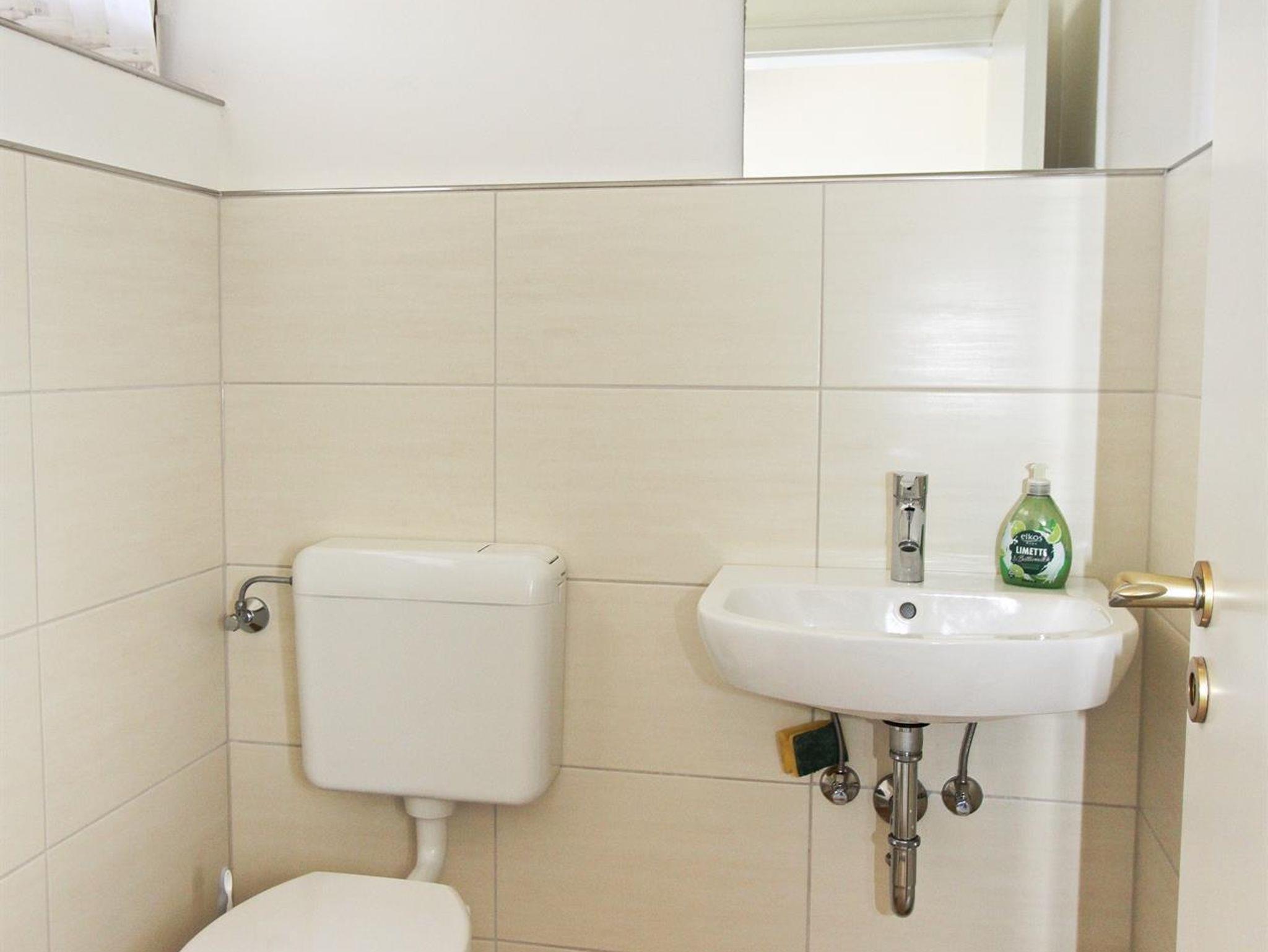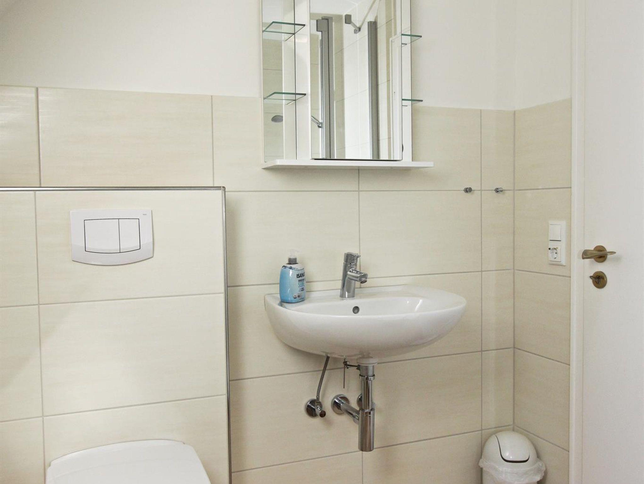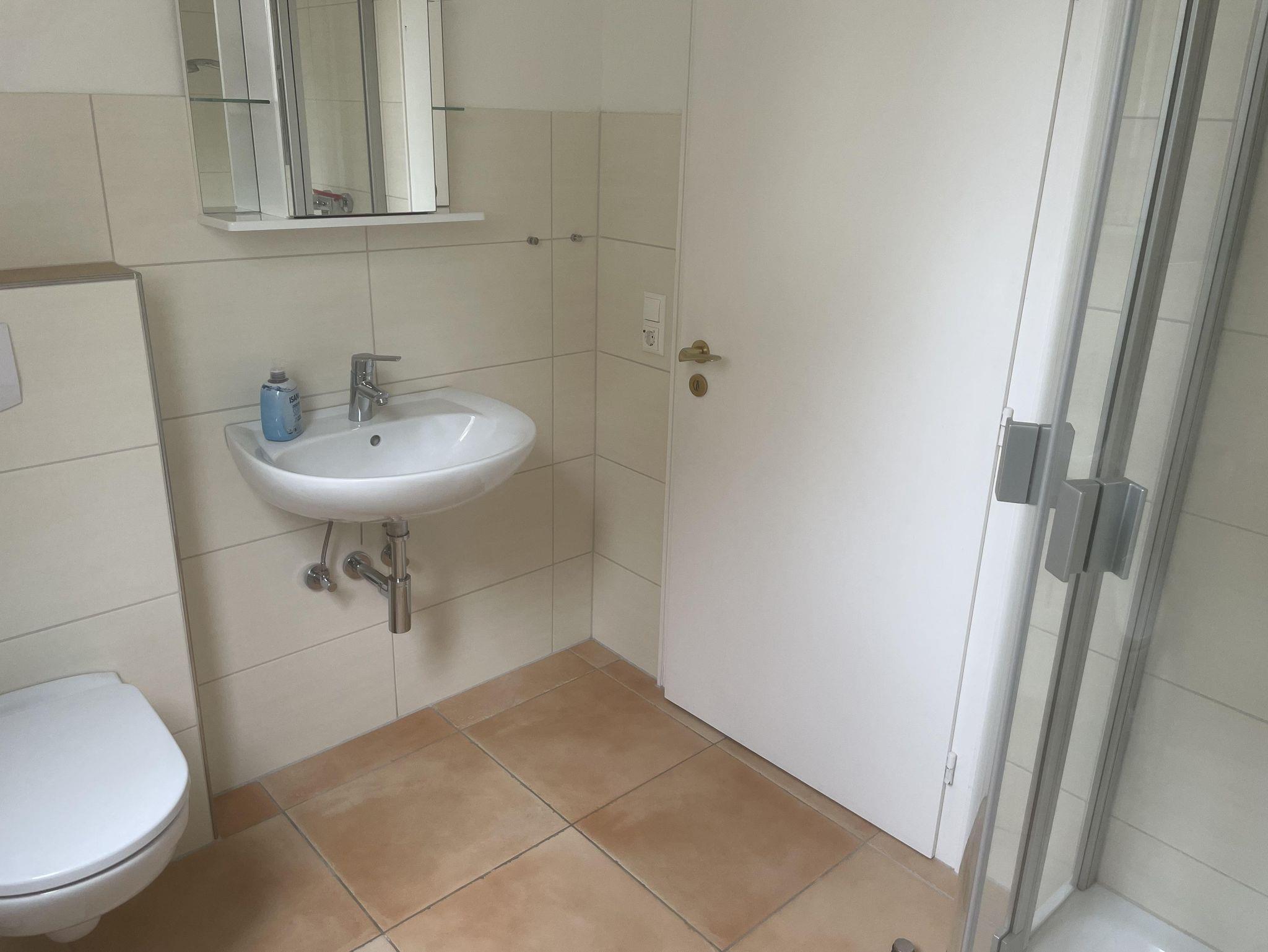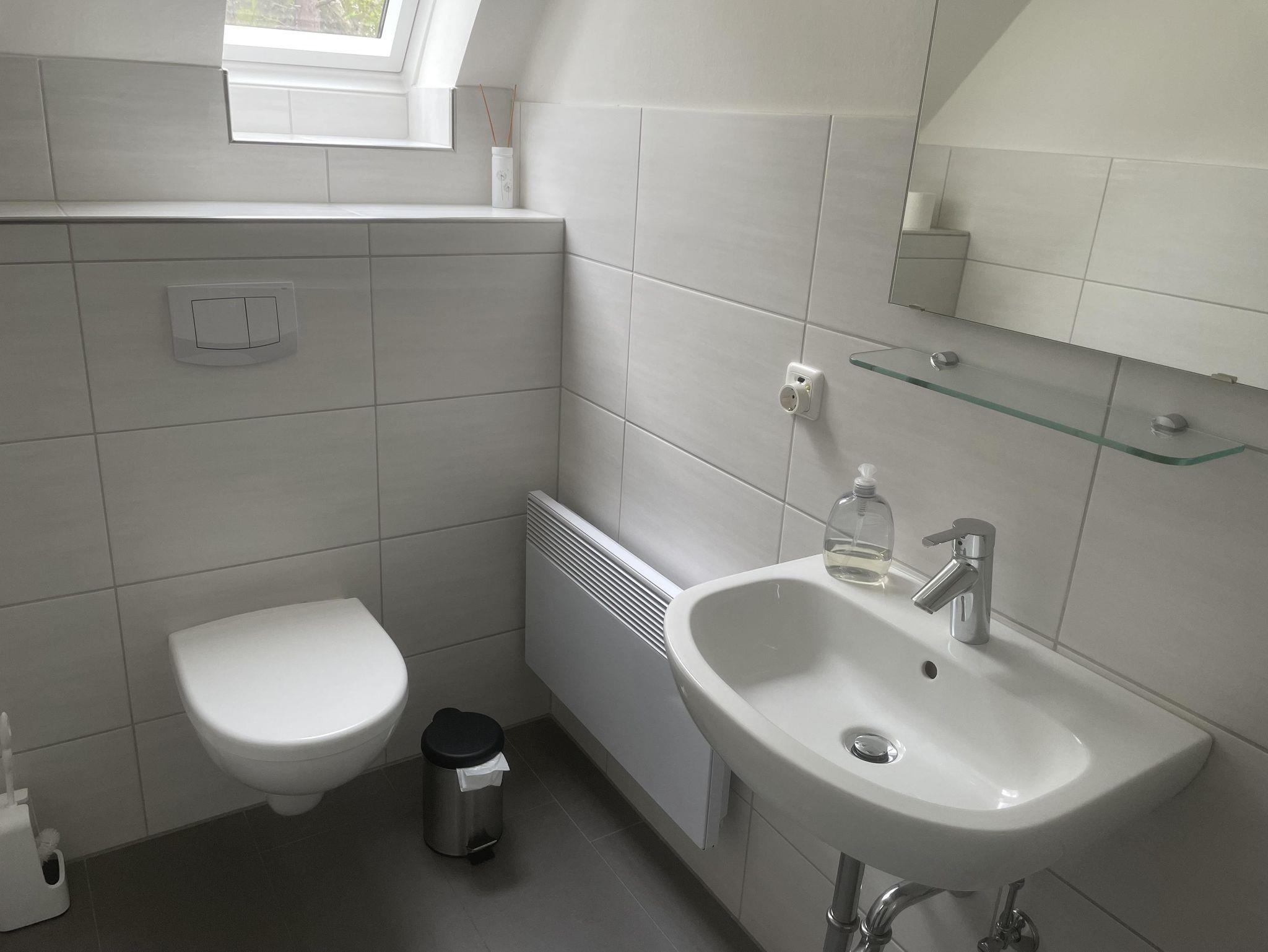 Zwei Badezimmer mit Dusche, Waschtisch und WC, sowie ein separates Gäste-WC sind vorhanden.