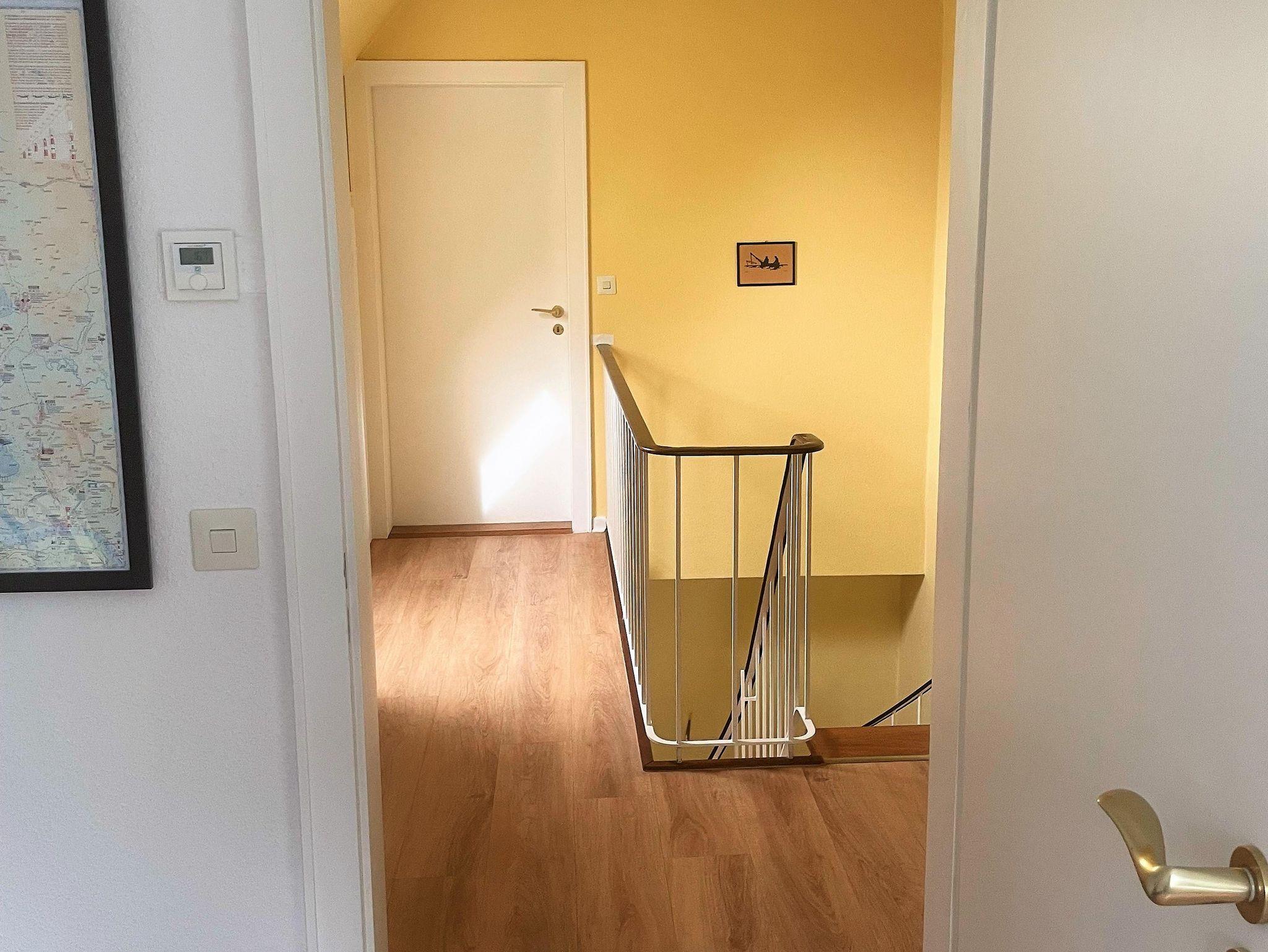 Über eine offene Treppe gelangen Sie in die obere Etage mit 4 Schlafräumen.