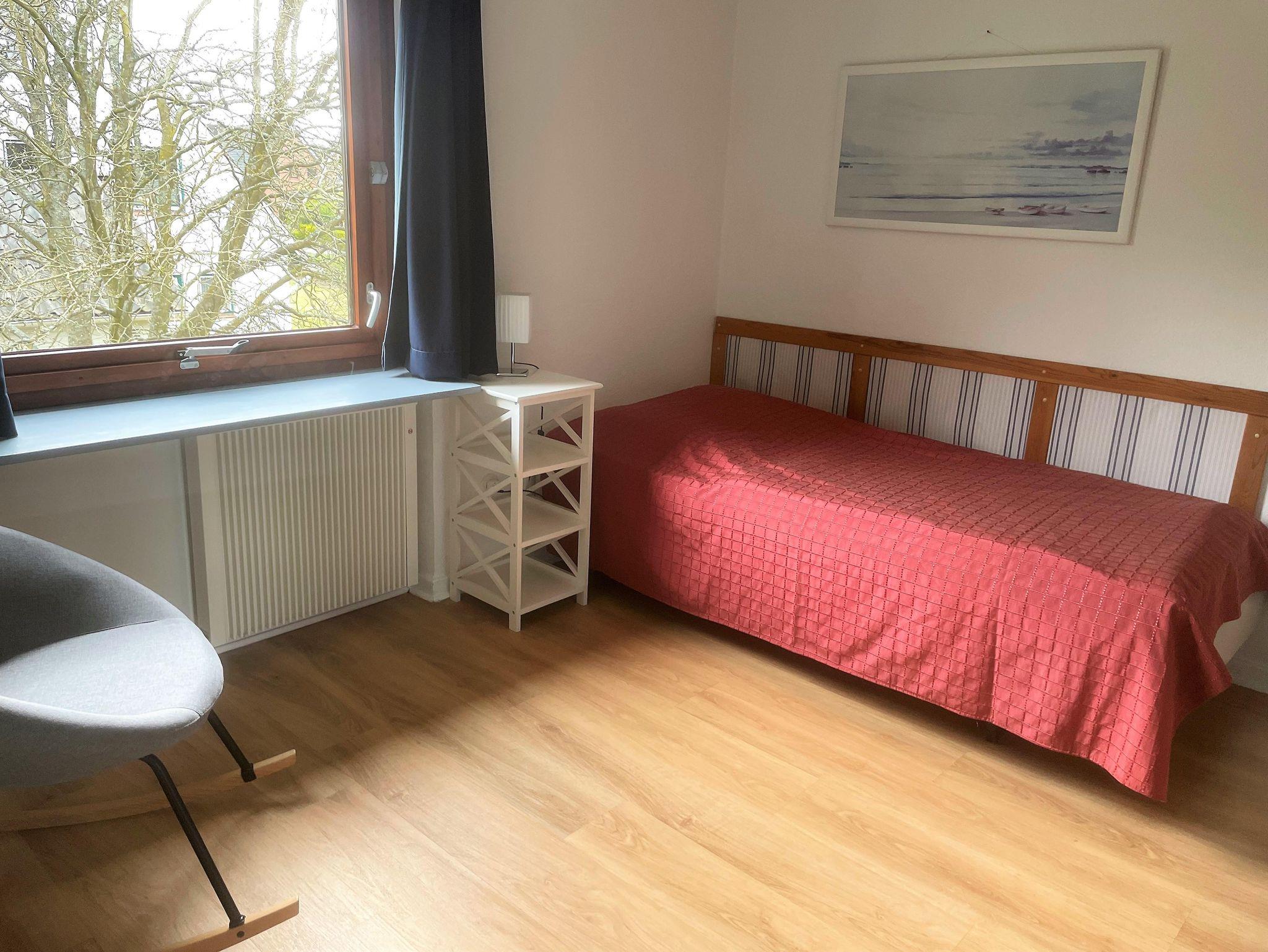 Hier sind 4 Schlafräume vorhanden: 1x ein Doppelbett (je 90 x 200 cm) , 2 x je ein Einzelbett, 1 x Doppel- Schlafcouch.