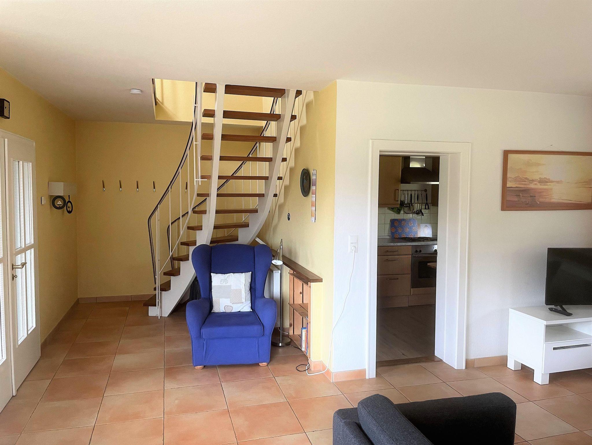 Über eine offene Treppe gelangen Sie ins Obergeschoß des Hauses.