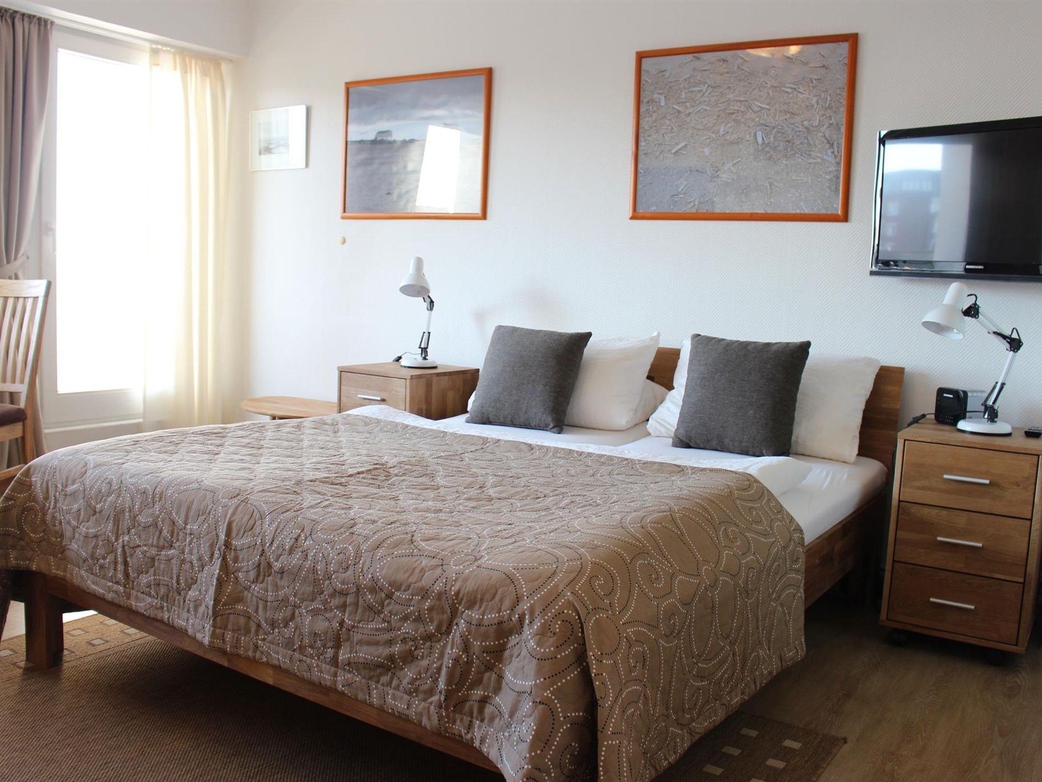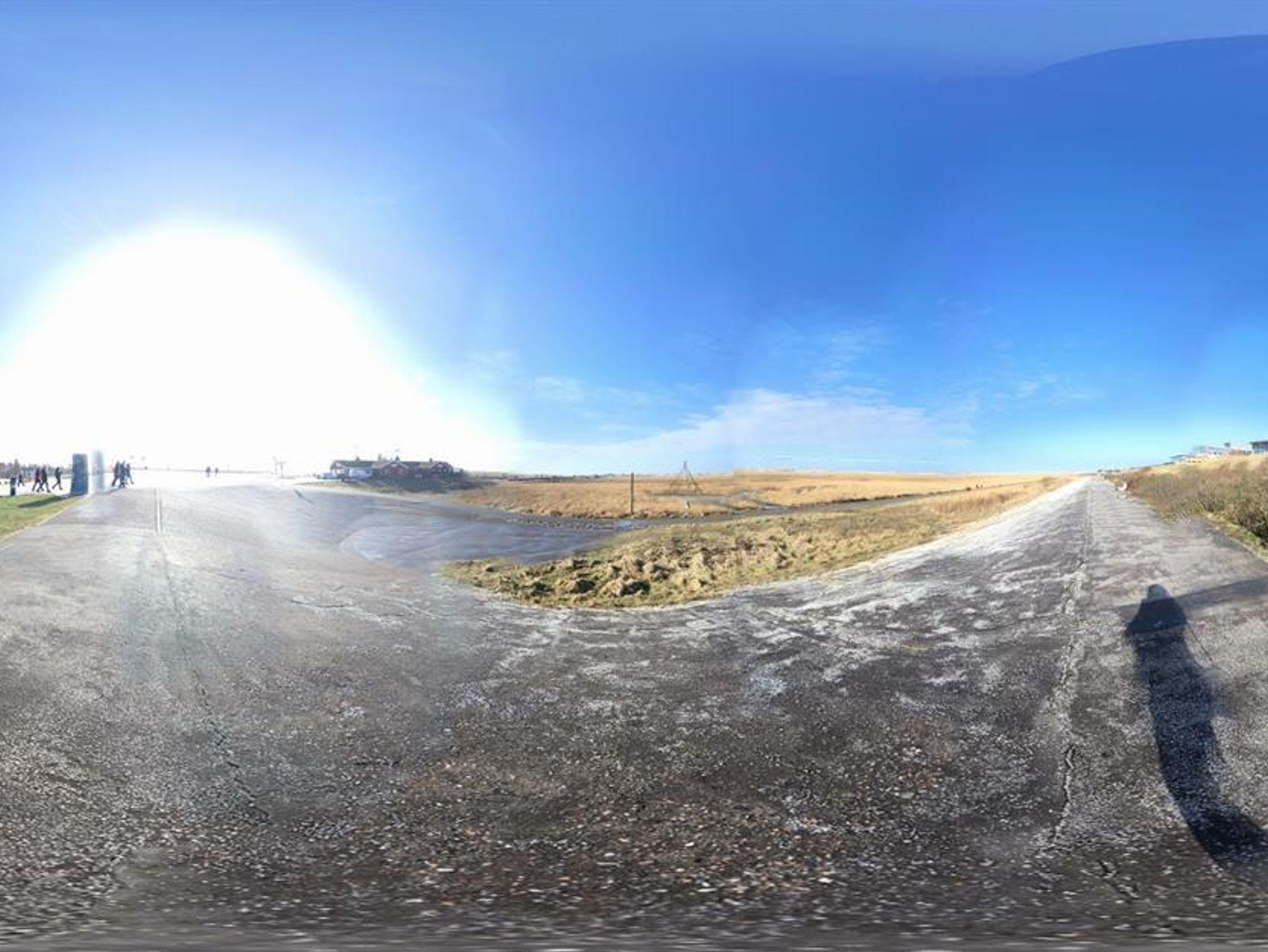 gegenüber der Dünentherme mit Sauna, Meerwasserwellenbad und Erlebnisbad.