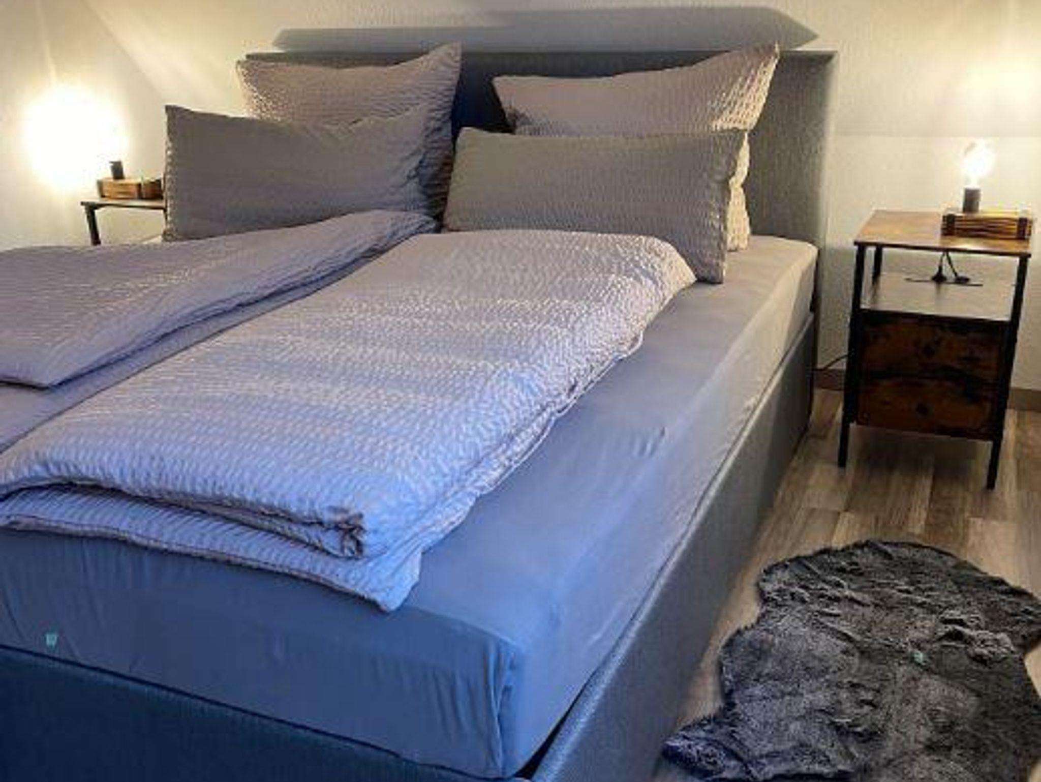 Das Bett ist ein 1,80m x2,00m Boxspringbett mit Topper, sodass der Härtegrad selbstständig verändert werden kann.