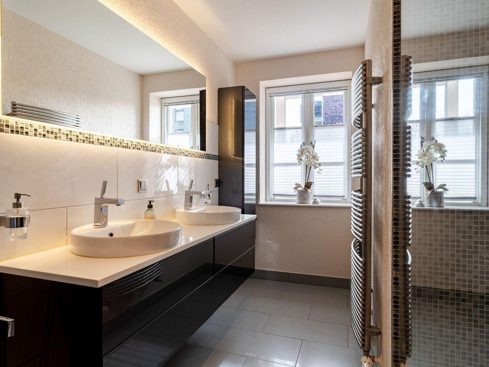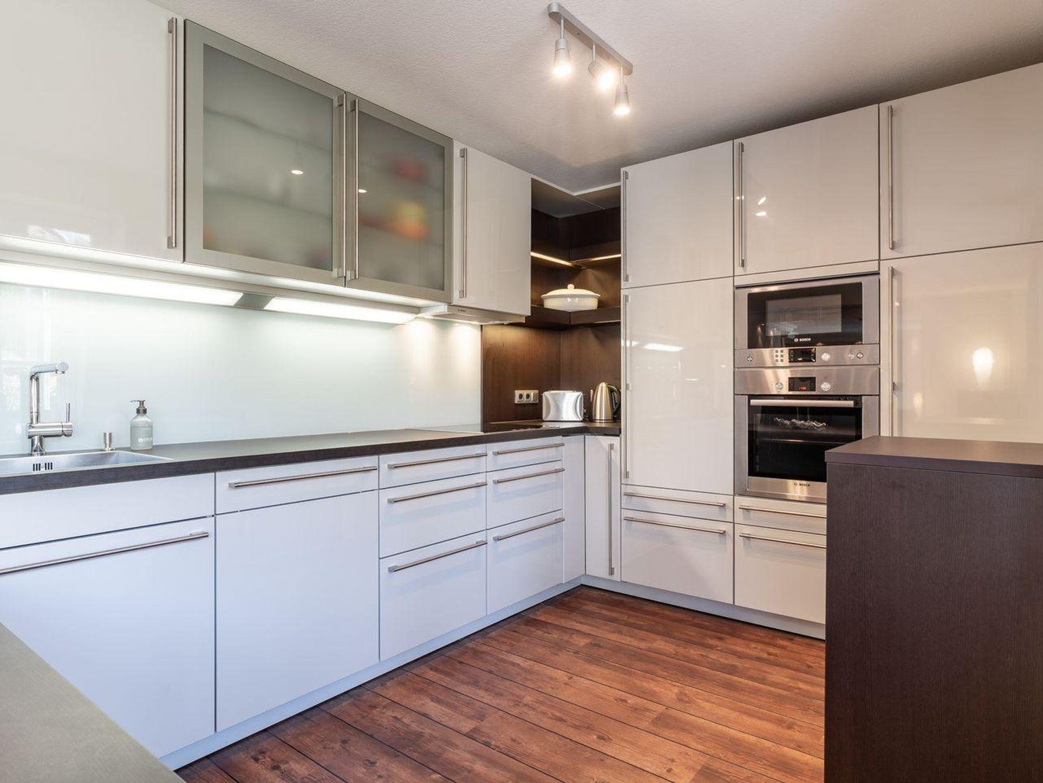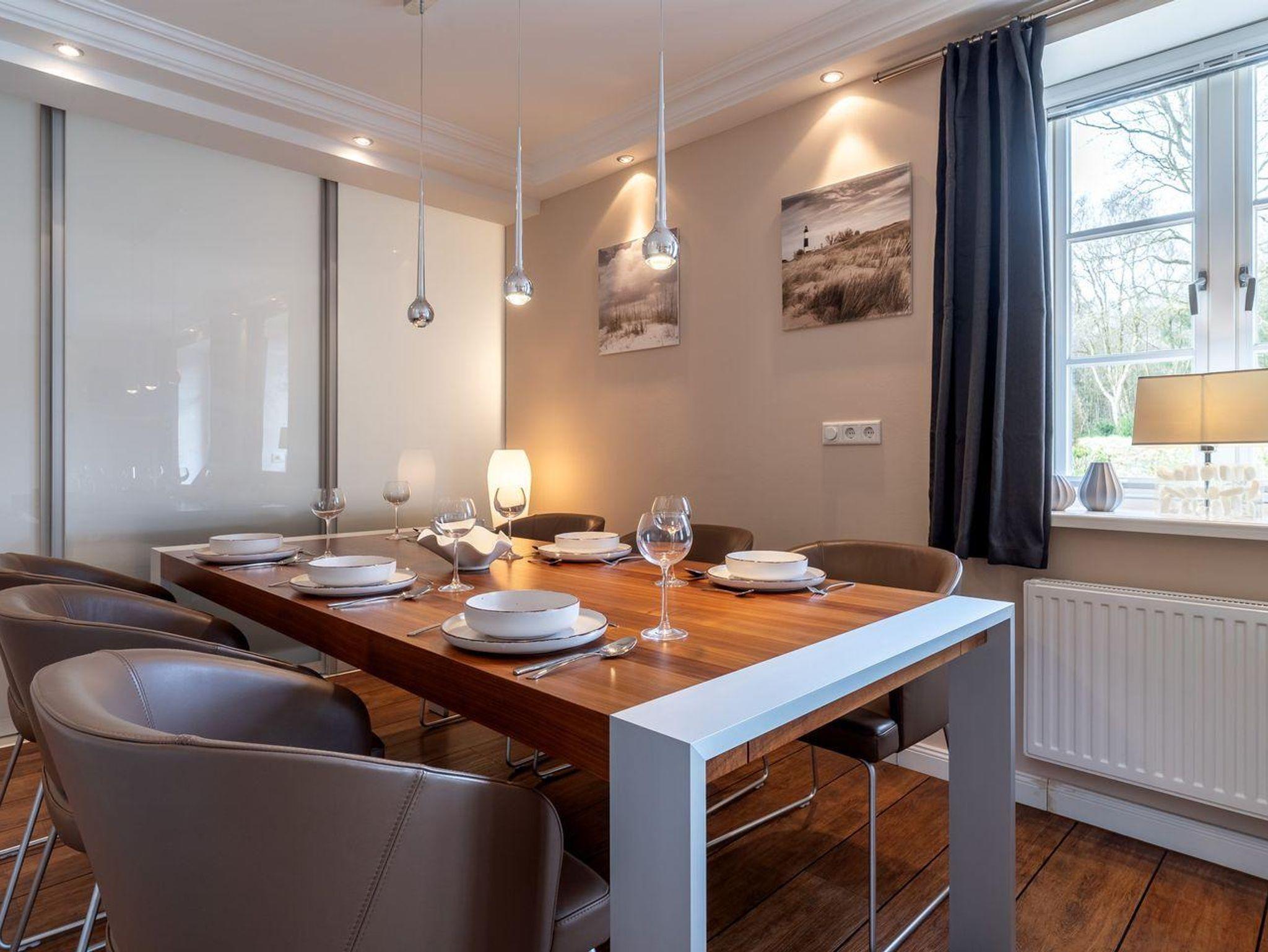 Das Herzstück der Ferienwohnung ist der offene Wohnbereich, der nahtlos in die voll ausgestattete Küche übergeht. Hier können Sie mit modernen Geräten wie einem Induktionsherd, einem Backofen und einer Spülmaschine Ihrer Kochleidenschaft nachgehen. Ein Kühlschrank mit Gefrierfach, eine Kaffeemaschine, einen Weinschrank und weitere Küchenutensilien lassen keine Wünsche offen. Egal, ob Sie ein einfaches Frühstück zubereiten oder ein festliches Dinner für Freunde und Familie kreieren möchten – alles ist möglich. Der angrenzende Essbereich bietet eine einladende Atmosphäre für gesellige Abende.