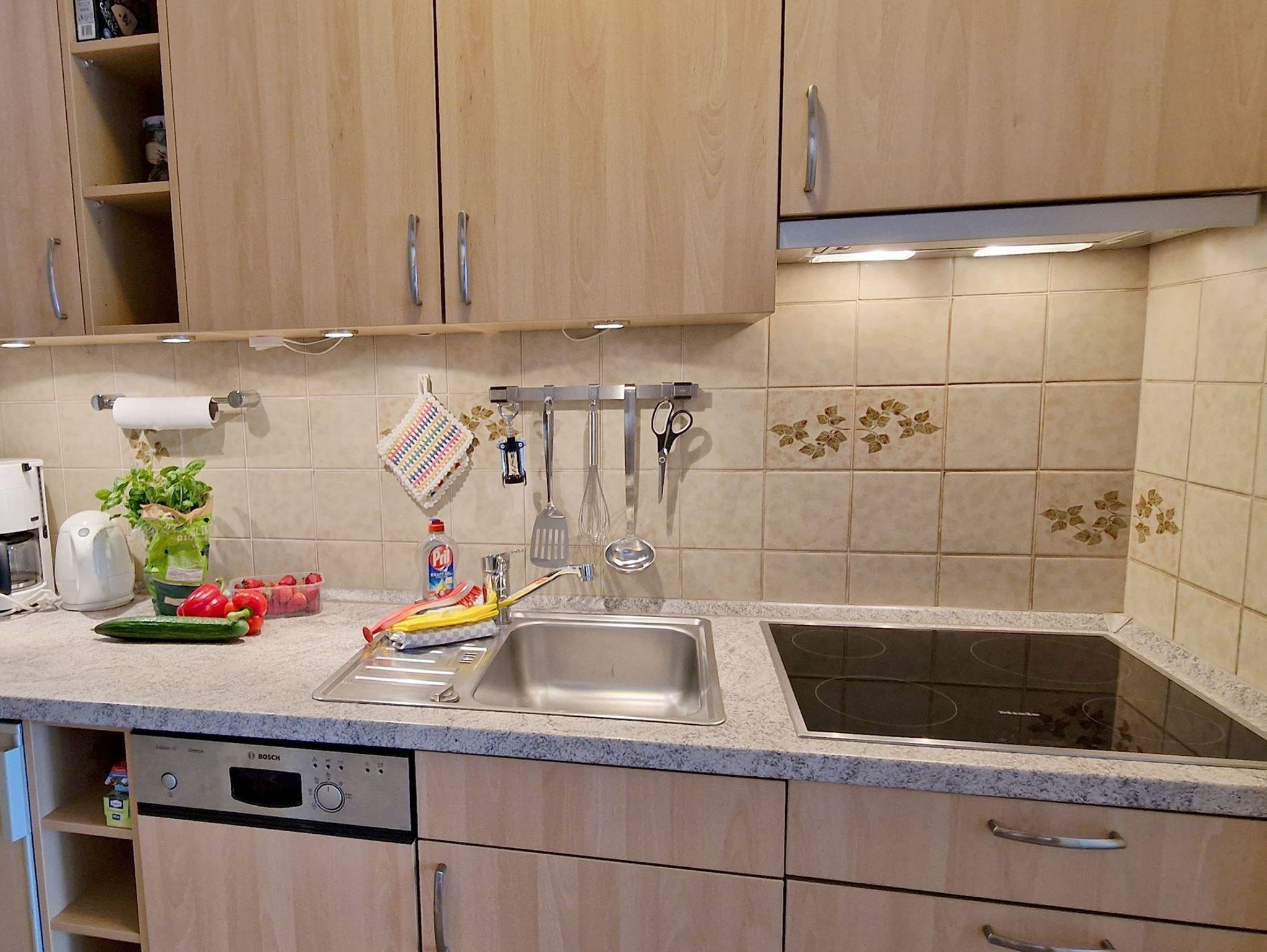 Gut ausgestattete Küchenzeile: Bereiten Sie Ihre Mahlzeiten bequem in der Küchenzeile mit Cerankochfeld und Spülmaschine zu, sodass Sie sich ganz nach Ihrem Geschmack selbst versorgen können.