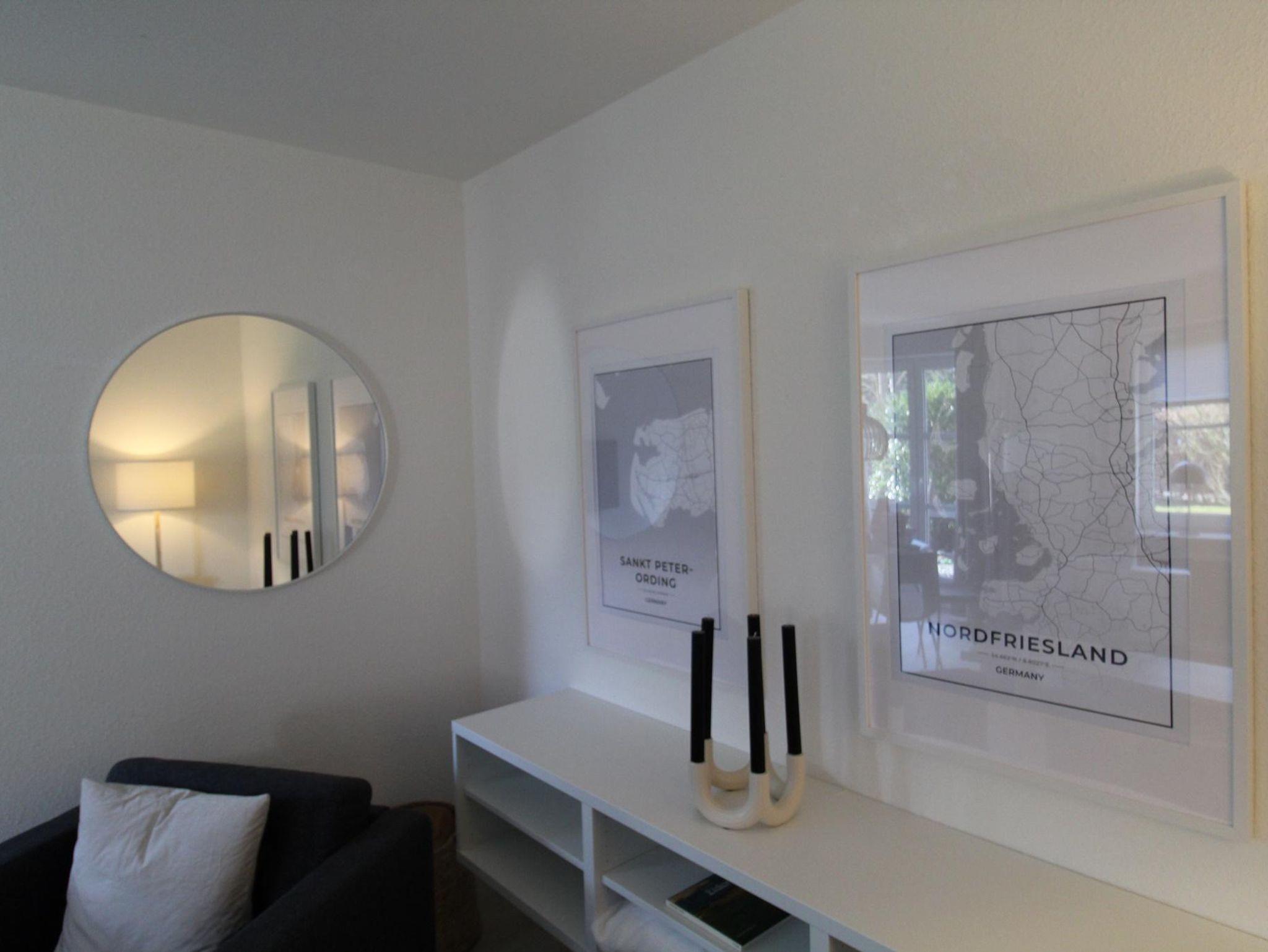 In unmittelbarer Nähe befinden sich ein einfacher Kinderspielplatz und ein kleines Wäldchen. Der Dorfkern mit Einkaufsmöglichkeiten und Restaurants ist nur wenige Gehminuten entfernt. Den Deich erreichen Sie zu Fuß in ca. 10 Minuten, und den Südstrand in einer halben Stunde. Auch der Westküstenpark ist fußläufig gut erreichbar.