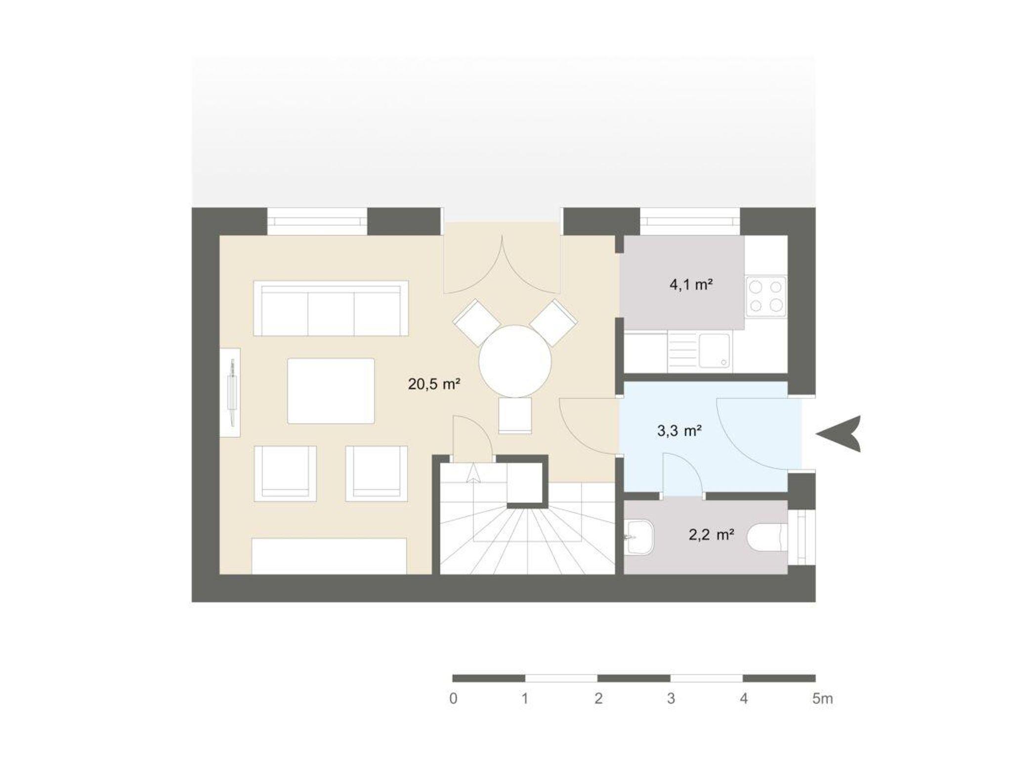 Im Erdgeschoss kommen Sie vom Eingangsflur aus in den großzügigen Wohnbereich mit einem Esstisch sowie Couch und Sesseln zum Entspannen. Von hier aus geht es direkt auf die nach Süden ausgerichtete Terrasse mit großem Garten. Die Küche ist modern und mit hochwertigen Geräten und Geschirr eingerichtet. Im Eingangsbereich ist auch das Gäste-WC zu finden.