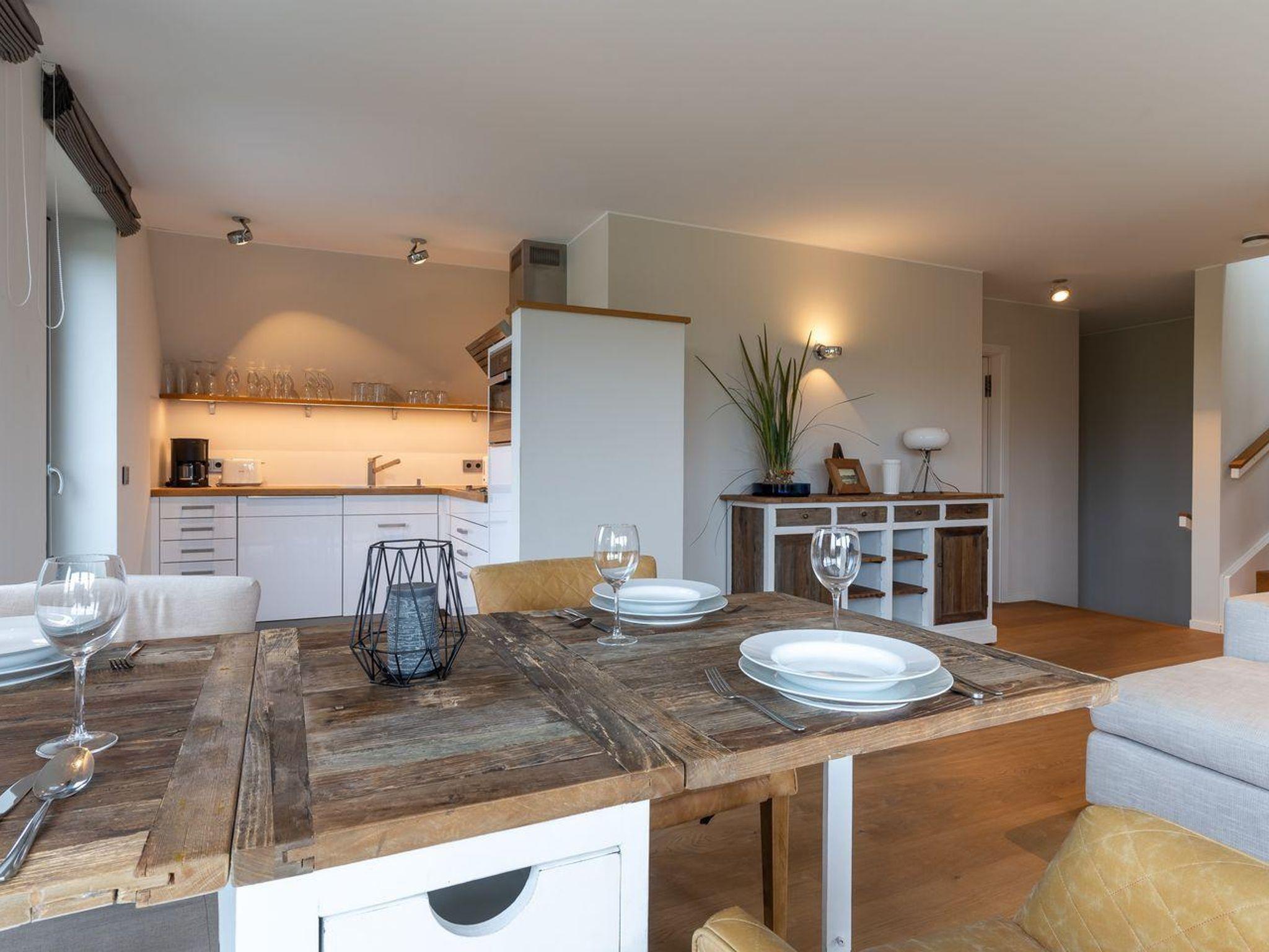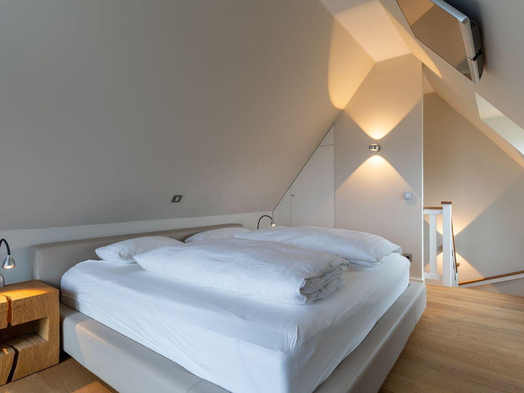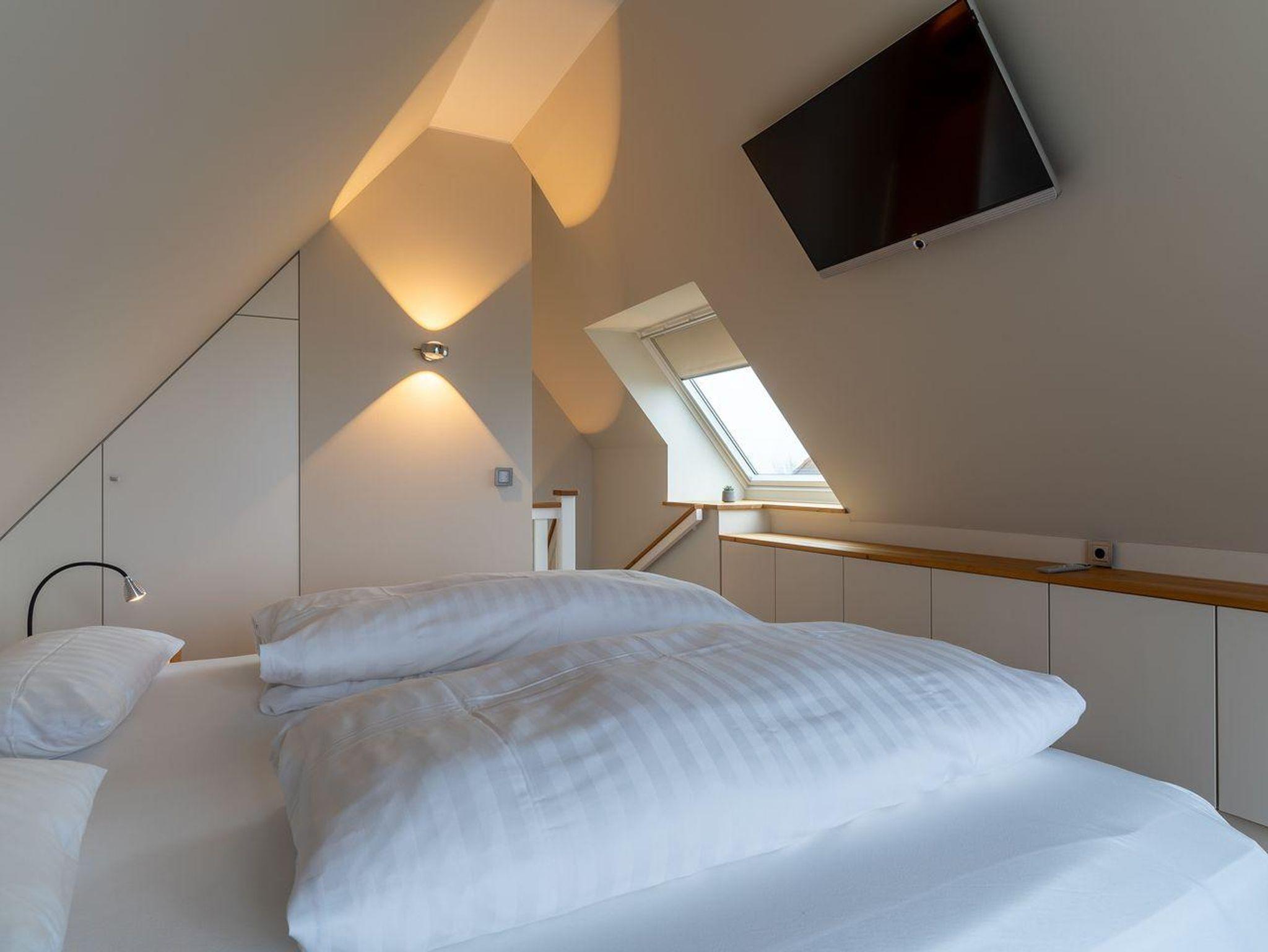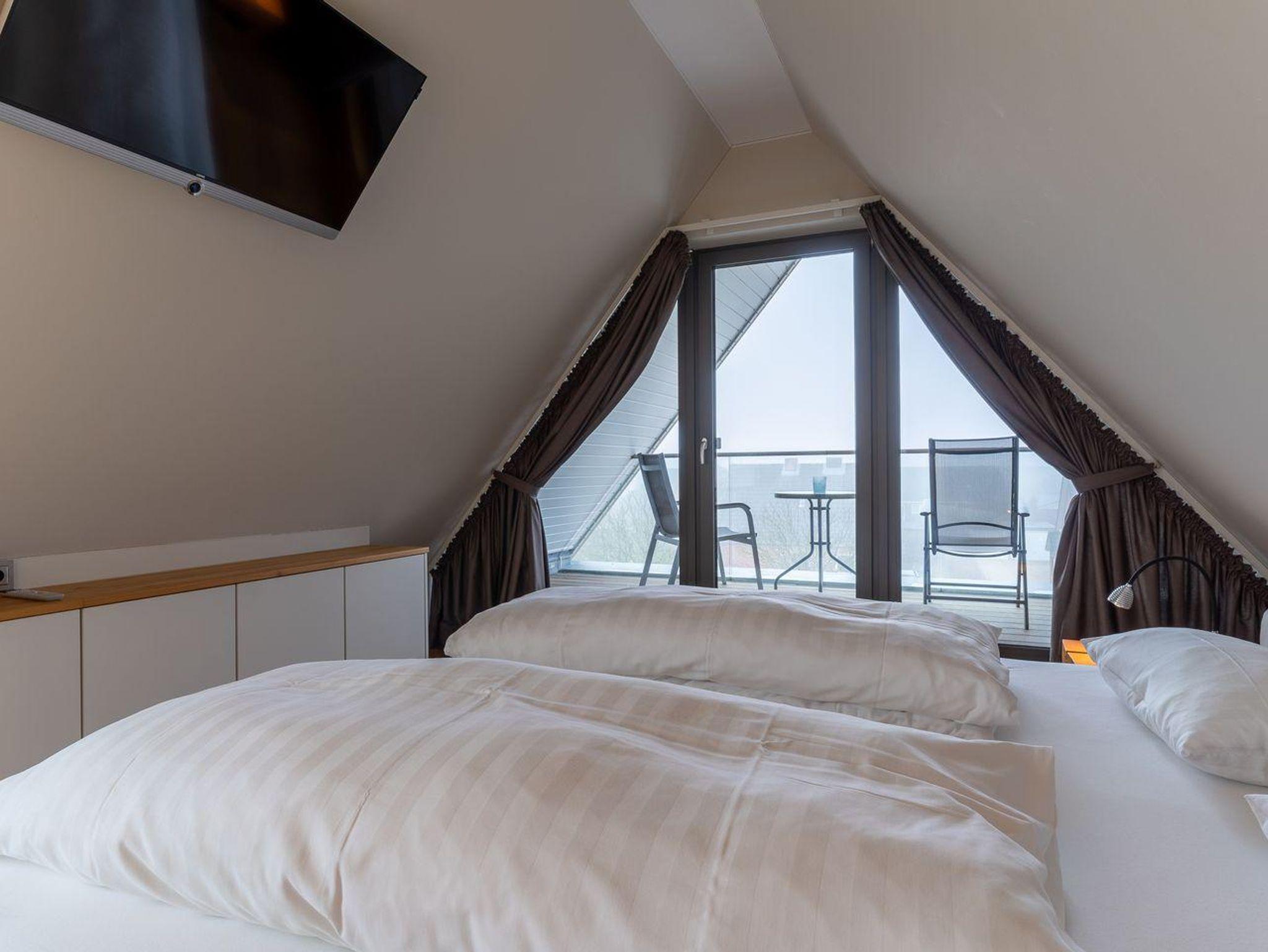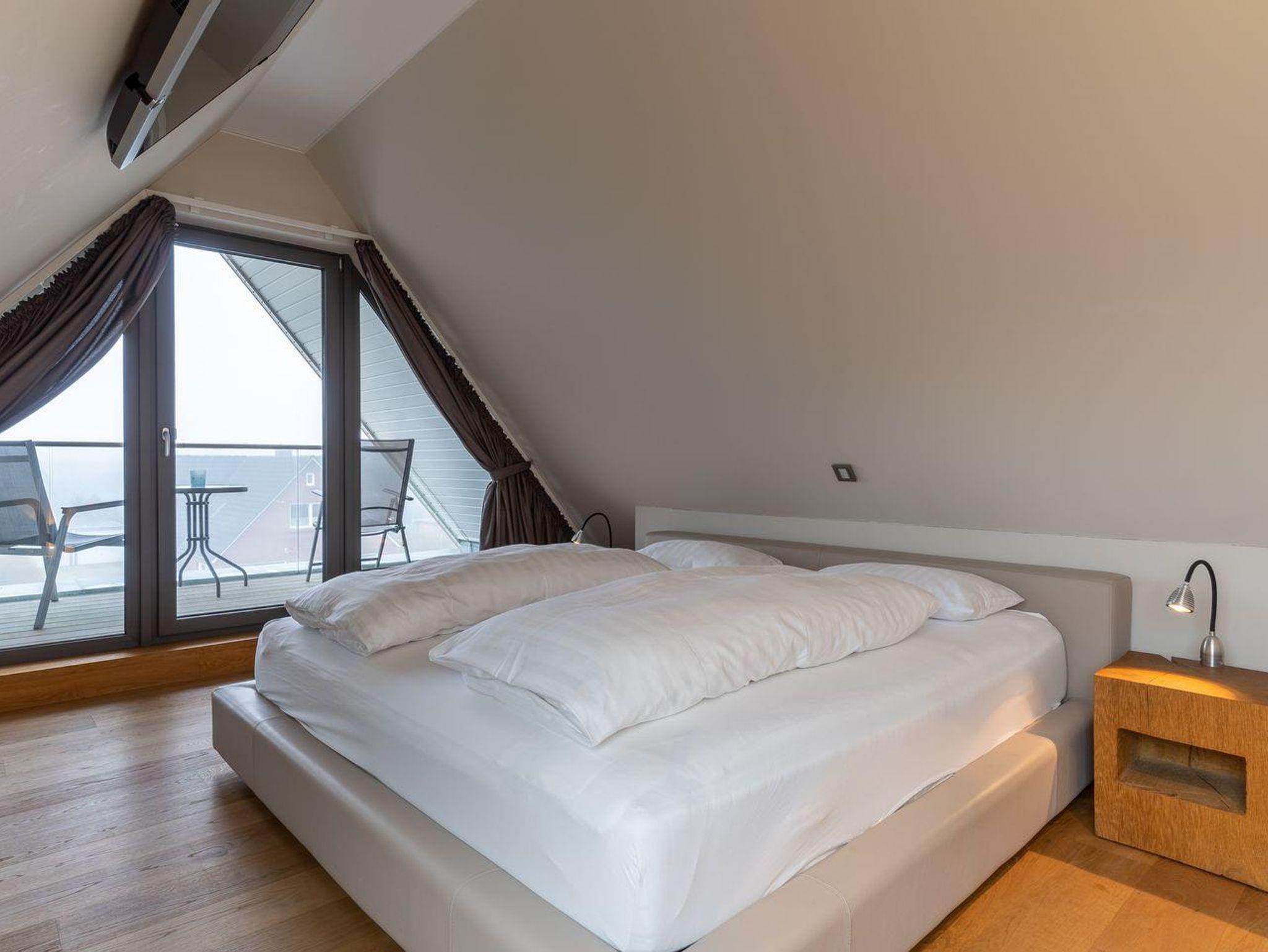 Eine großzügige Süd-Balkon lädt zum Sonnen ein. Die Hochglanzküche, mit hochwertigen Geräten, grenzt direkt am Wohnzimmer an. Das Duschbad bietet genügend Platz für Ihre Utensilien. Das Schlafzimmer mit 180er Doppelbett sorgt für ruhevolle Erholung. Ein weiteres Schlafzimmer befindet sich im Dachgeschoss, mit großartigem Weitblick bis zu Strand und großer Fensterfront. Beide Schlafzimmer bietet Ihnen zusätzlich einen TV.
