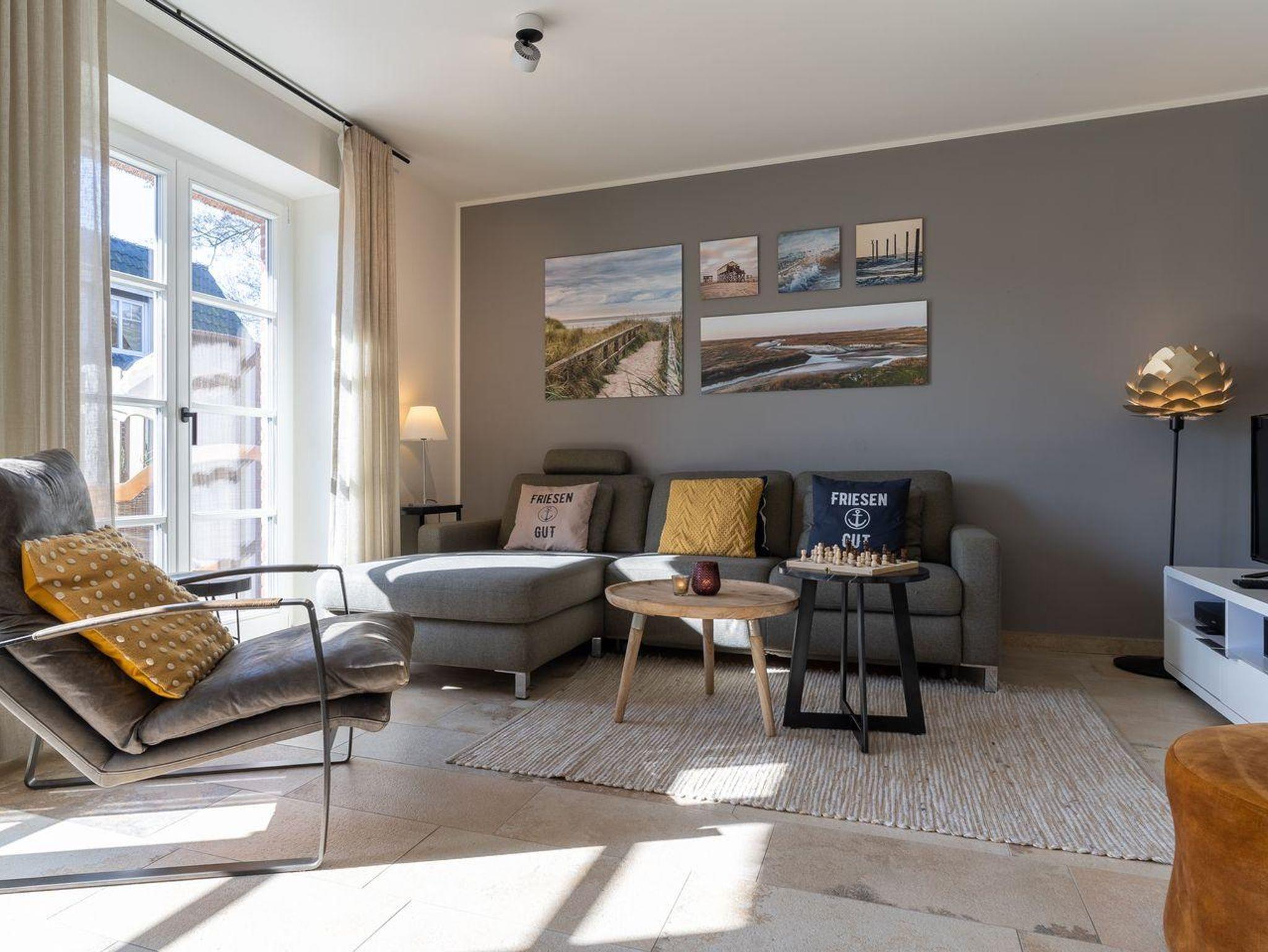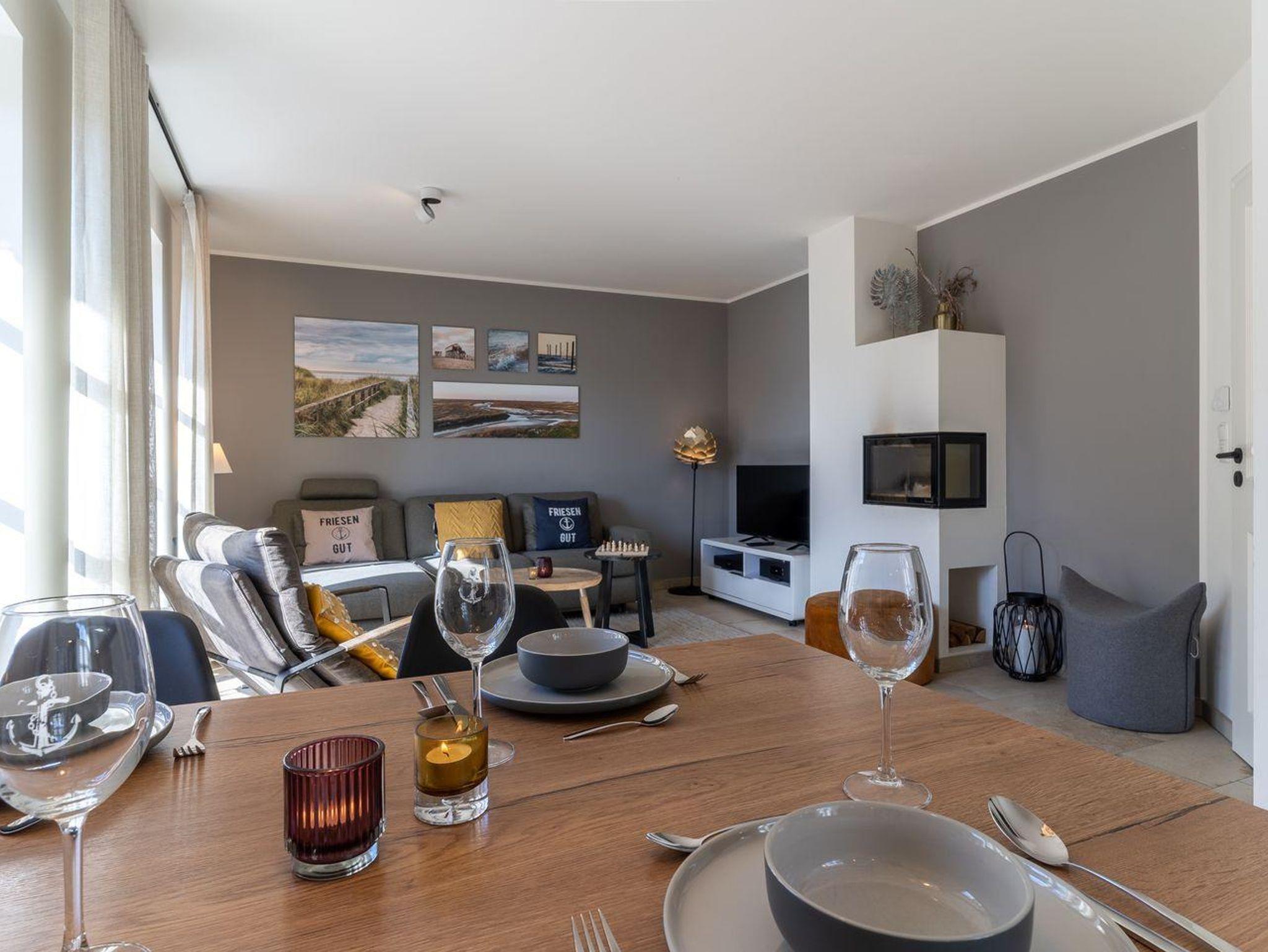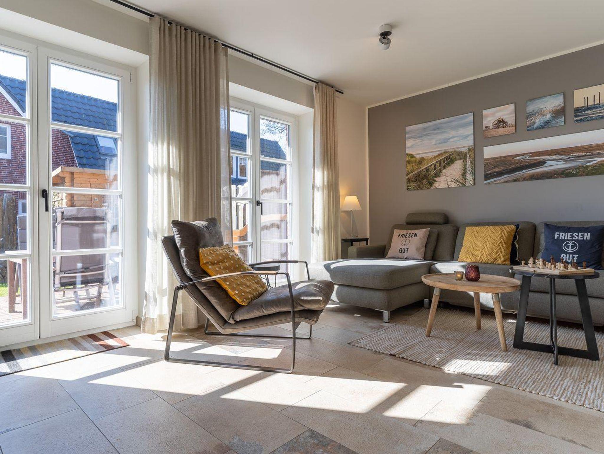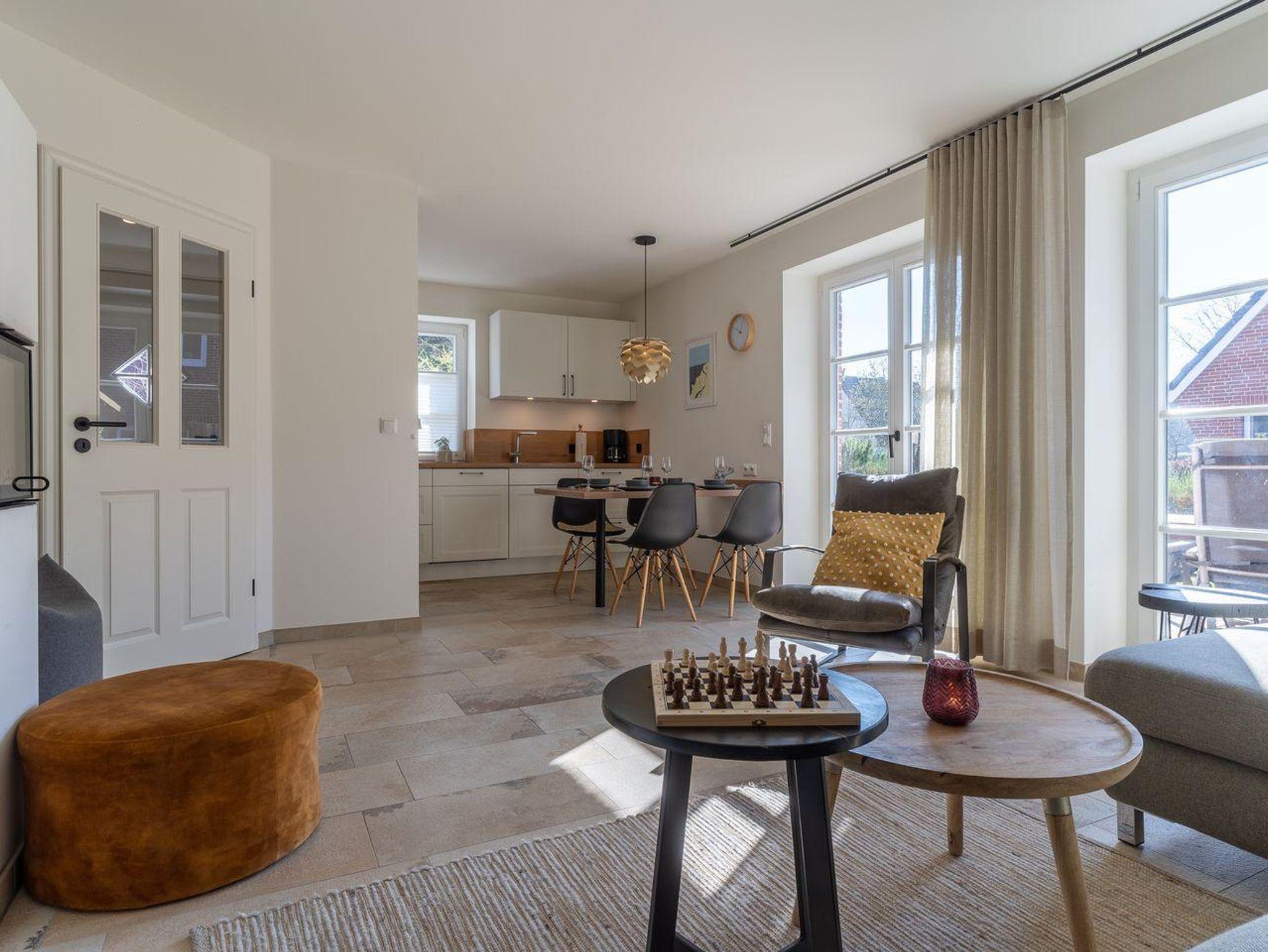 Die Reetdachhaushälfte auf 85 qm begeistert mit friesischem Charakter und behaglichem Interieur. Maßgefertigte Einbaumöbel bieten einen individuellen Komfort für geräumiges und lässiges Wohnen für bis zu fünf Gästen.