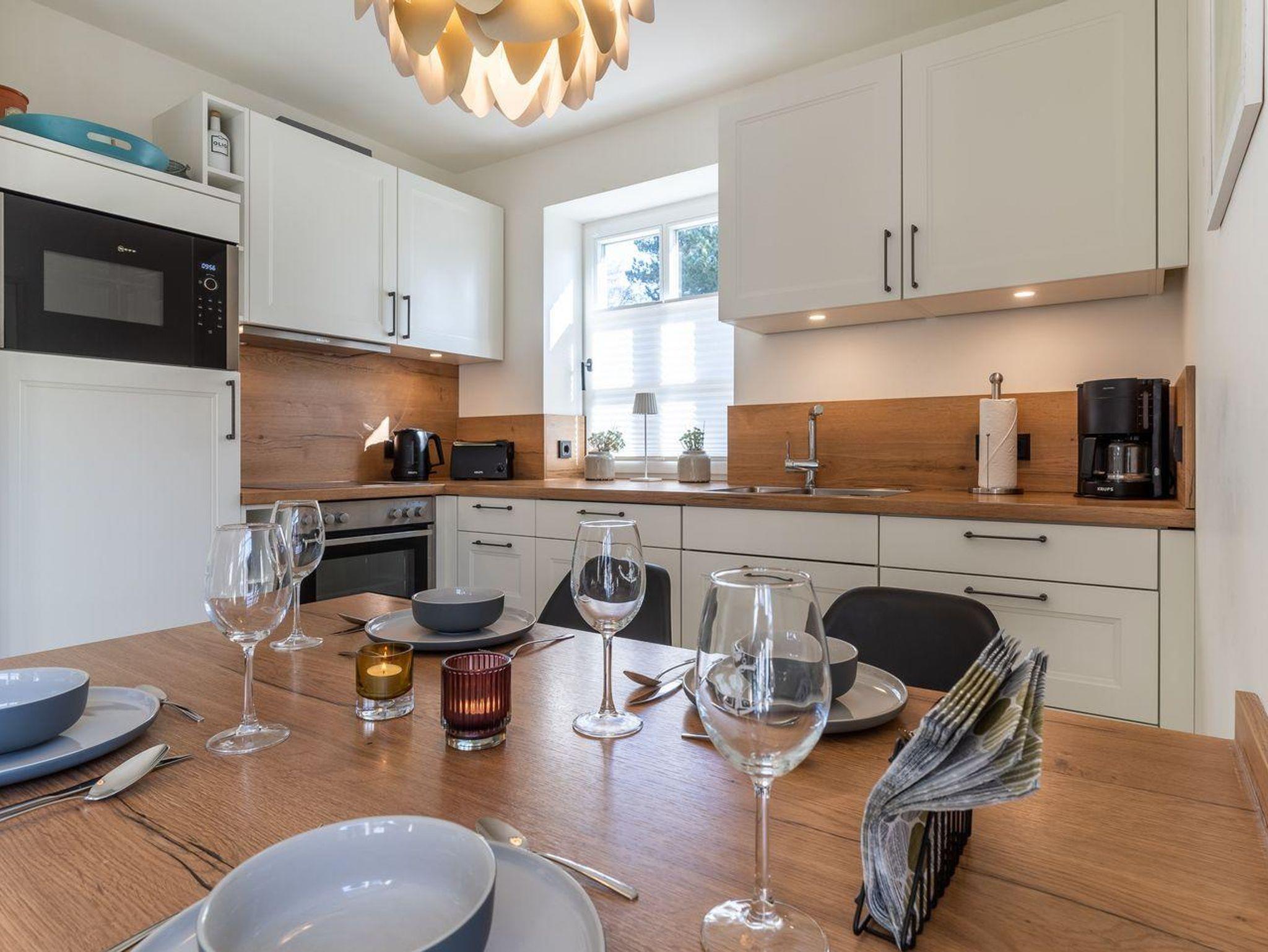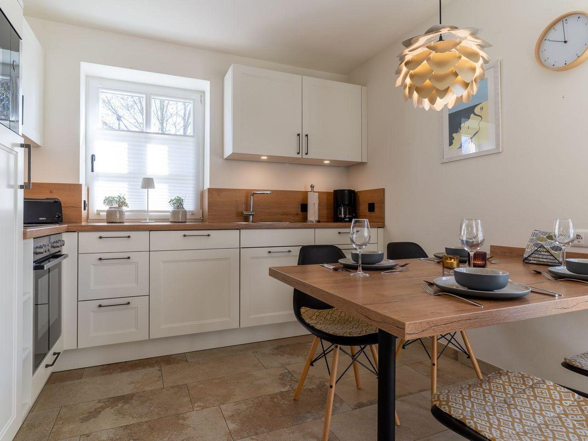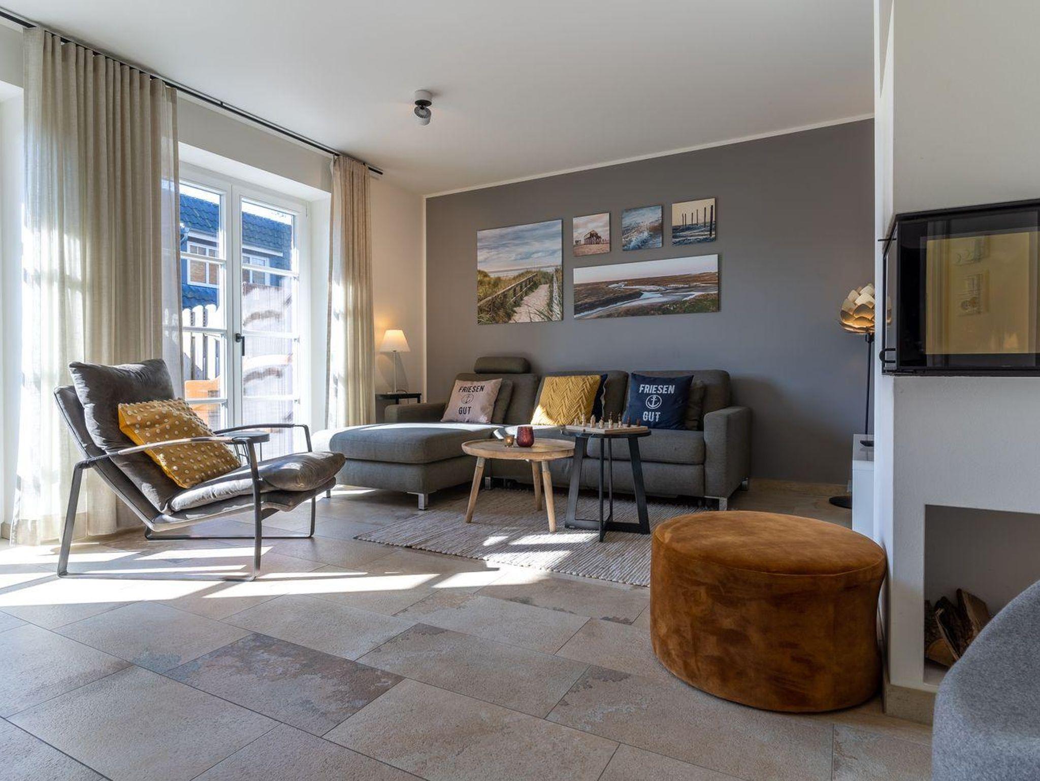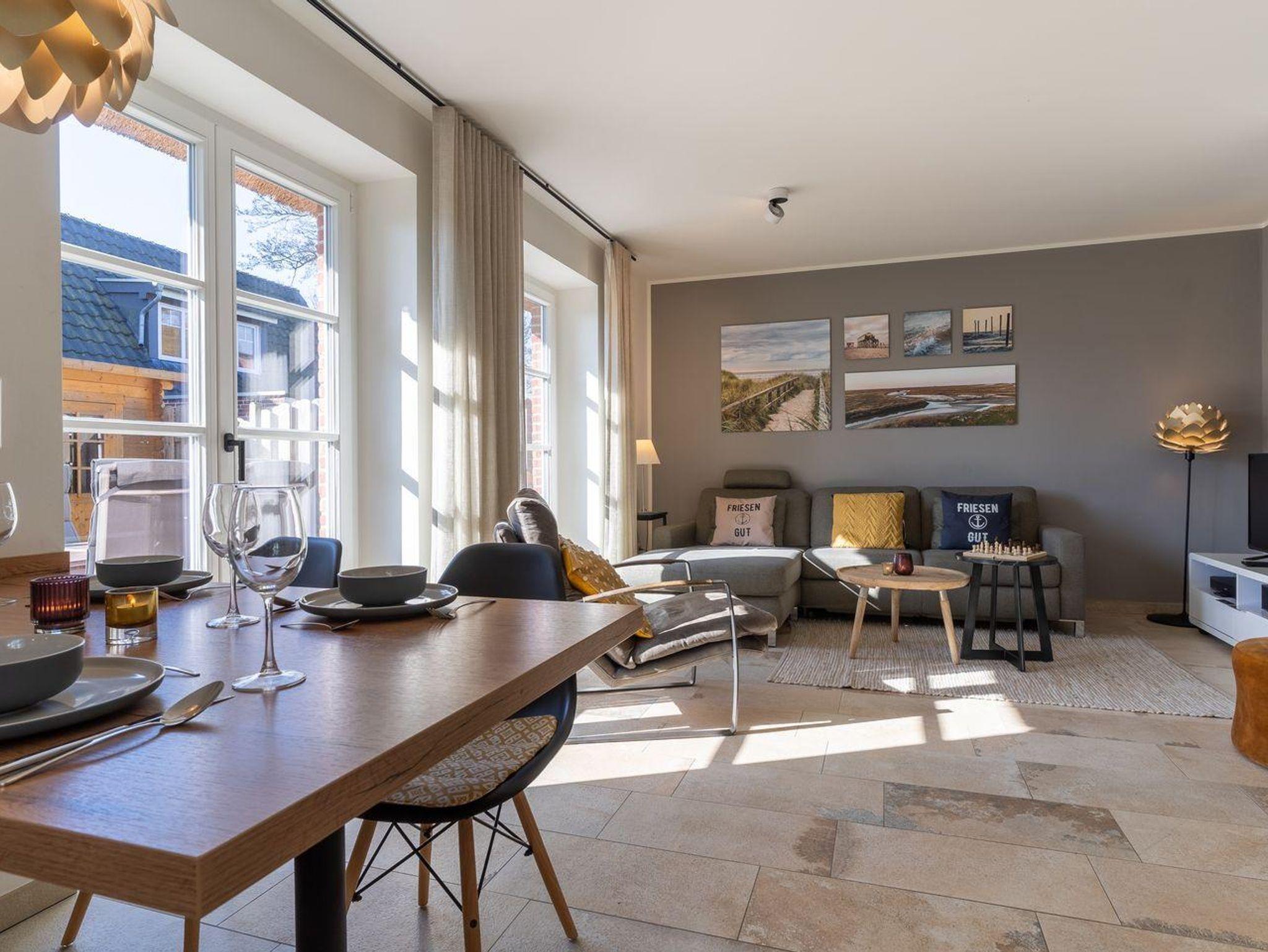 Die Reetdachhaushälfte auf 85 qm begeistert mit friesischem Charakter und behaglichem Interieur. Maßgefertigte Einbaumöbel bieten einen individuellen Komfort für geräumiges und lässiges Wohnen für bis zu fünf Gästen.