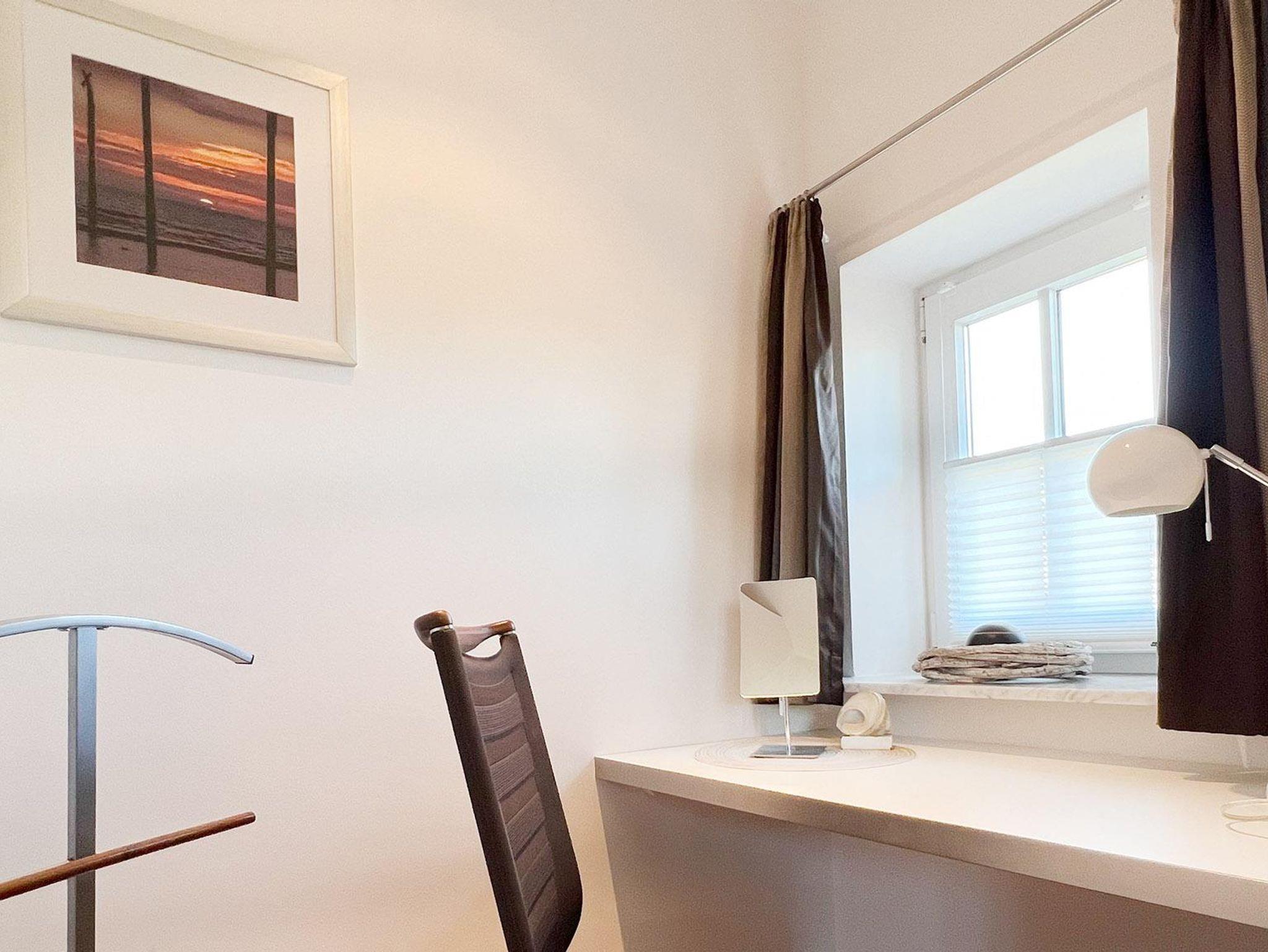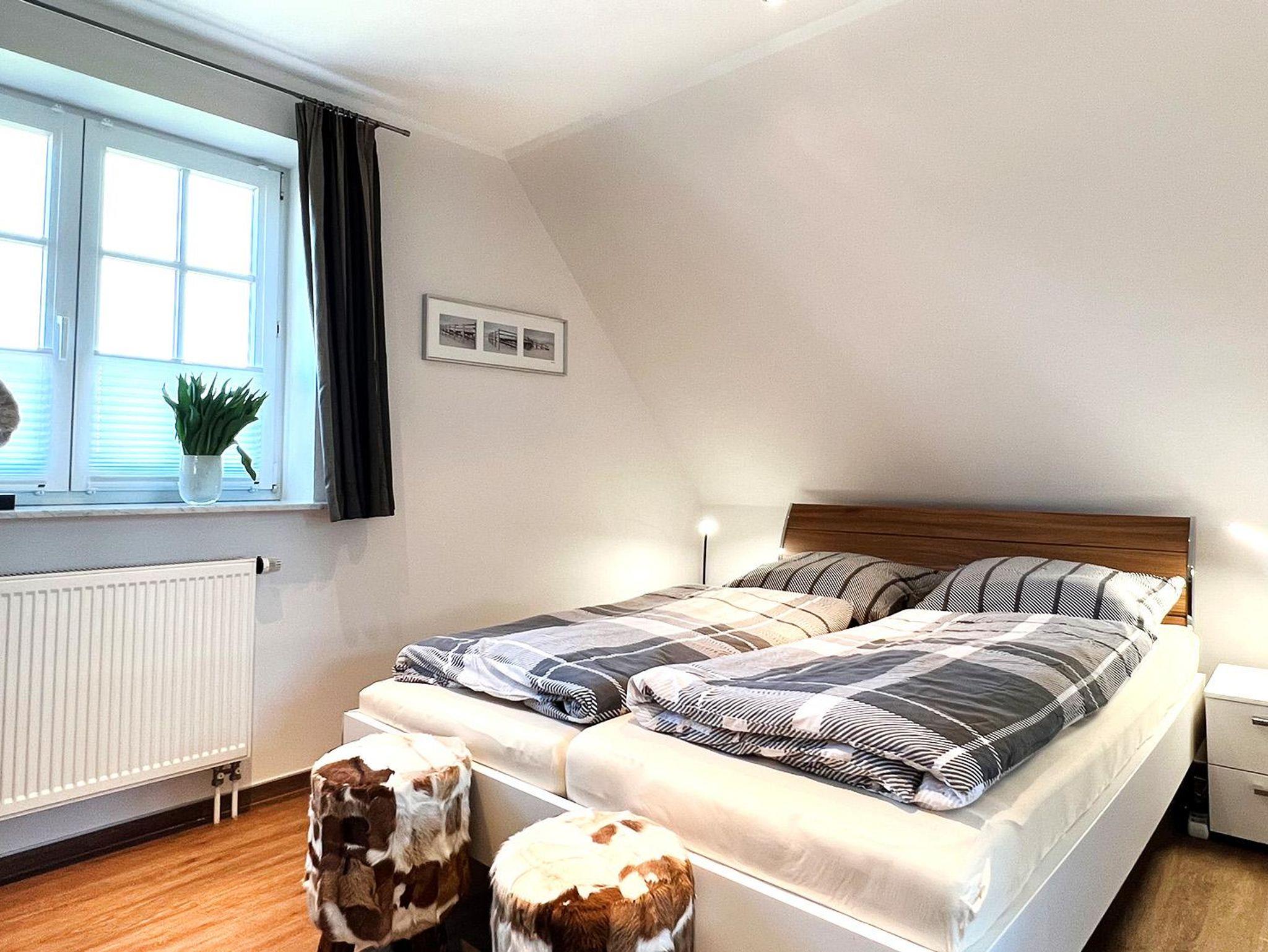 Schlafzimmer 32. OG: Doppelbett 2,00 x 1,80 m, Kleiderschrank, Sessel, Beistelltisch, 2 Nachttische