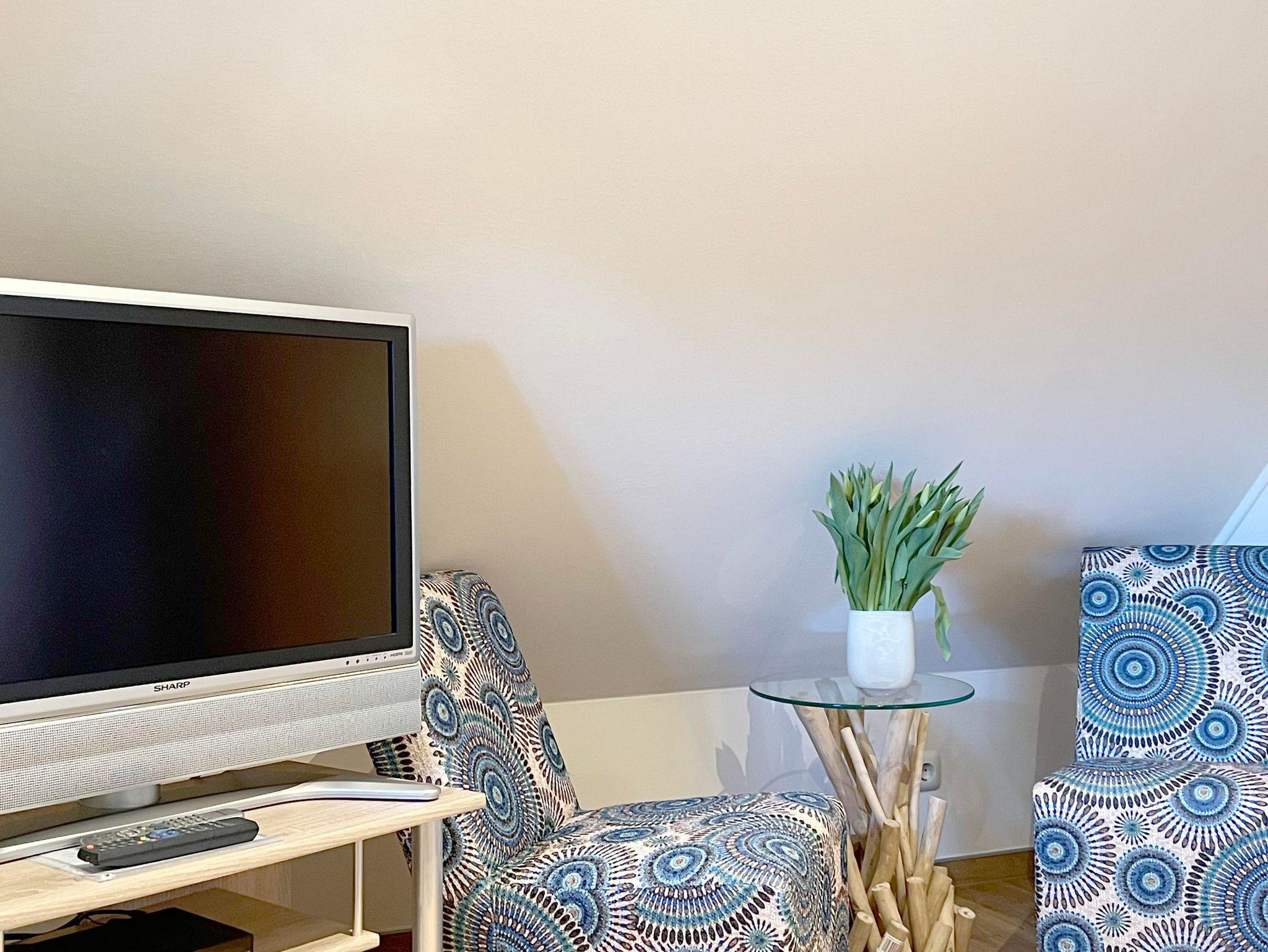 Für Entertainment im Haus ist gesorgt: TV mit Kabelanschluss, DVD Player, Sky Sport HD (Bundesliga, Championsleague, Formel 1, Handballchampionsleague) & Sky Welt, WLAN sowie BOSE-Anlage mit IPod Hub. Für Ihr Wellnessprogramm: Im Untergeschoss finden Sie eine Infrarotsauna und Trainingsrad zur freien Benutzung bereit. Sie finden hier ebenso Waschmaschine und Trockner. Es gibt ein komplett eingezäuntes und liebevoll angelegtes ca. 500 qm großes Grundstück mit einer im Sommer nicht einsehbaren Oase samt Gartenpavillon für gemütliche Stunden. Eine schöne Südterrasse mit Gartenmöbeln aus Holz für 6 Personen wird von einem dazu gehörenden Strandkorb vervollständigt. Auch ein Grill steht für unsere Gäste bereit. Eine Garage mit Abstellraum für Fahrräder, sowie ein zweiter Stellplatz ist vorhanden.