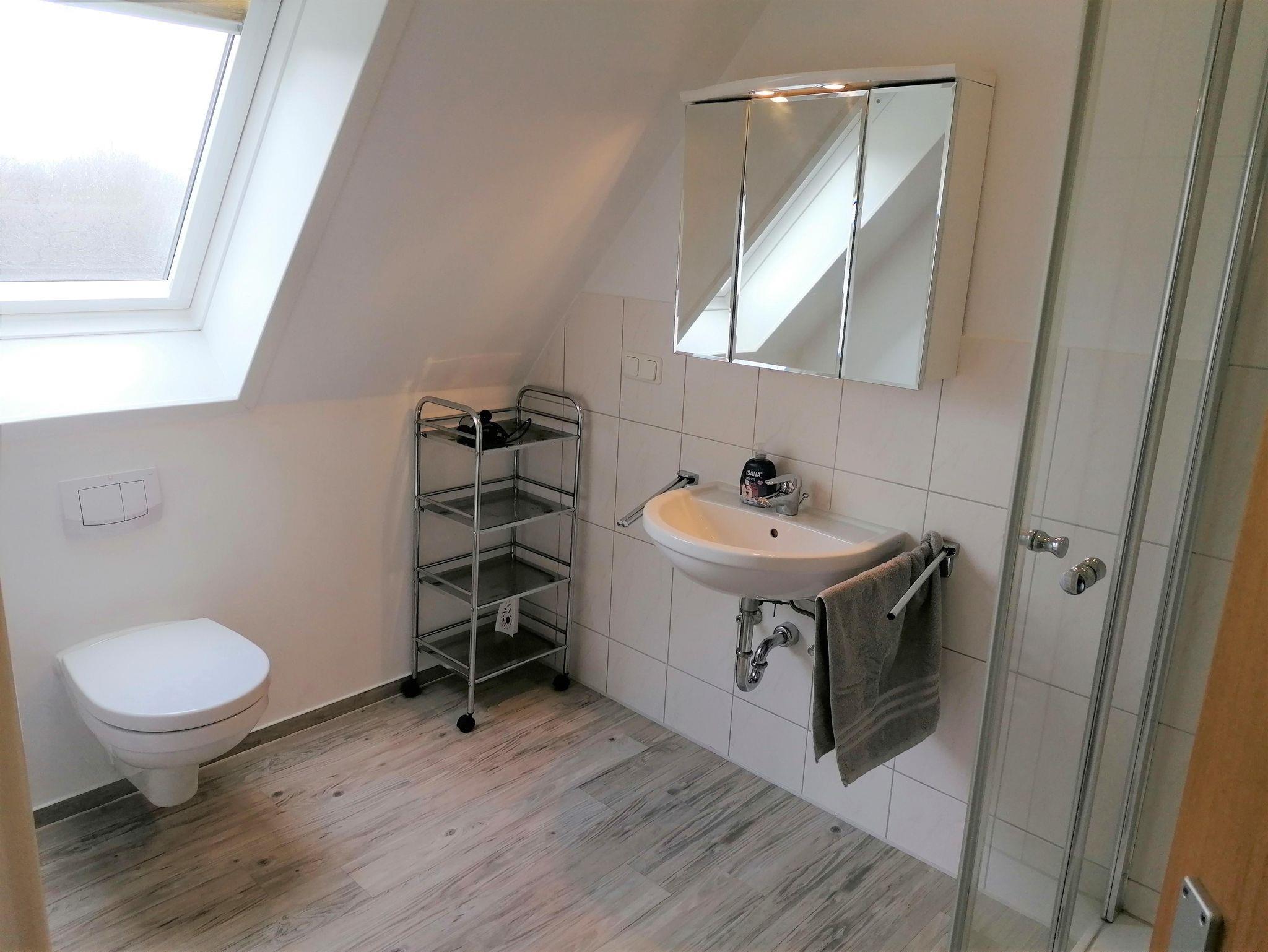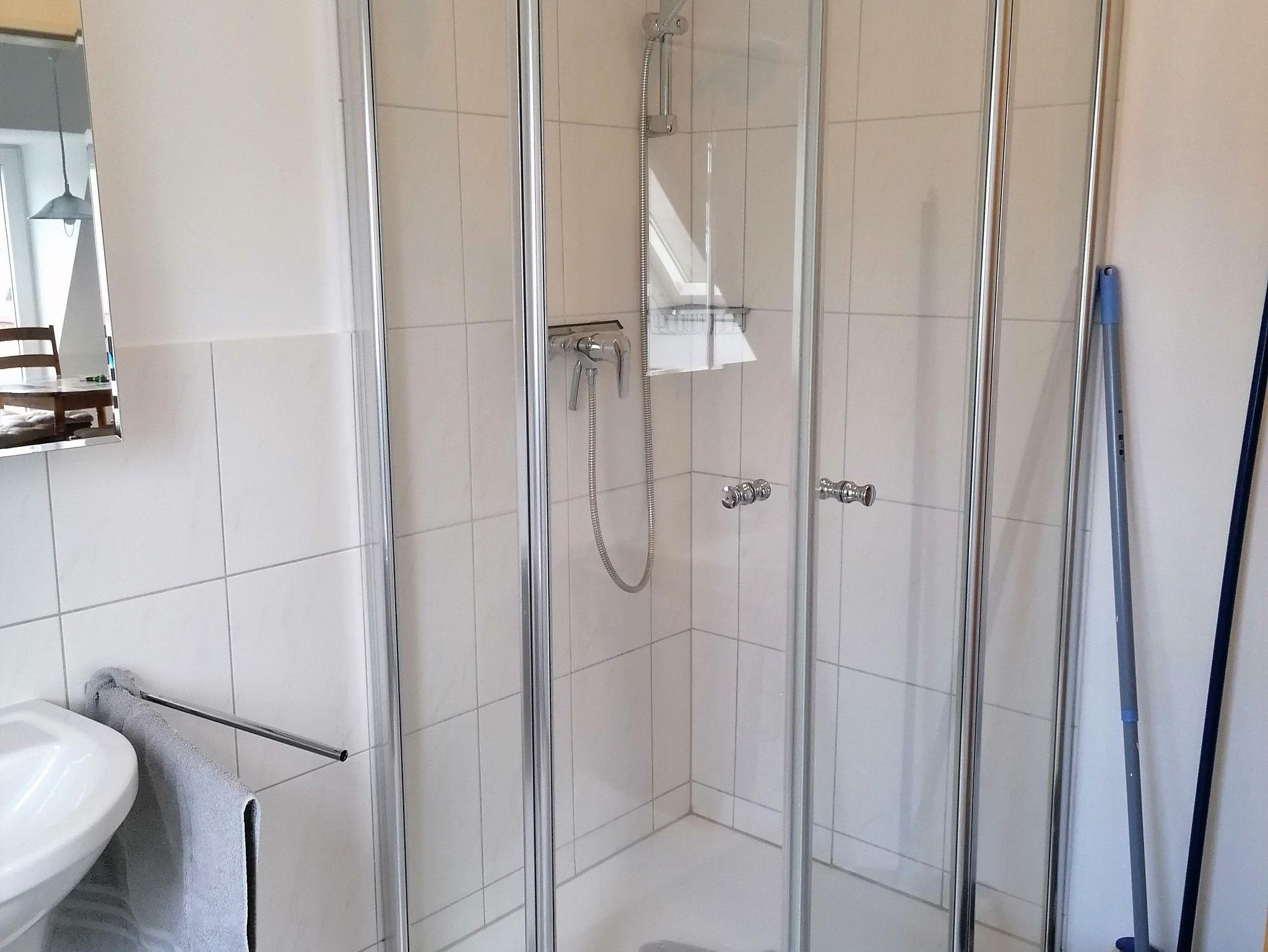 Ein helles Duschbad mit Tageslicht ist vorhanden.