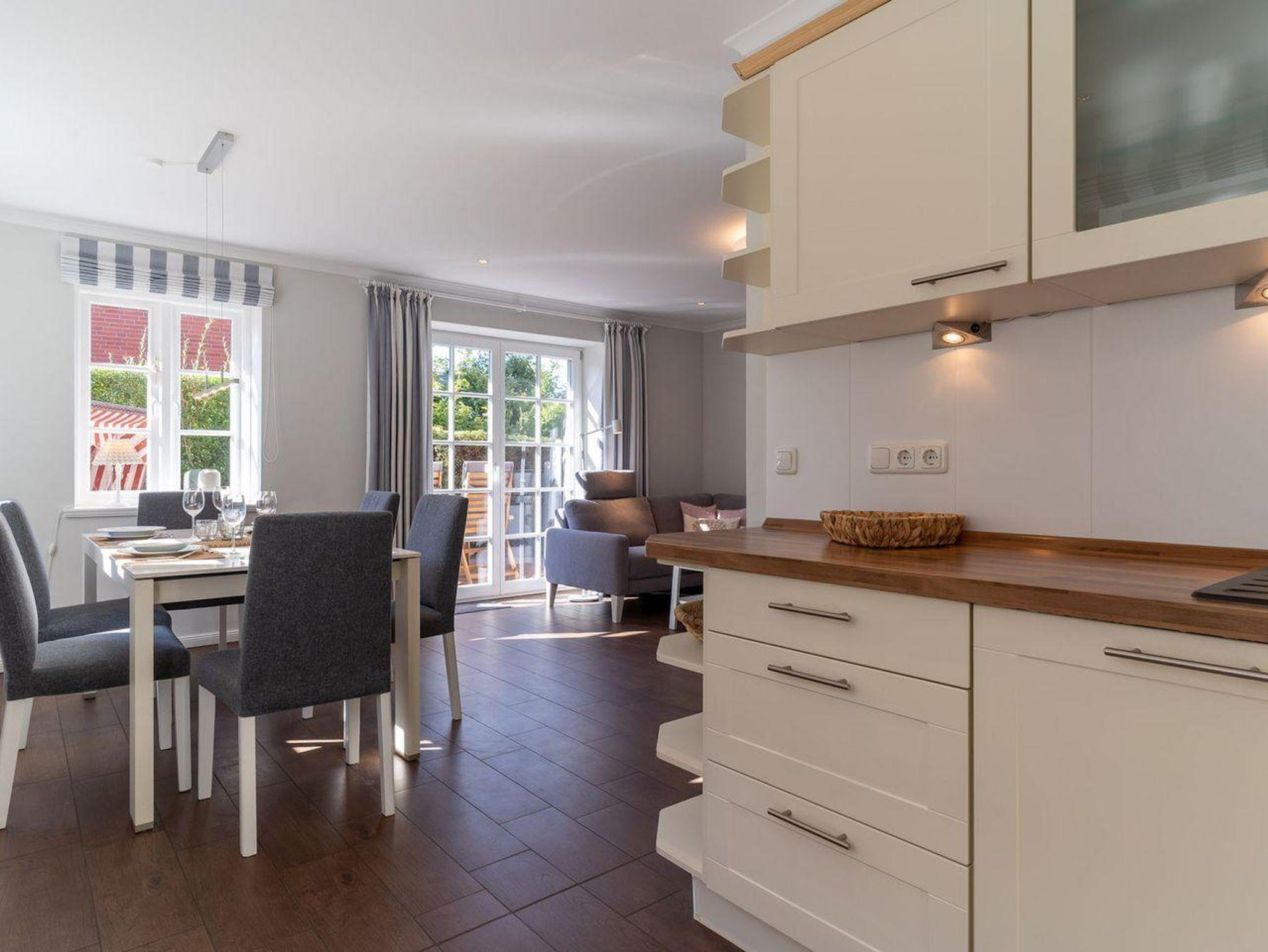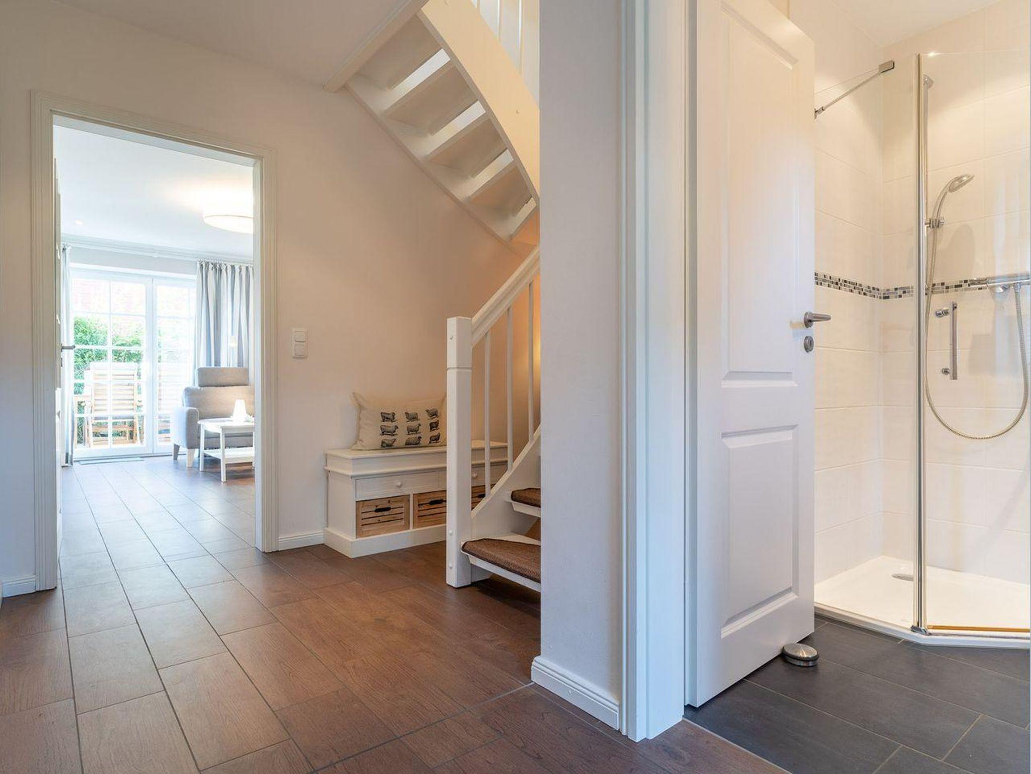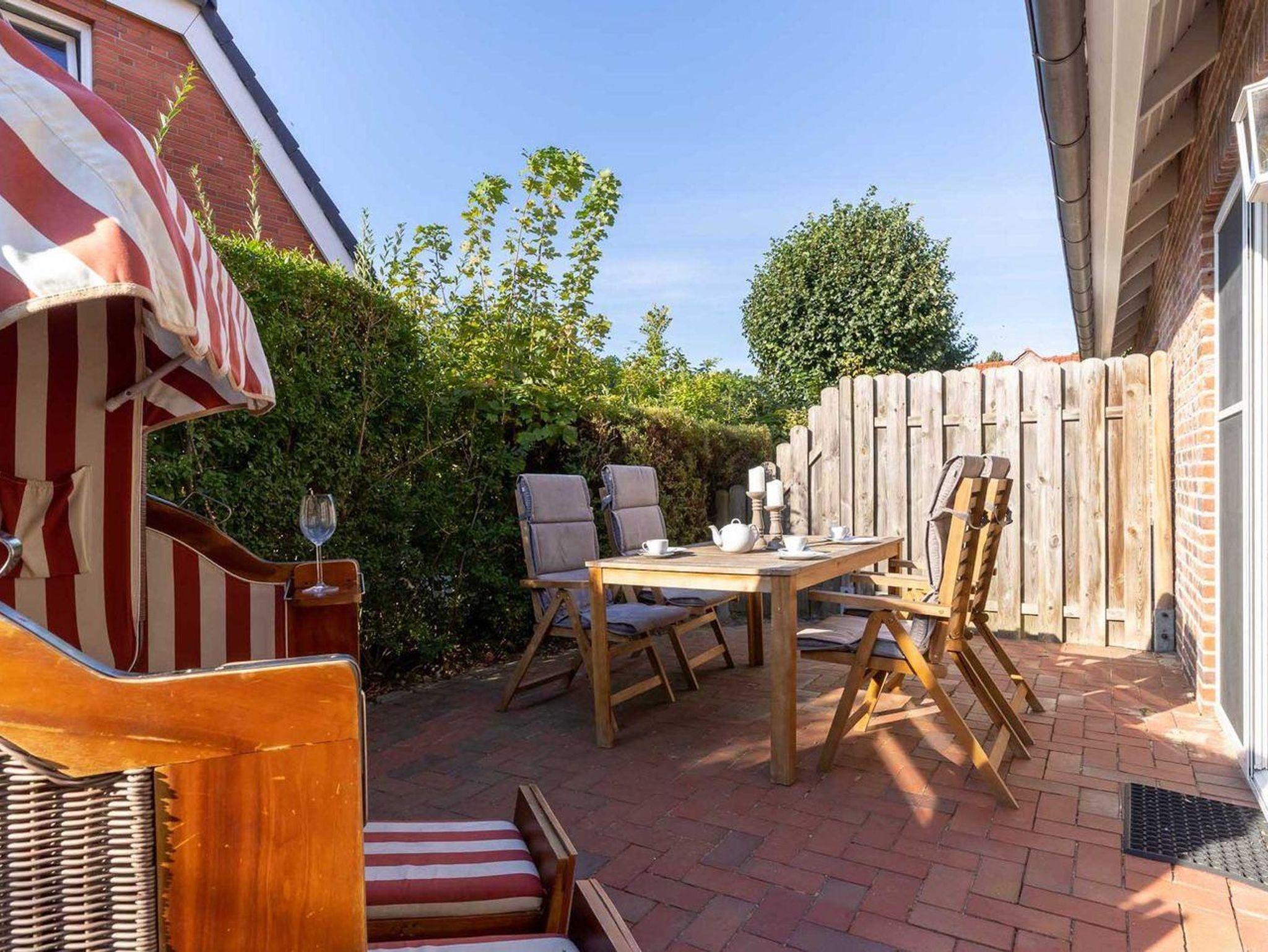 Das Grundstück mit Stellplatz, Gartenhaus für Ihre Fahrräder und einer sonnigen Terrasse ist mit heimischen Pflanzen und einer Düne angelegt. Hervorzuheben ist zudem die zentrale Lage des Objekts, innerhalb einer Minute befinden Sie sich im Zentrum des Ortsteils Dorf umgeben von verschiedenen Einkaufsmöglichkeiten und Restaurants. Auch der Deich ist in etwa 5 Gehminuten erreicht, trotzdem finden Sie Ruhe und Entspannung in Ihrem Garten.