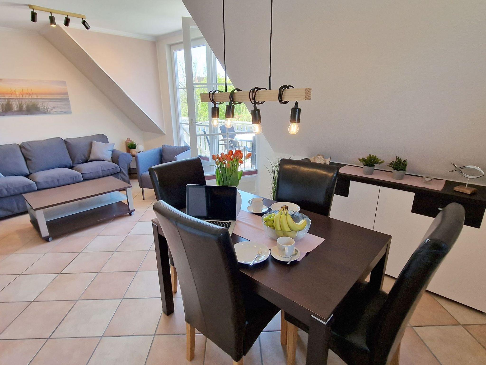 Gemütliche Maisonette-Ferienwohnung in St. Peter-Ording mit Balkon und WLAN, ideal für erholsame Sonnenuntergänge.