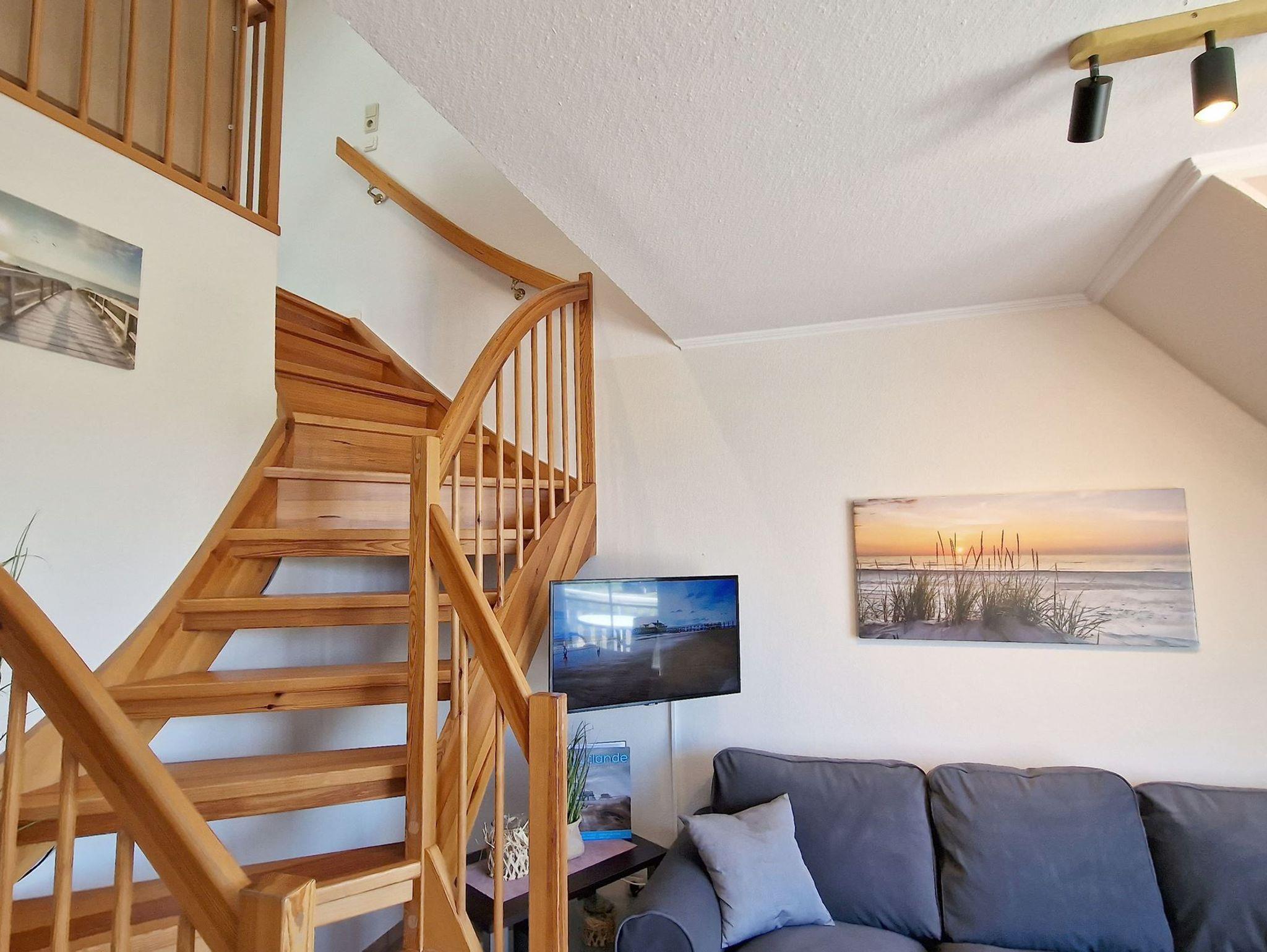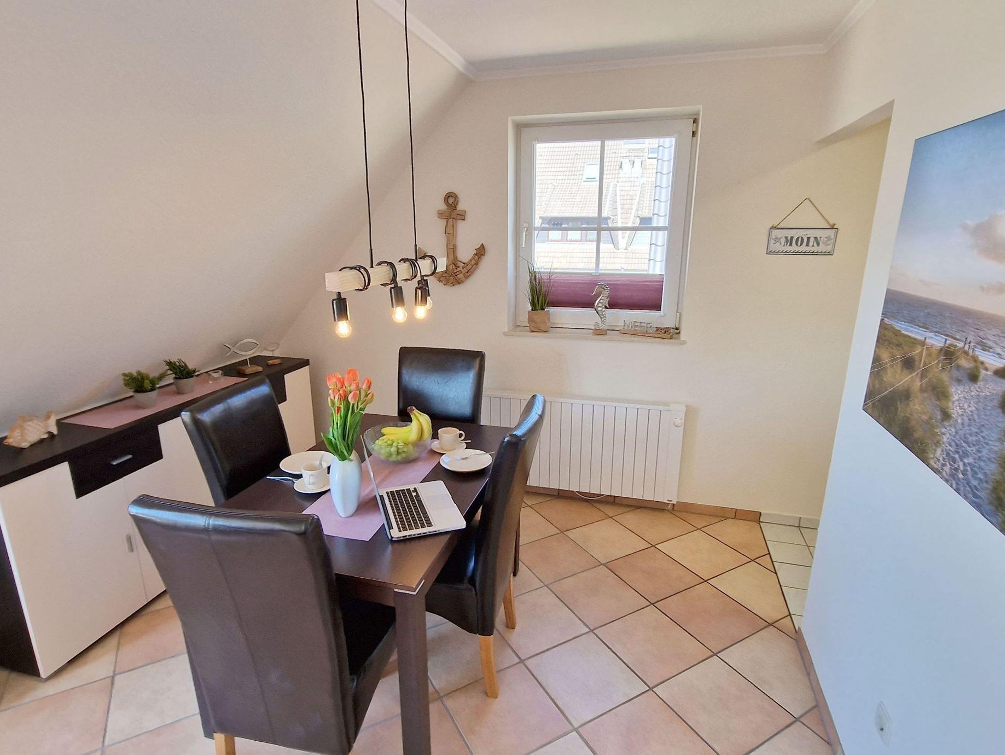 Diese schöne, im ersten Stock gelegene Maisonette-Ferienwohnung bietet genügend Platz für bis zu 4 Personen und liegt in einer ruhigen Anliegerstrasse. Auf dem Balkon in Westlage geniessen Sie die wundervollen Sonnenuntergänge. Die Küchenzeile ist im Wohn-Eßbereich integriert und Sie haben einem direktem Zugang zum sonnigen Balkon. Die beiden Schlafzimmer sind jeweils mit Doppelbetten ausgestattet. Ein Stellplatz für Ihren PKW befindet sich auf dem Grundstück. Nichtraucherdomizil.